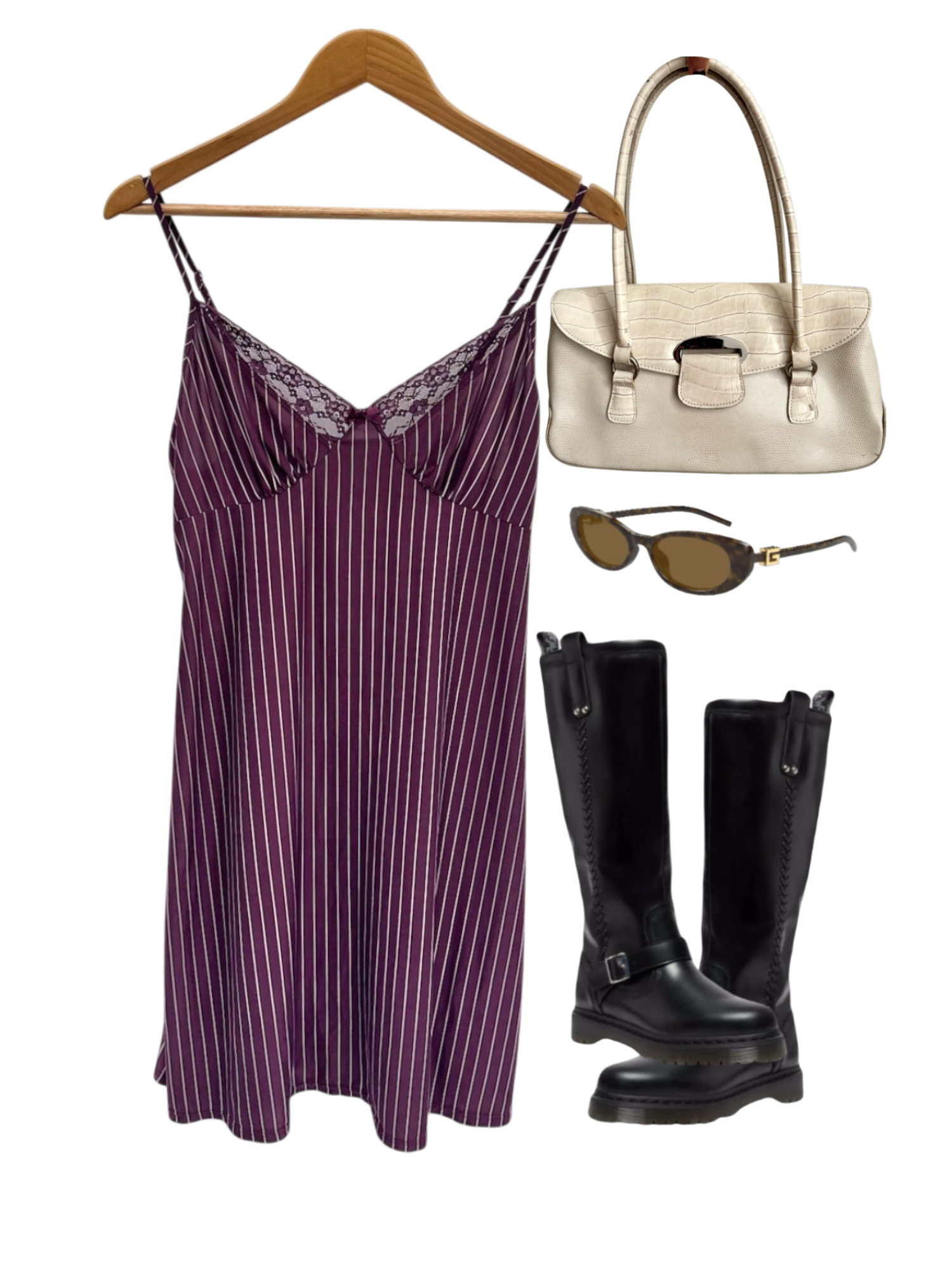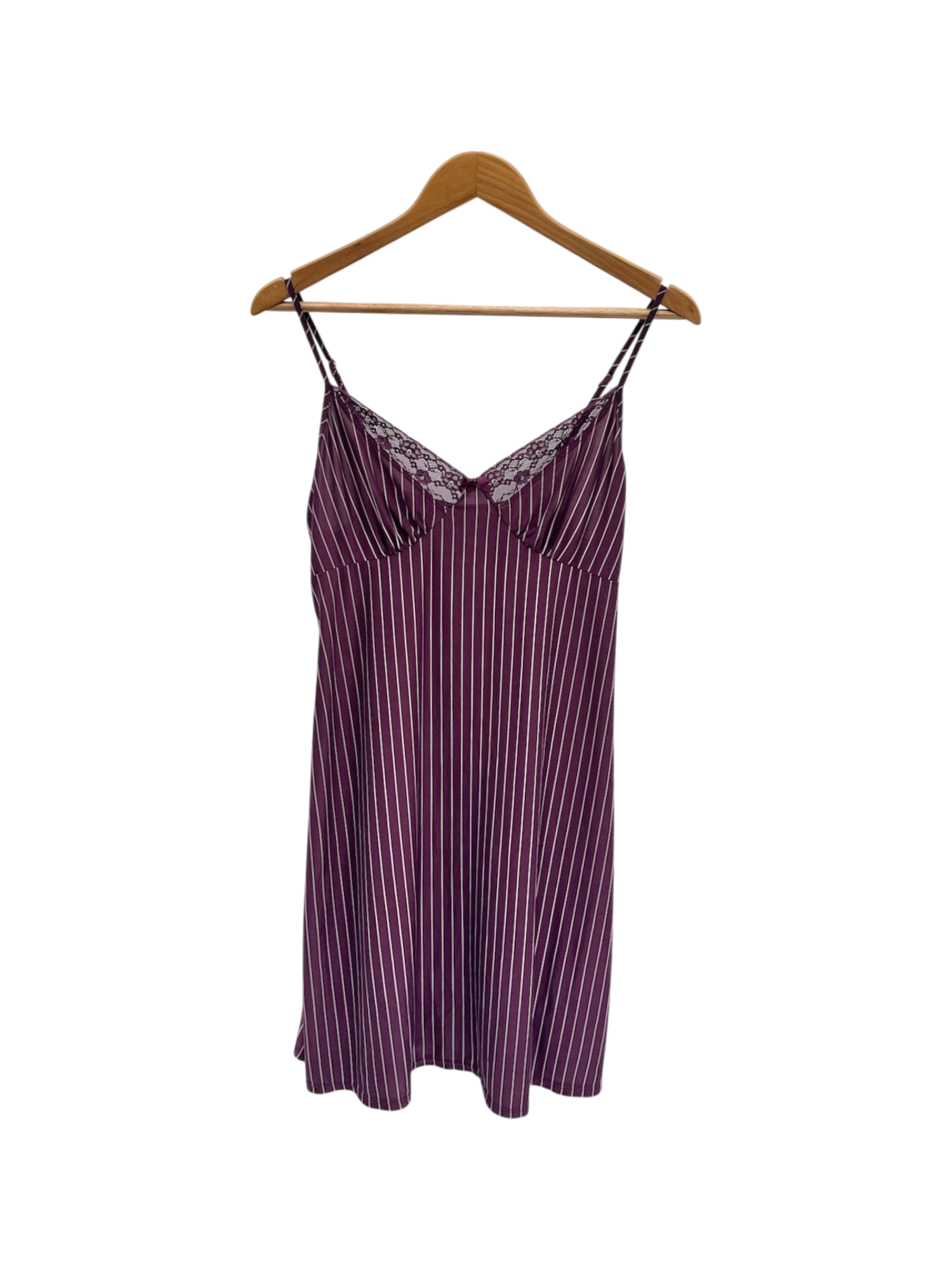 Vintage Plum Pinstripe Lace-Trim Slip Dress (M)