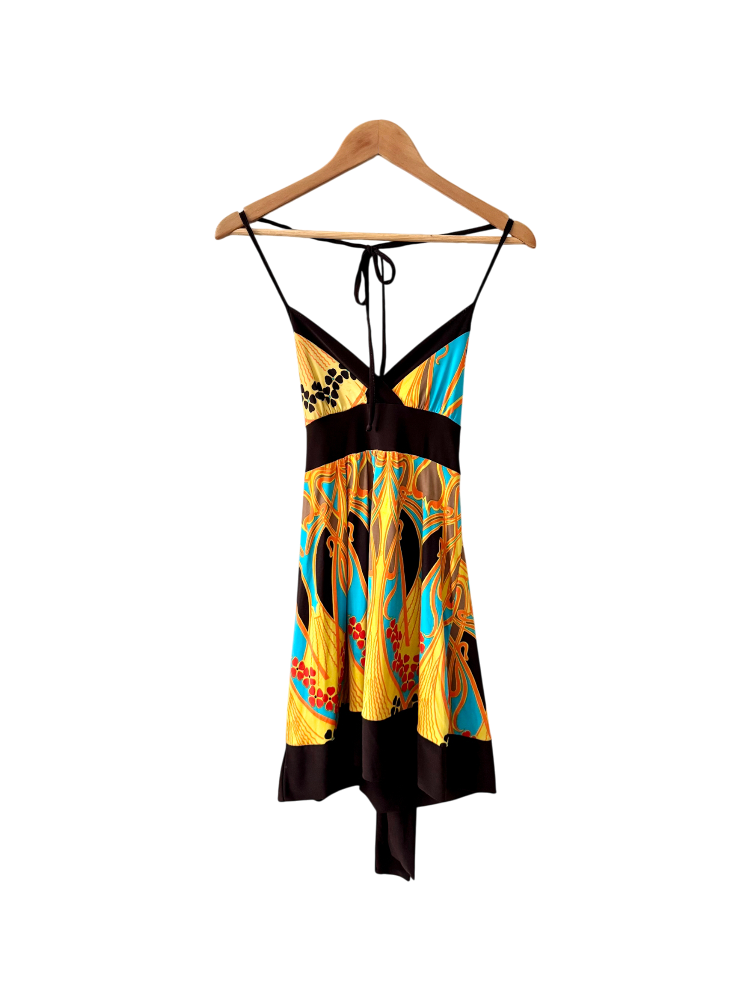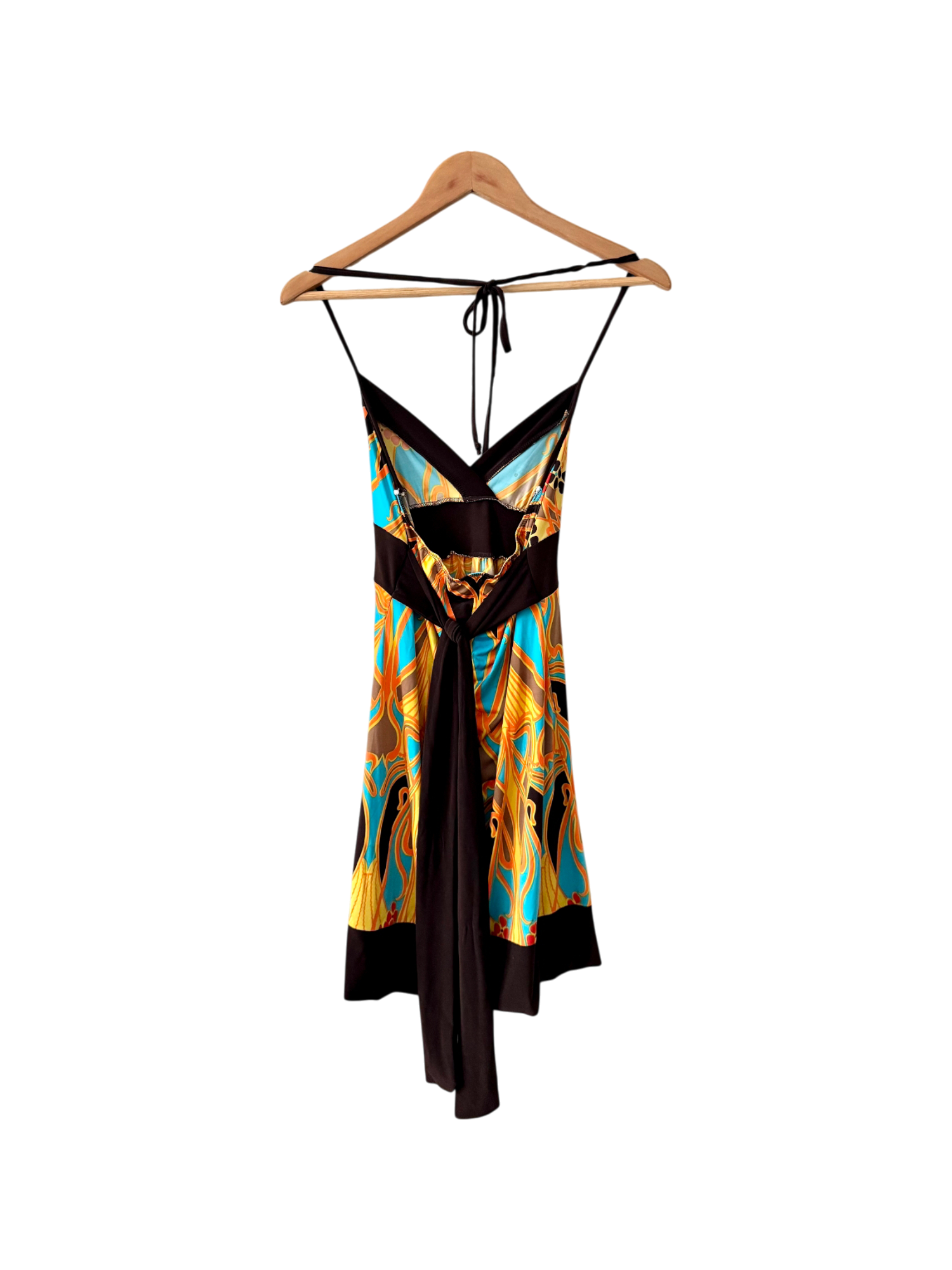 Vintage 90s Retro Print Halter Midi Dress (S)