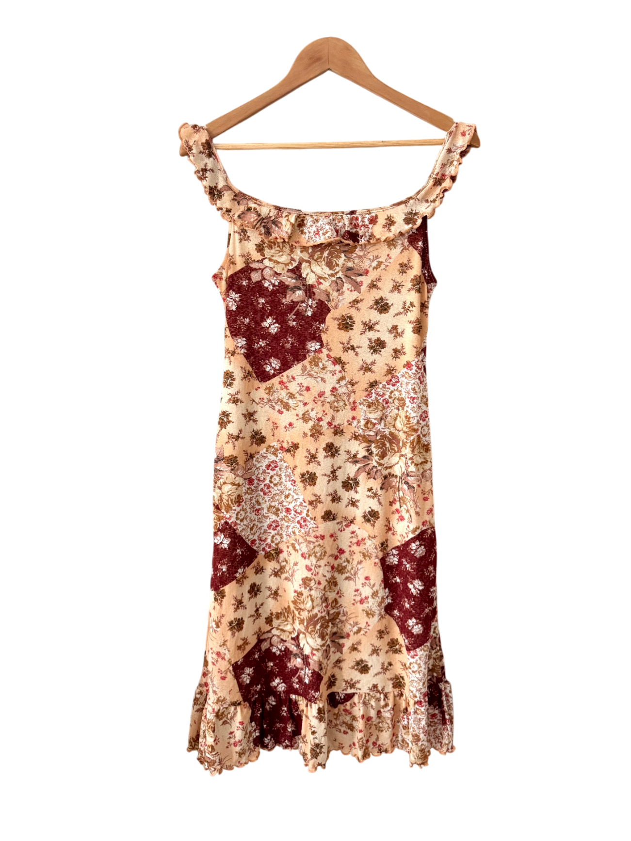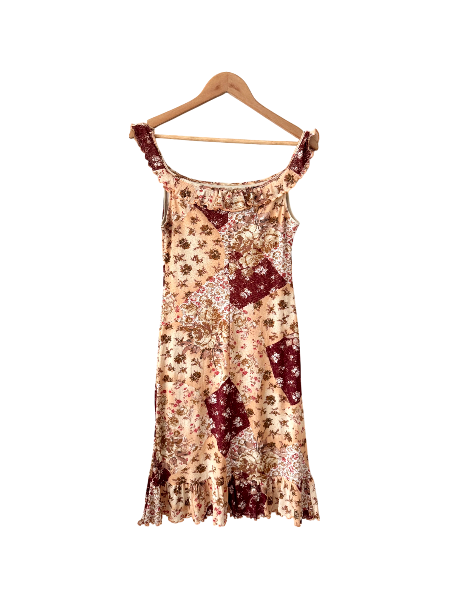 Vintage 90s Patchwork Ruffle Midi Dress (S)