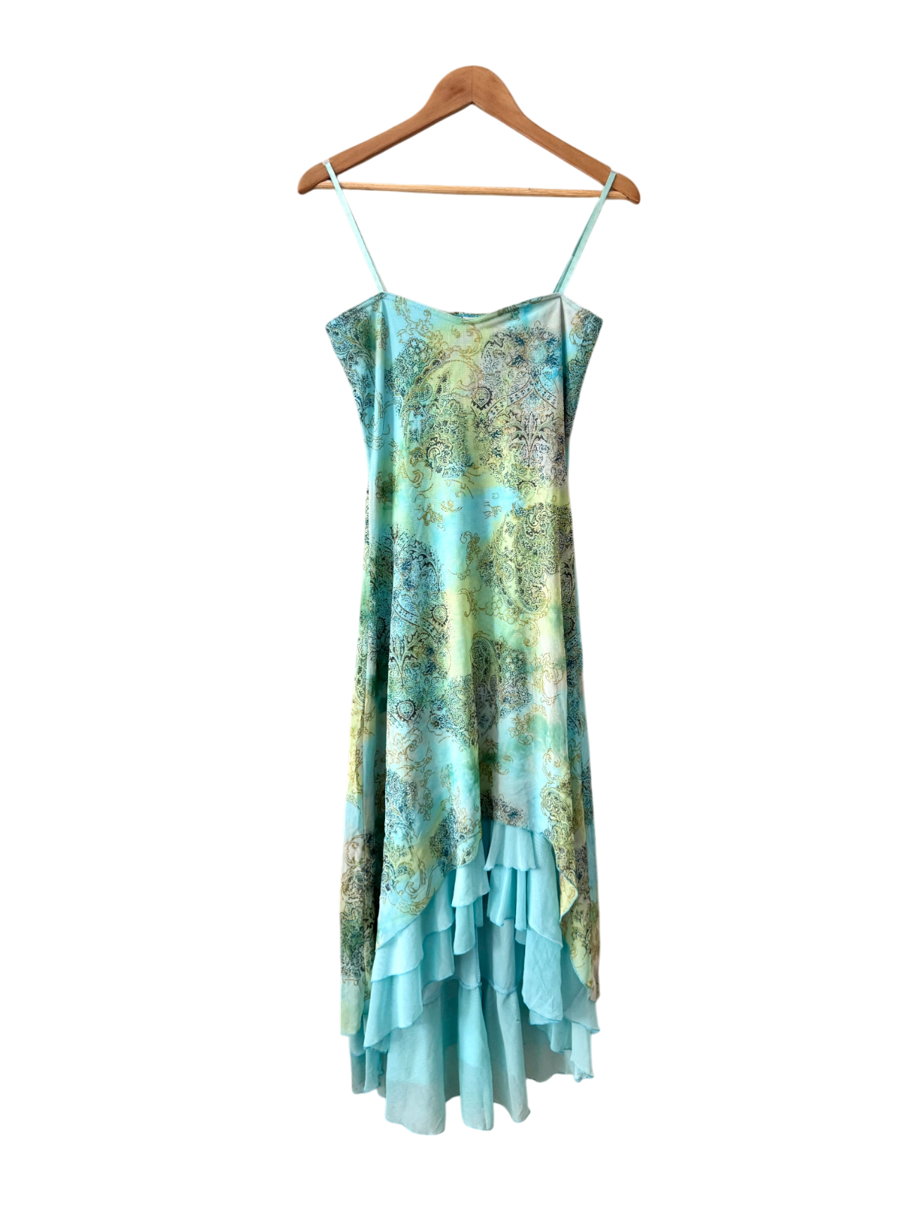 Vintage 90s Parisian Seafoam Paisley Layered Dress (M)