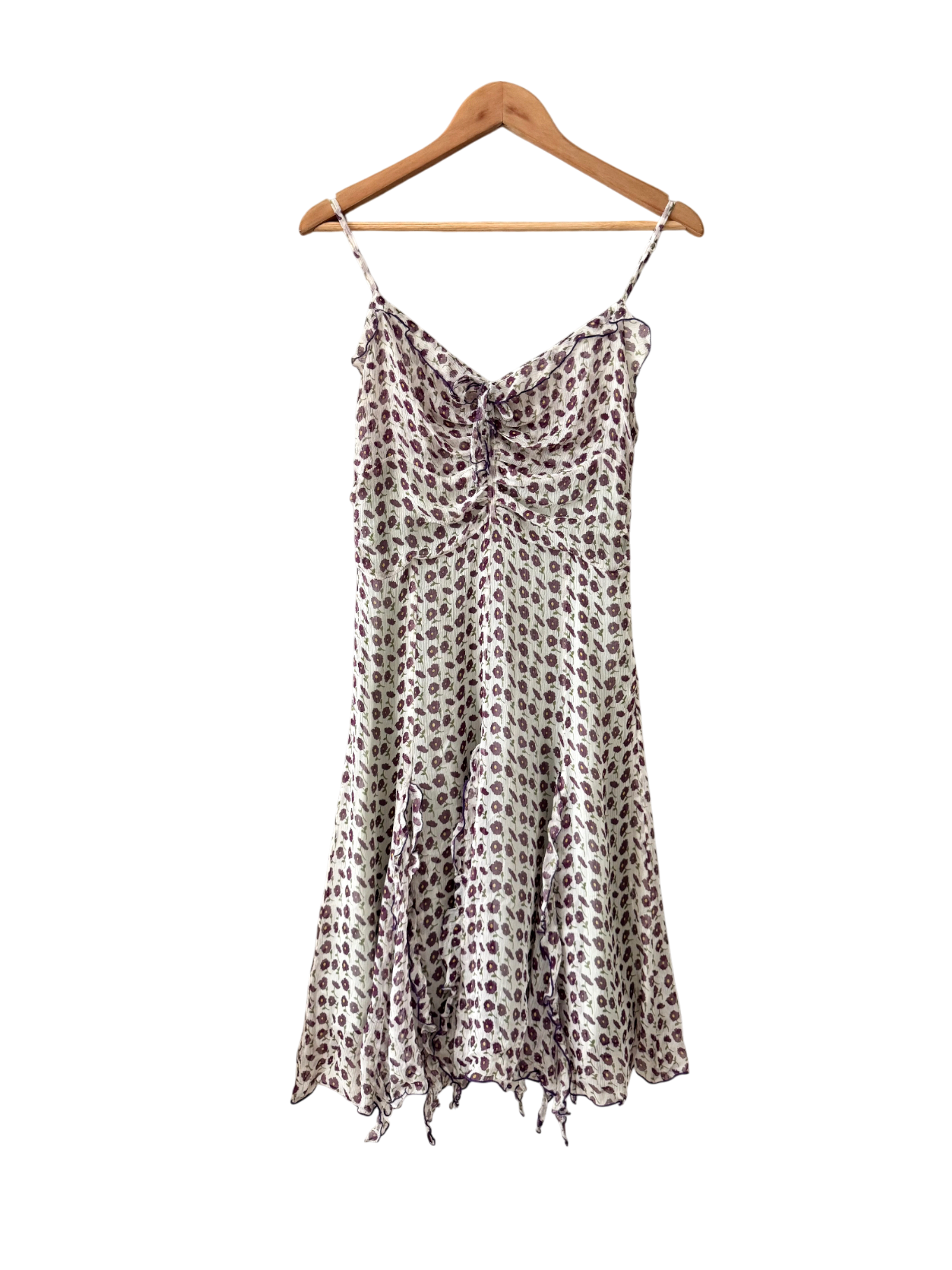 Vintage Y2K Silk Ditsy Midi Dress (M)