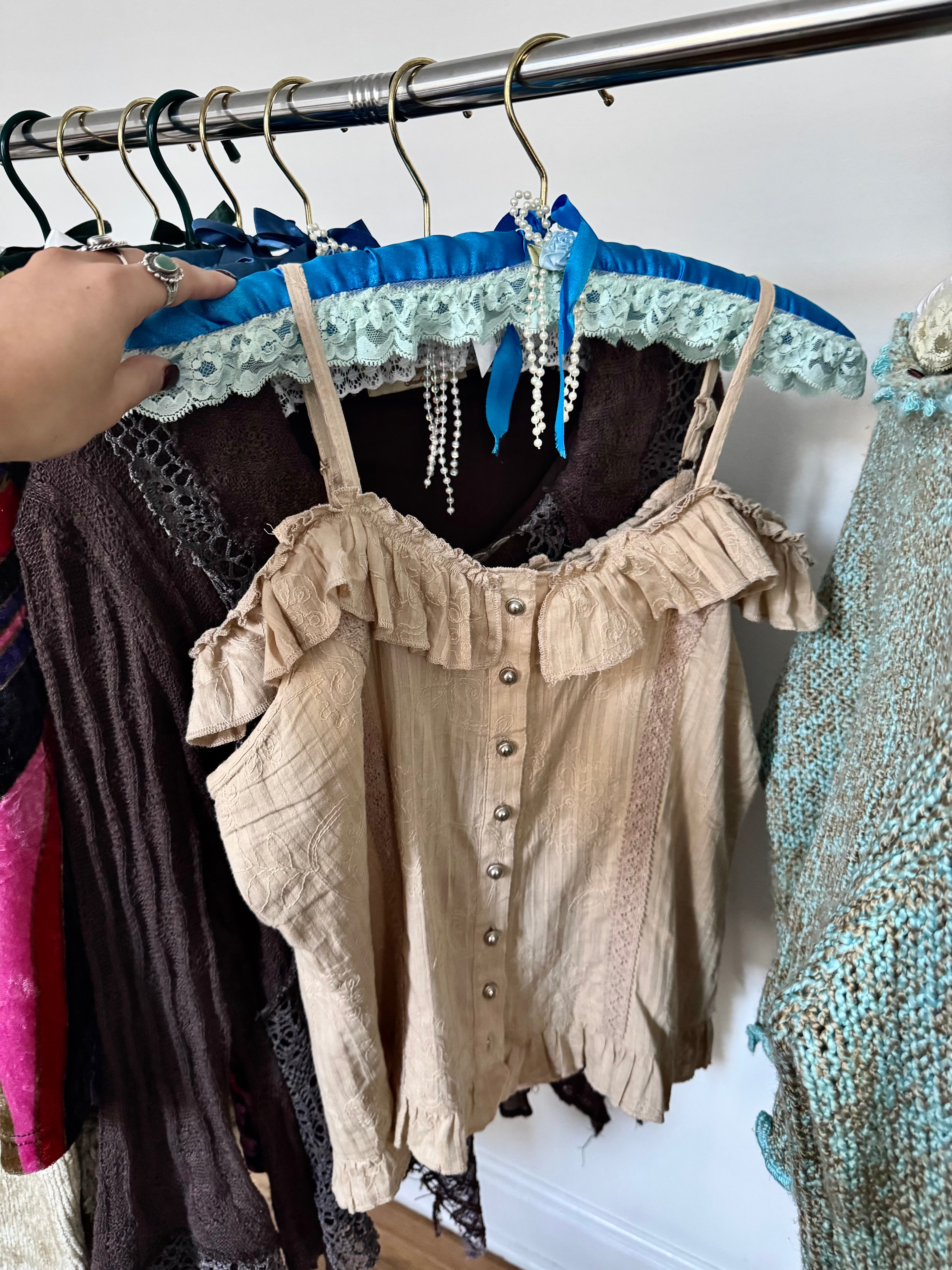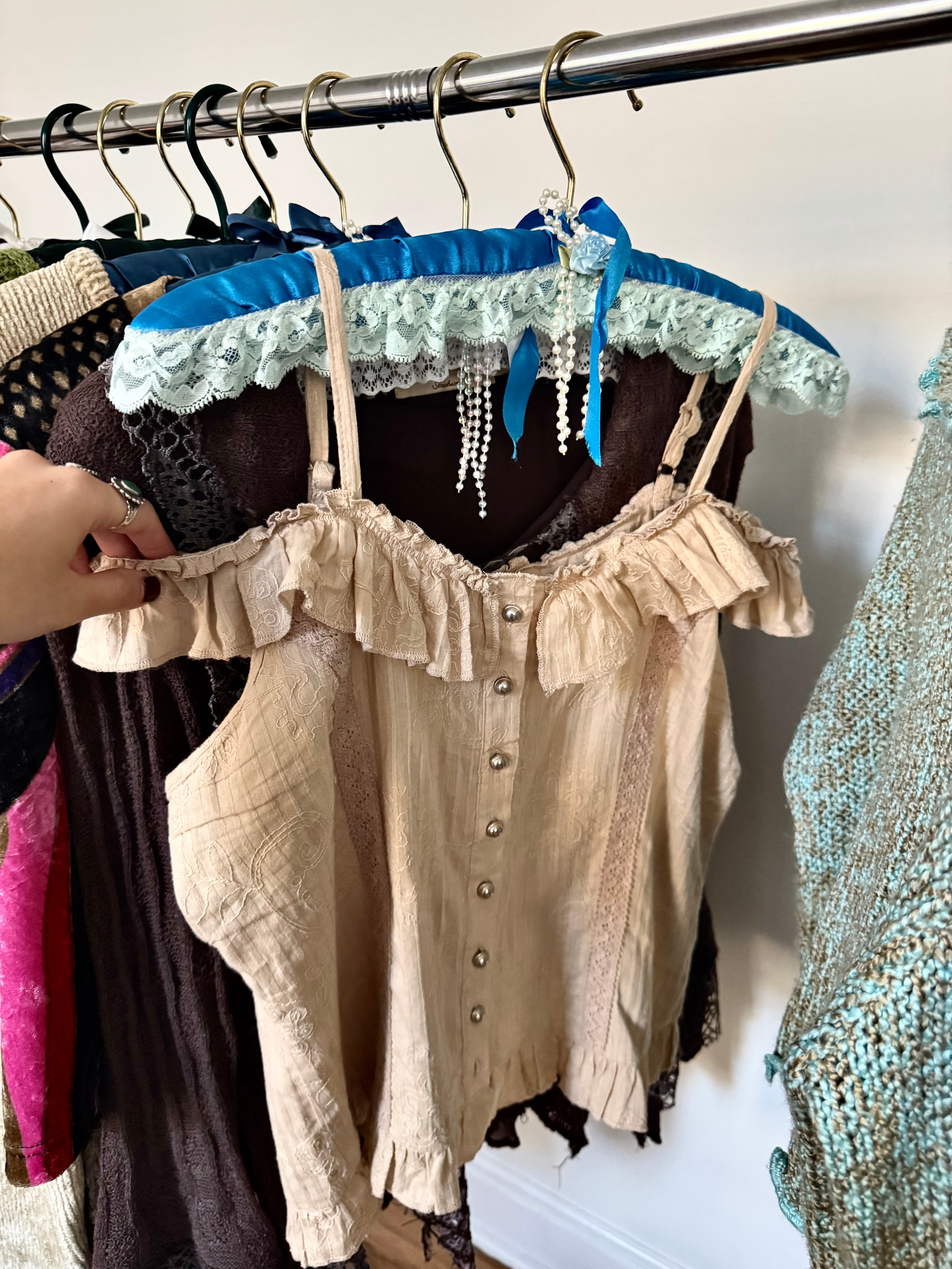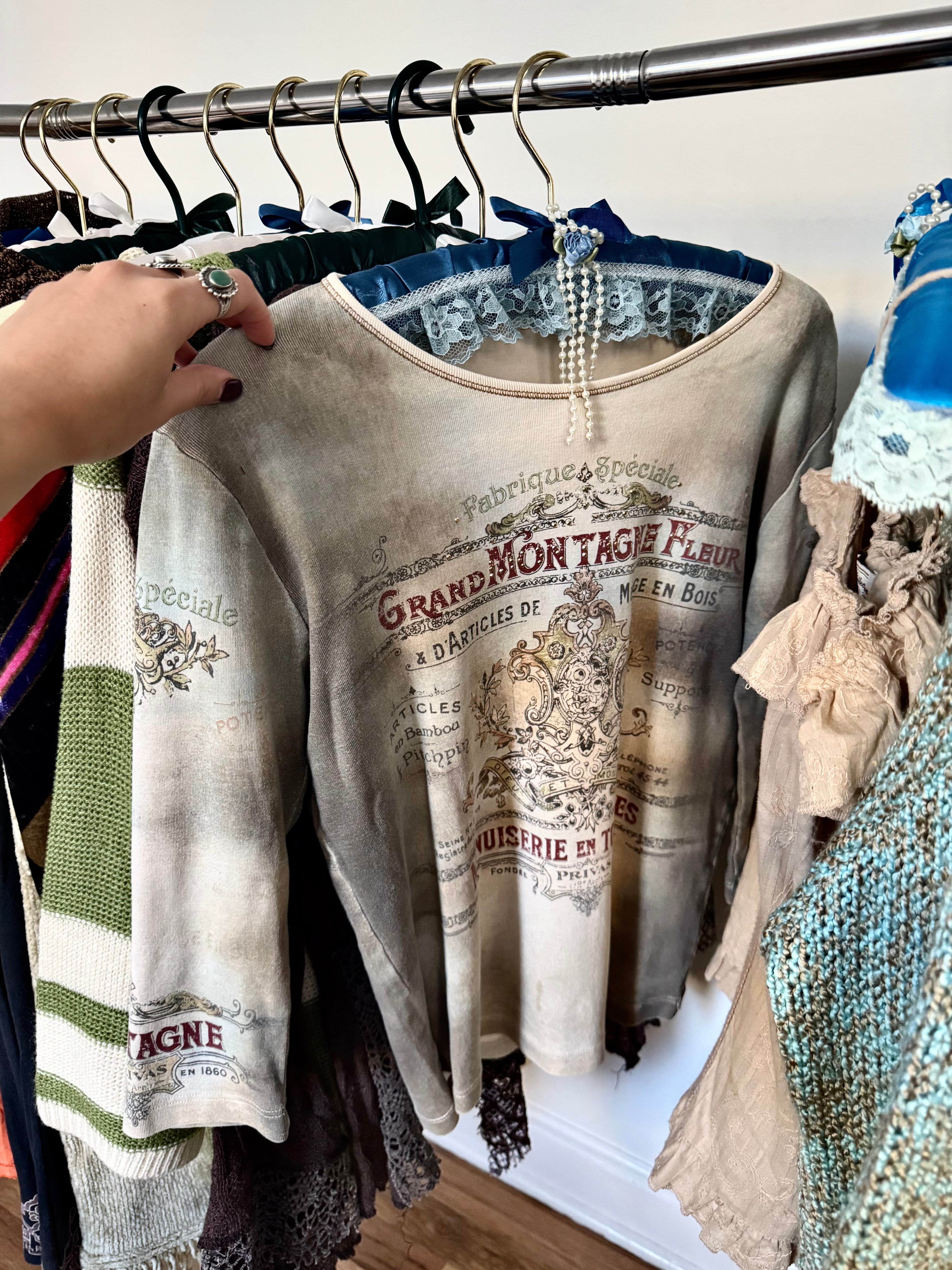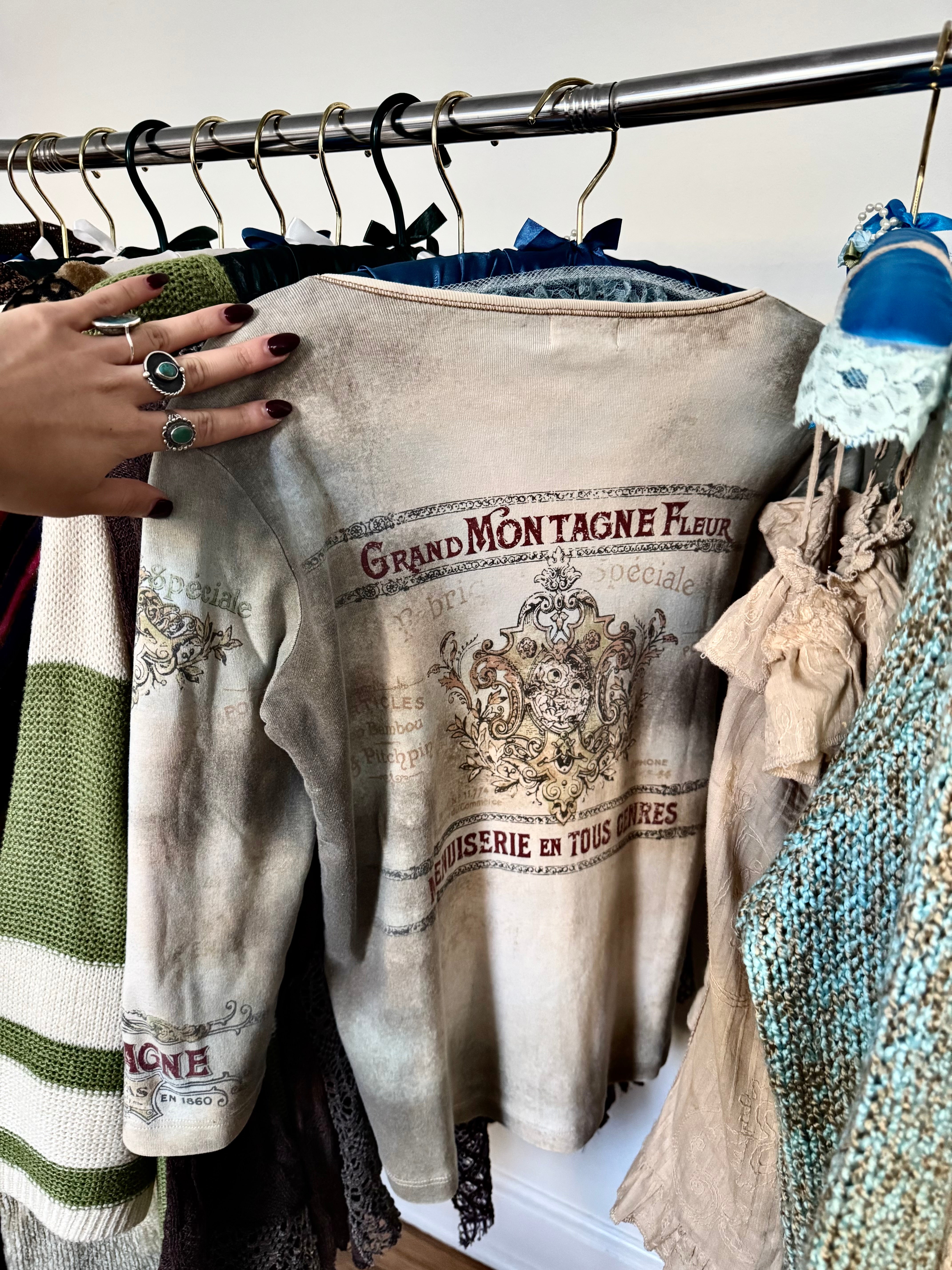 Vintage 90s Parisian Ruffle-Trim Fairy Top- Sourced in Paris (M)