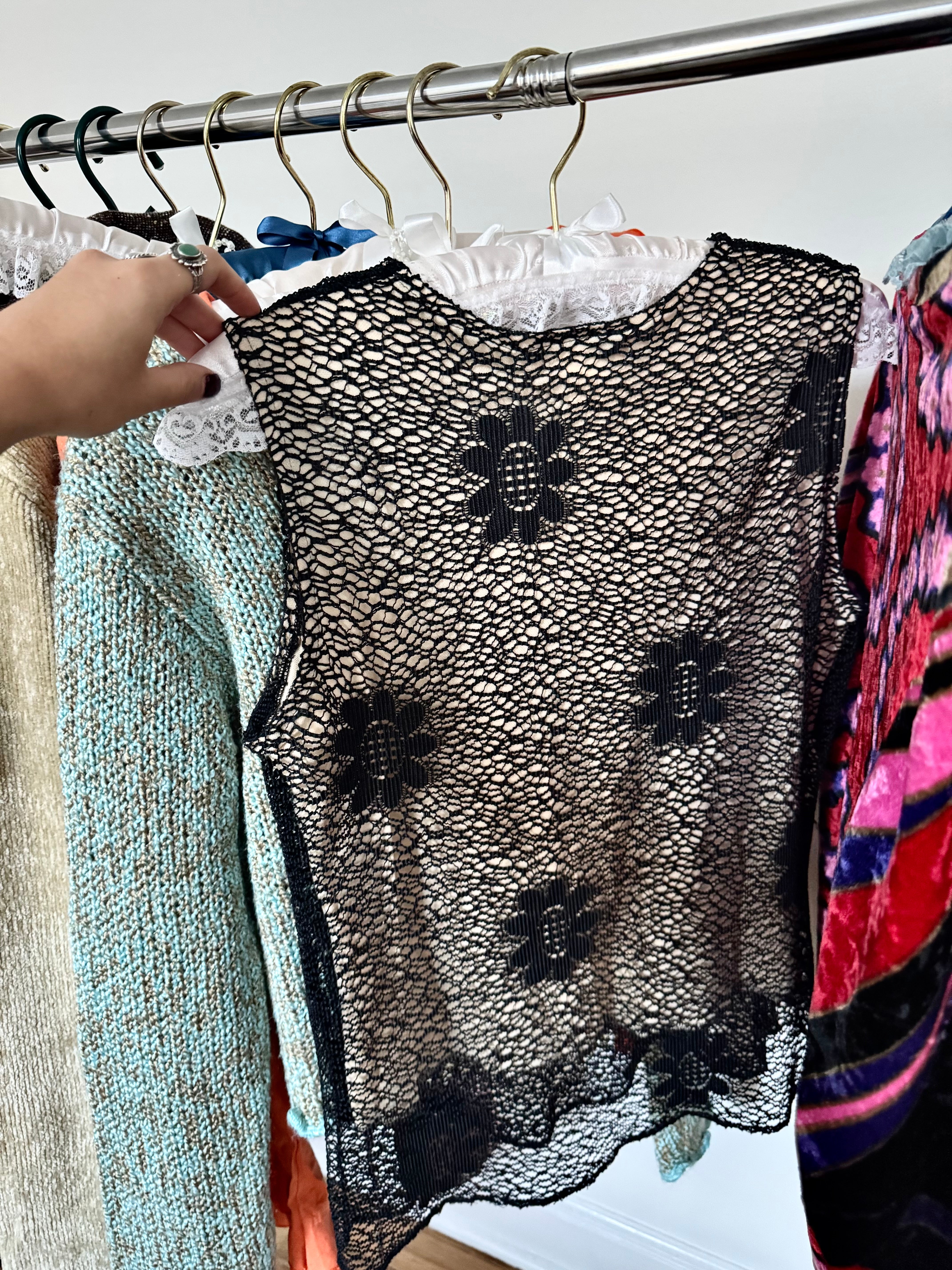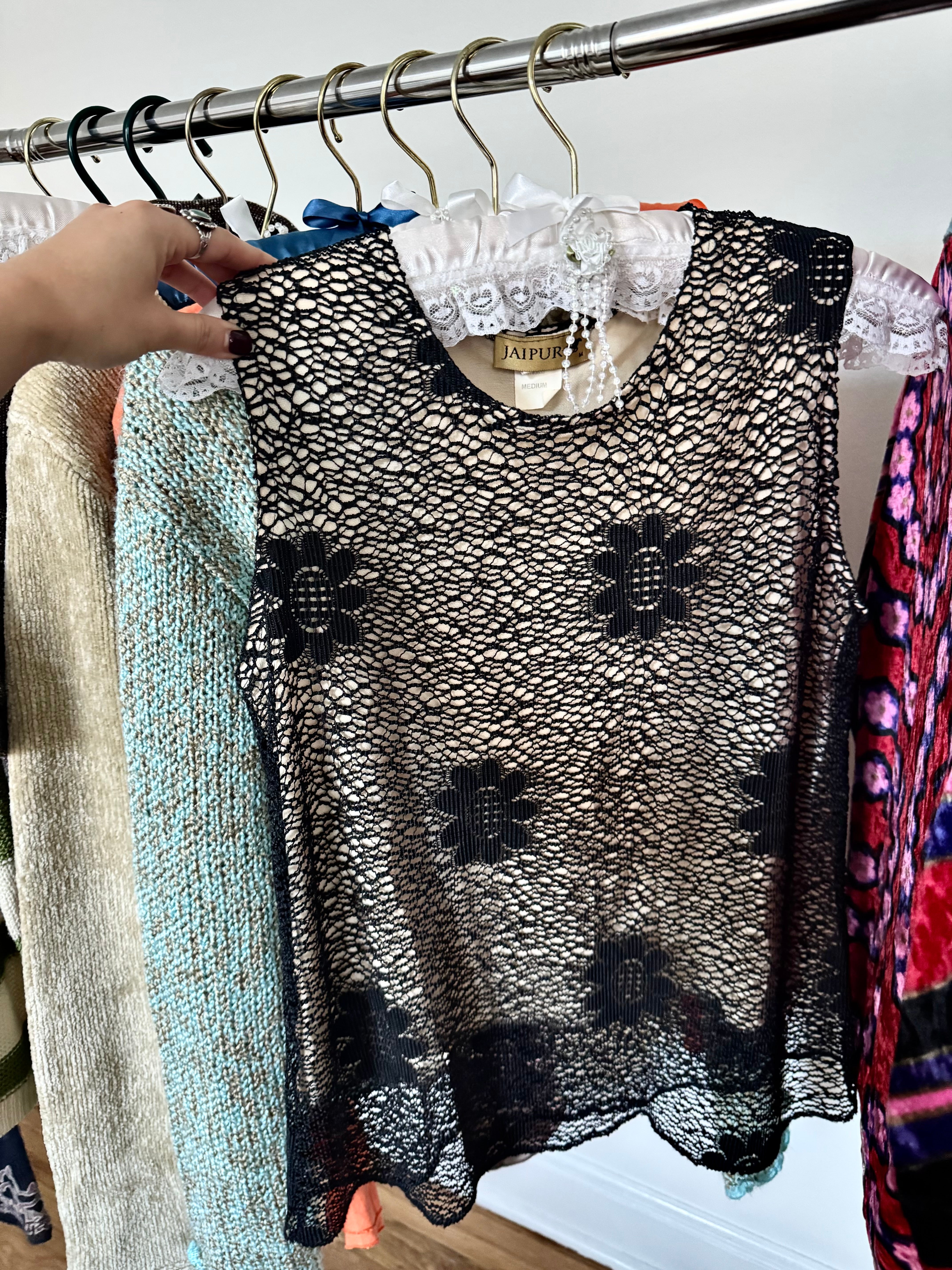 Vintage 90s Retro Crochet Floral Mesh Overlay Tank (M)