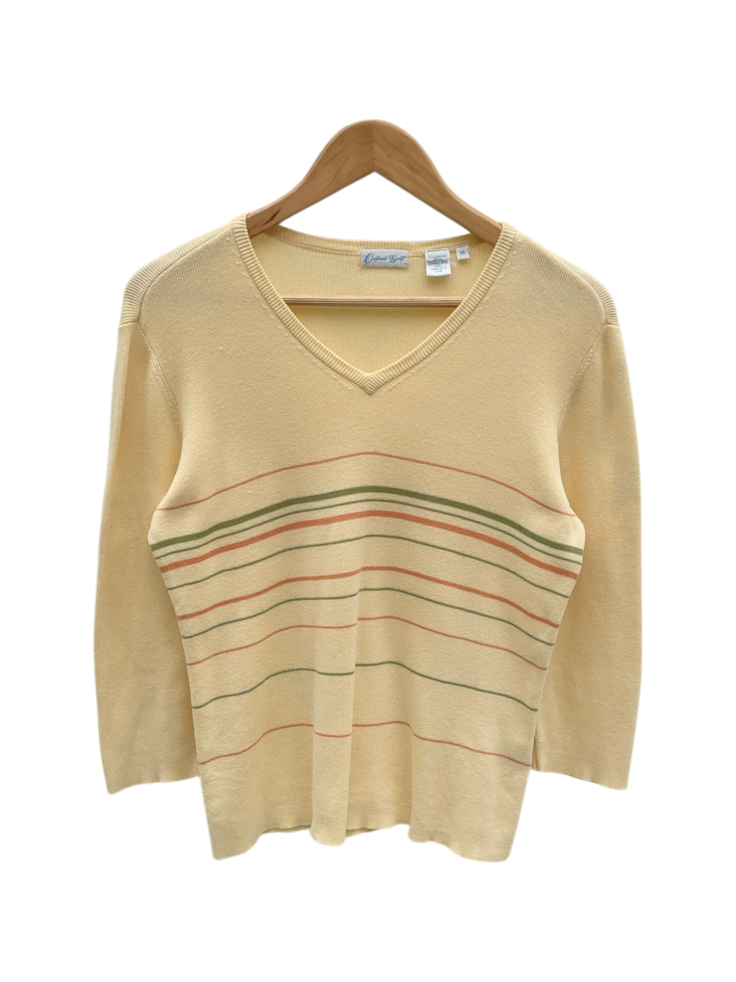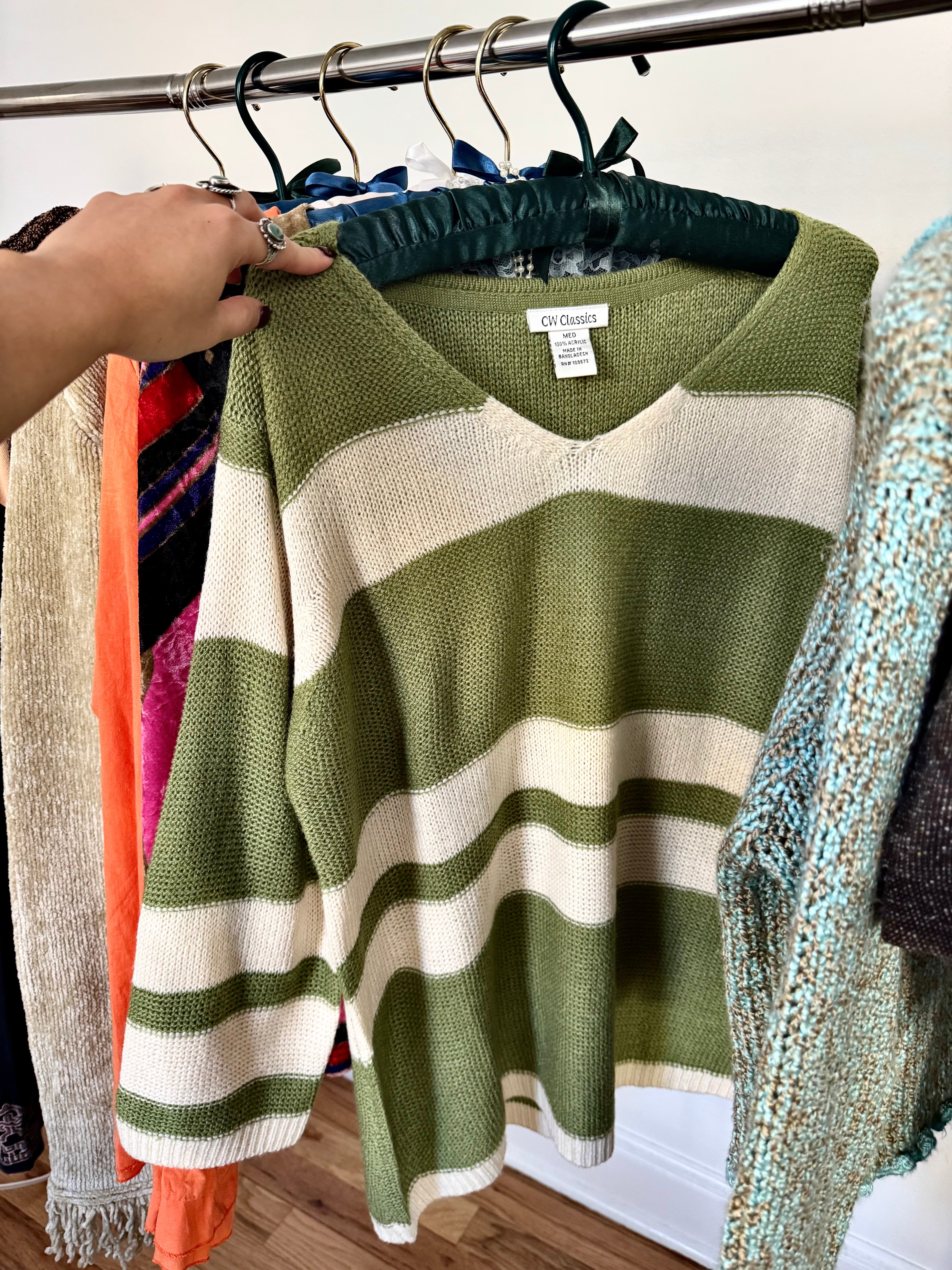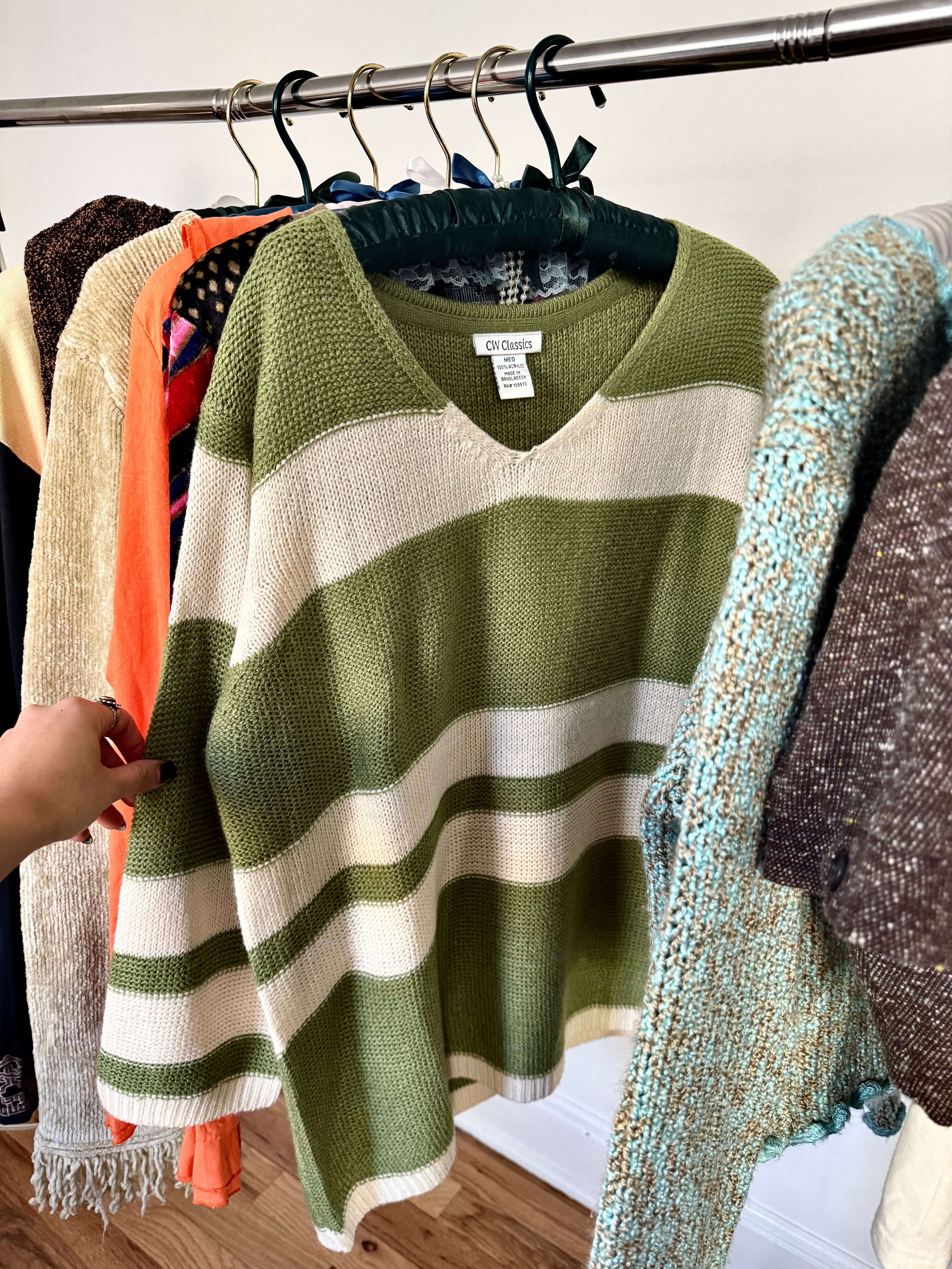 Vintage 2000s Cozy Olive Stripe Knit Sweater (M)