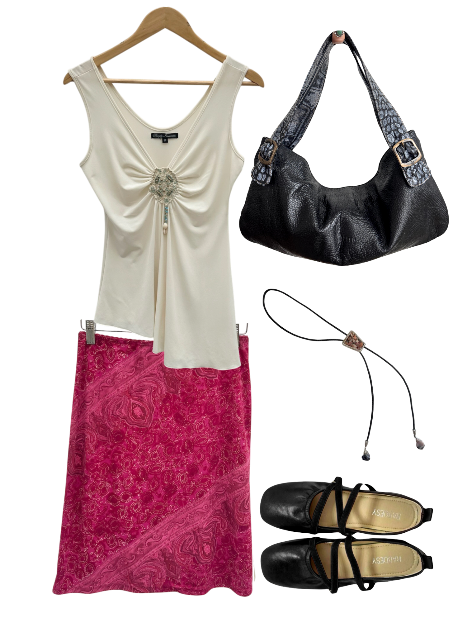 Vintage Y2K Raspberry Paisley Midi Skirt (M)