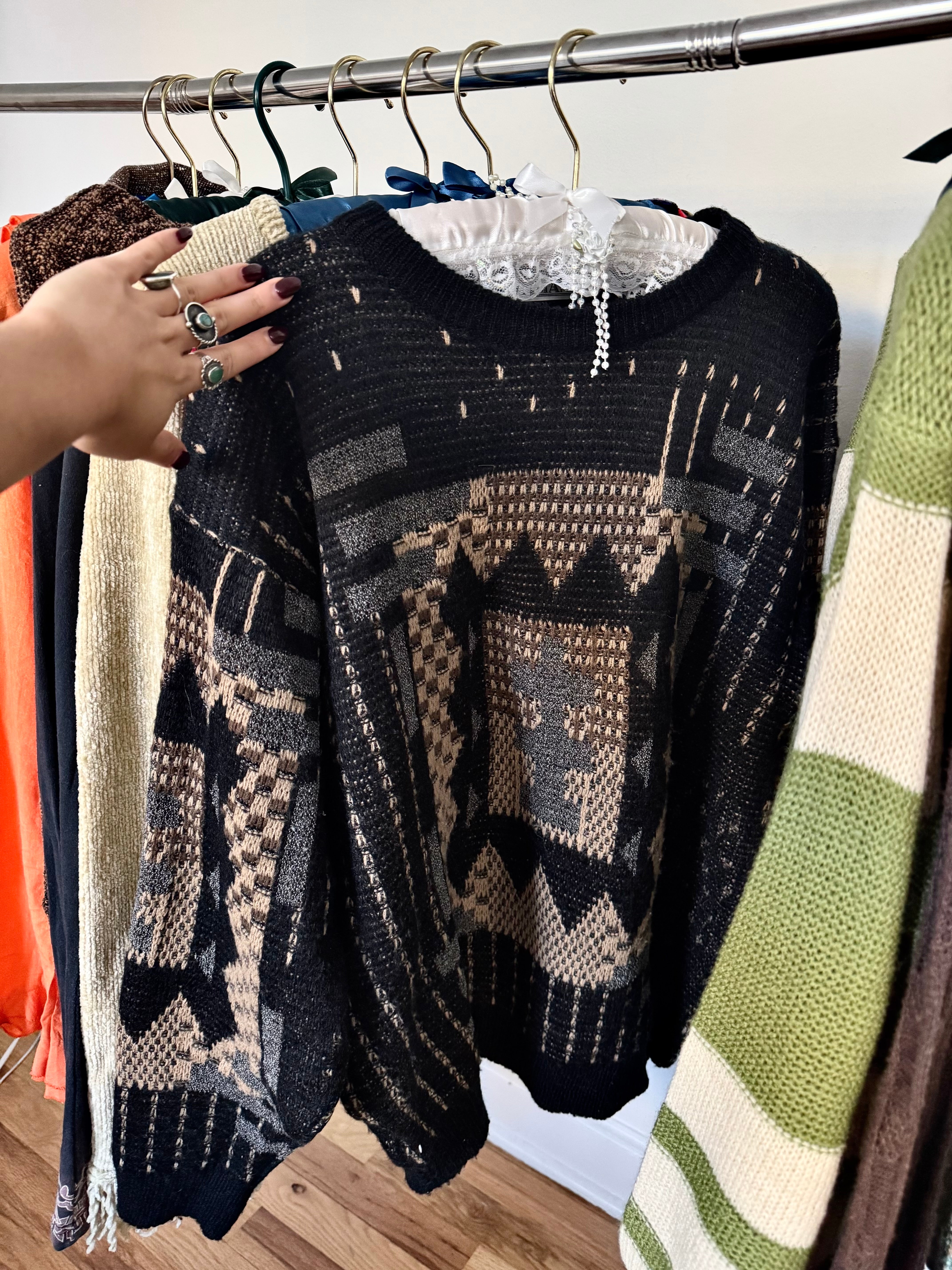 Vintage 90s Monochrome Waffle Knit Sweater (M)