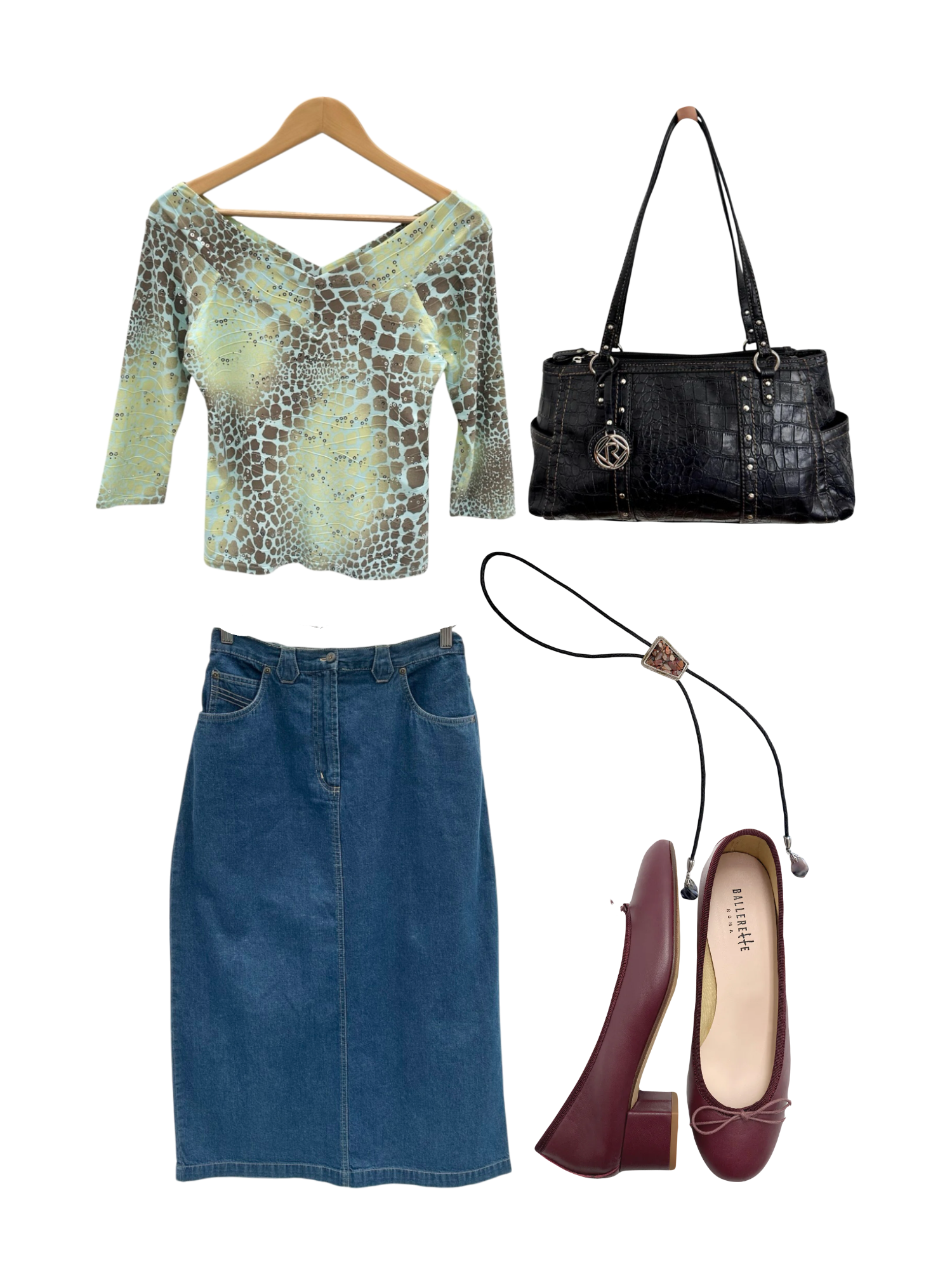 Vintage Y2K Jewel Belt Midi Skirt (S/M)
