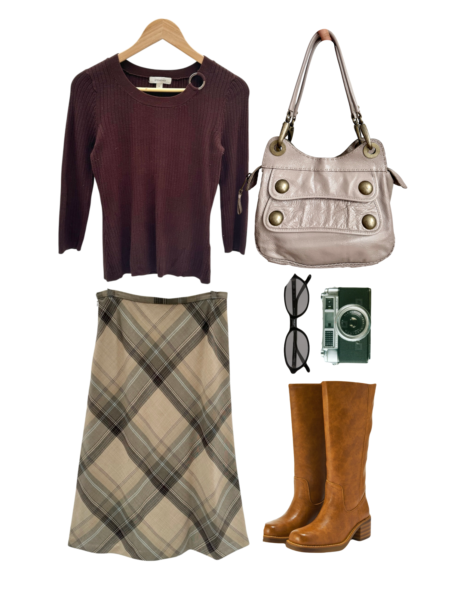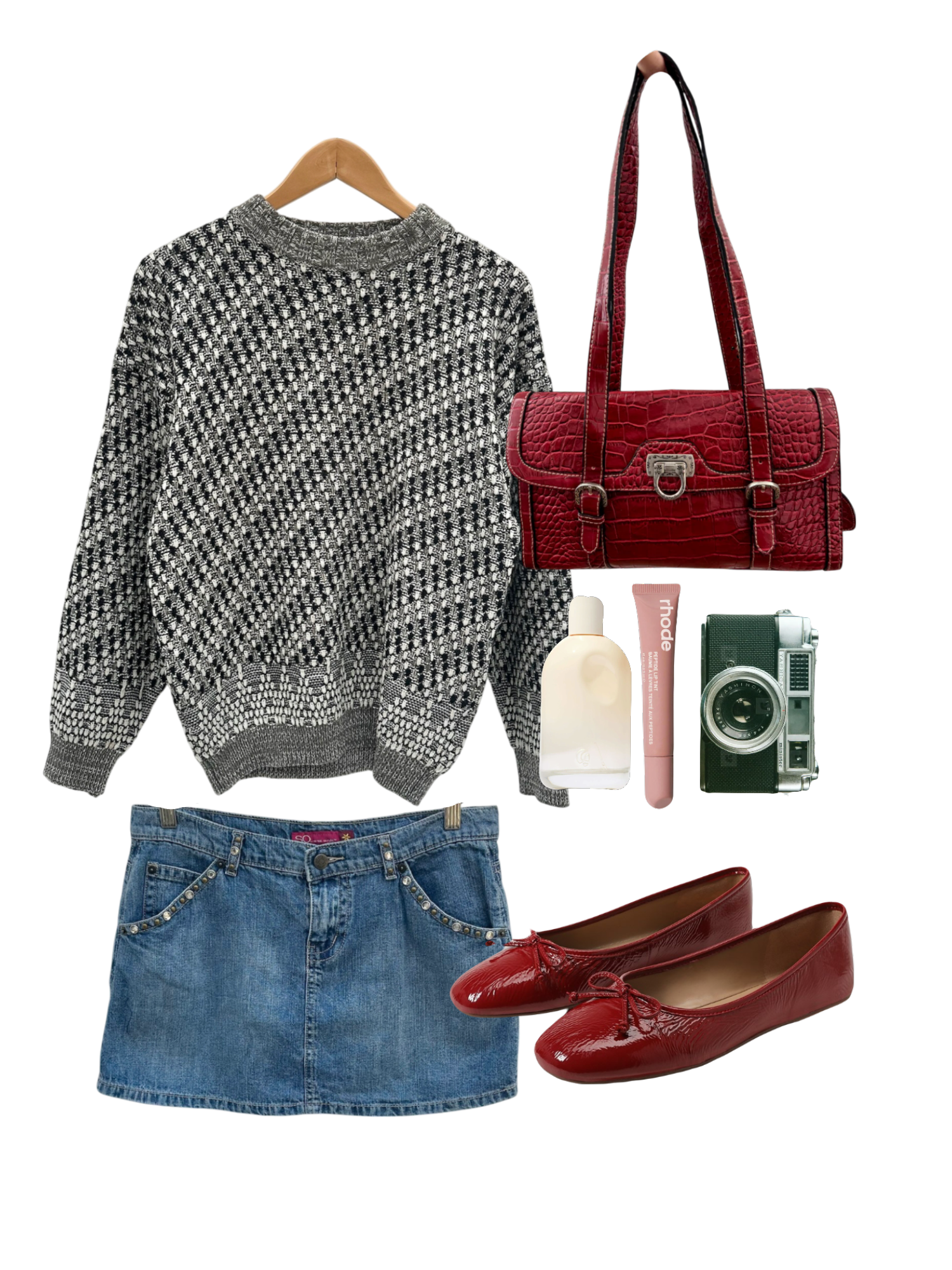 Vintage 90s Plum & Charcoal Off-Shoulder Sweater (M)