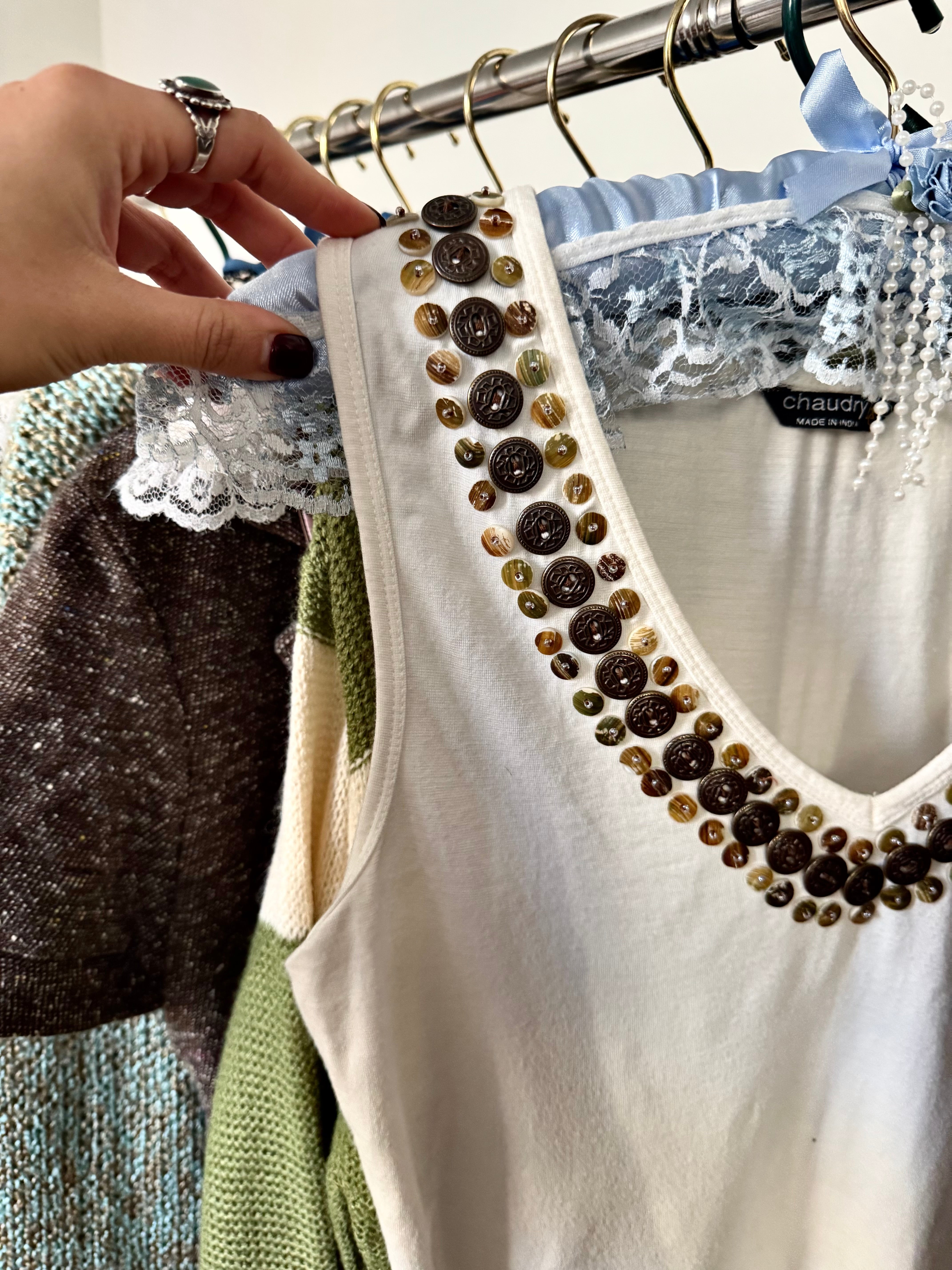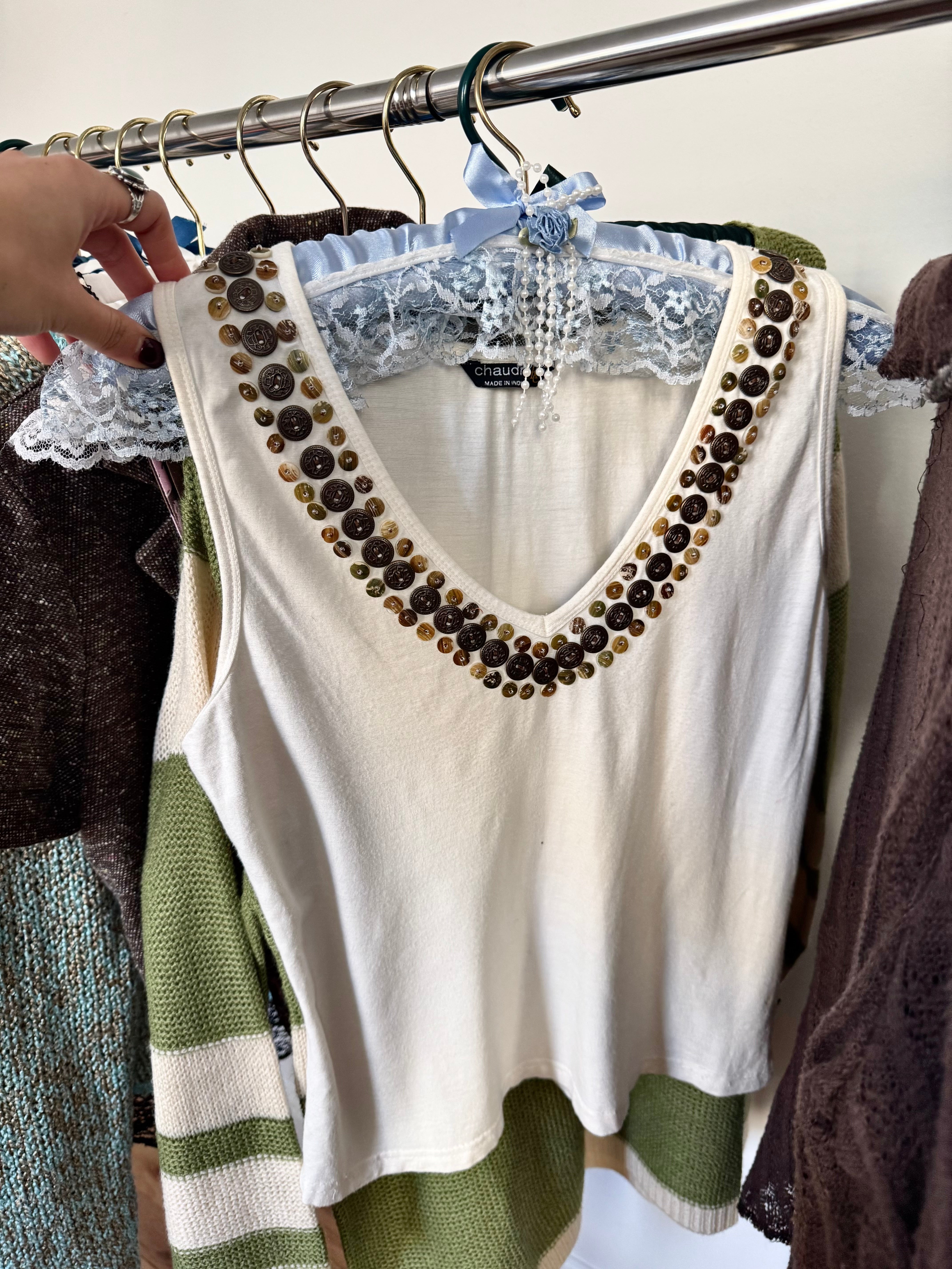 Vintage 2000s Button-Embellished Knit Tank(M)