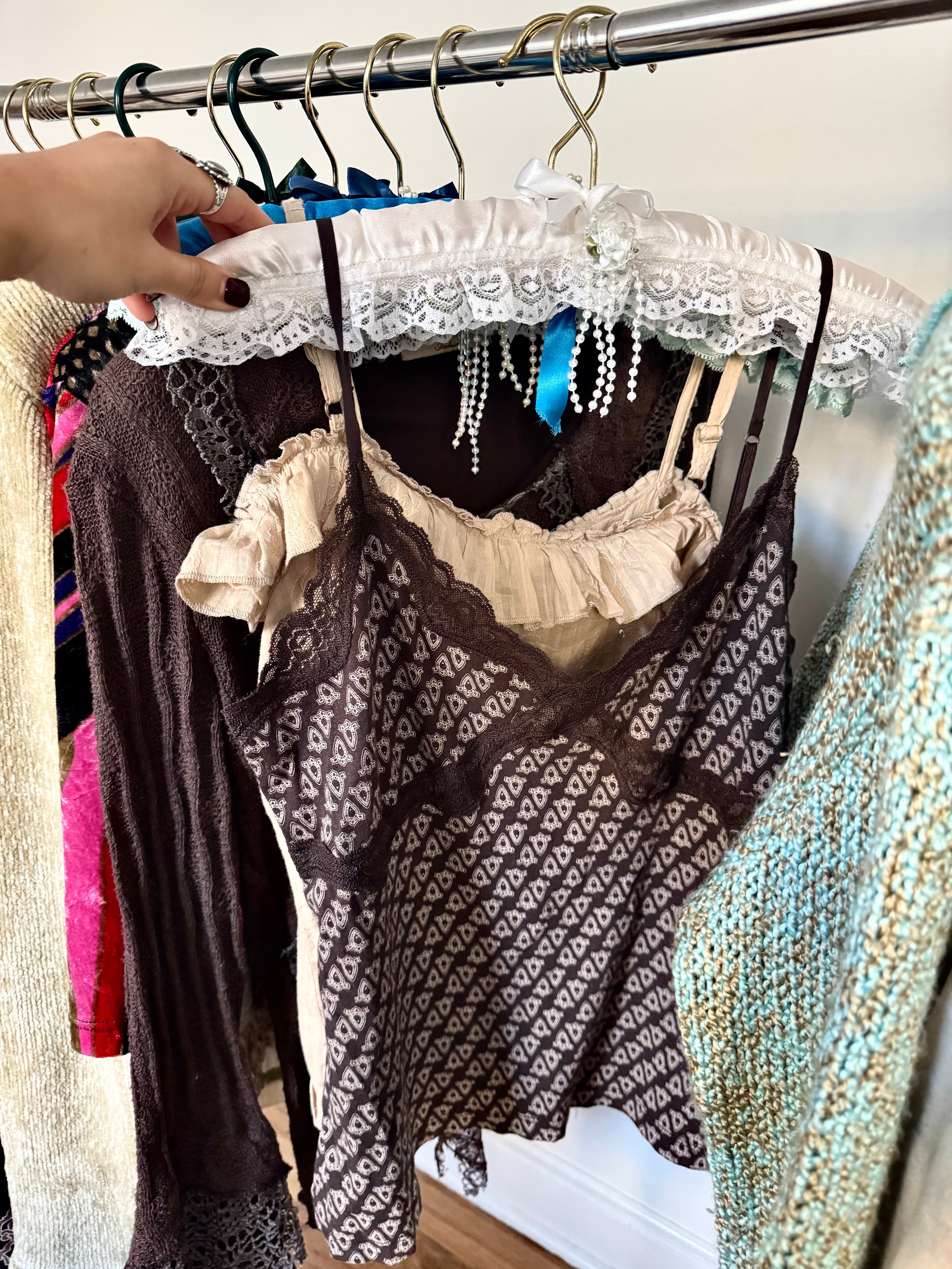 Vintage 2000s Brown Lace-Trim Cami (M)