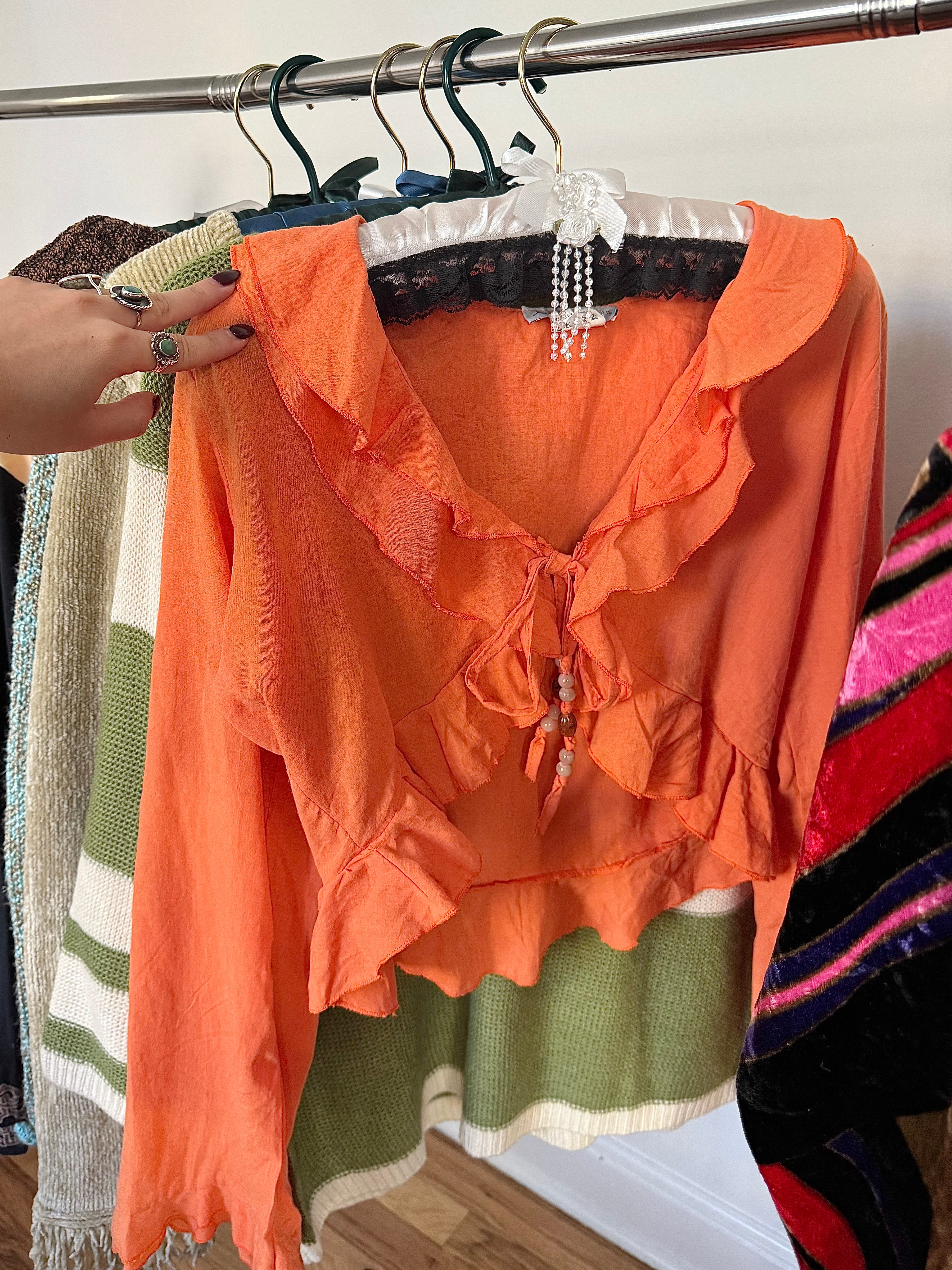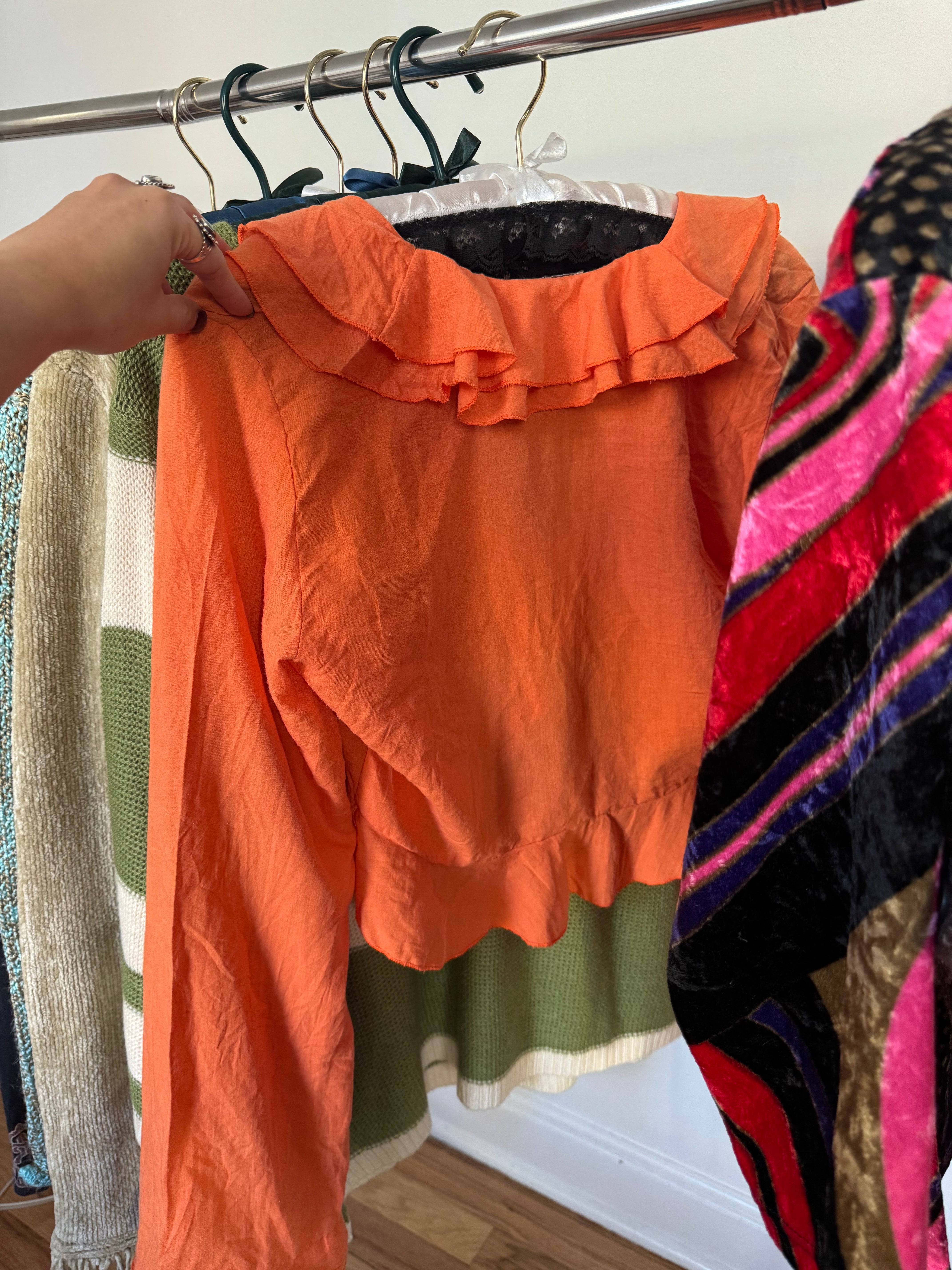 Vintage 70s Tangerine Poet Blouse- Sourced in Paris (M)