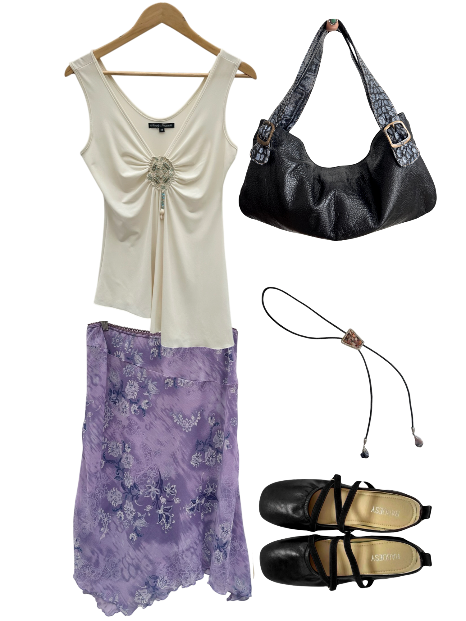 Vintage Y2K Lilac Asymmetrical Floral Skirt (L)