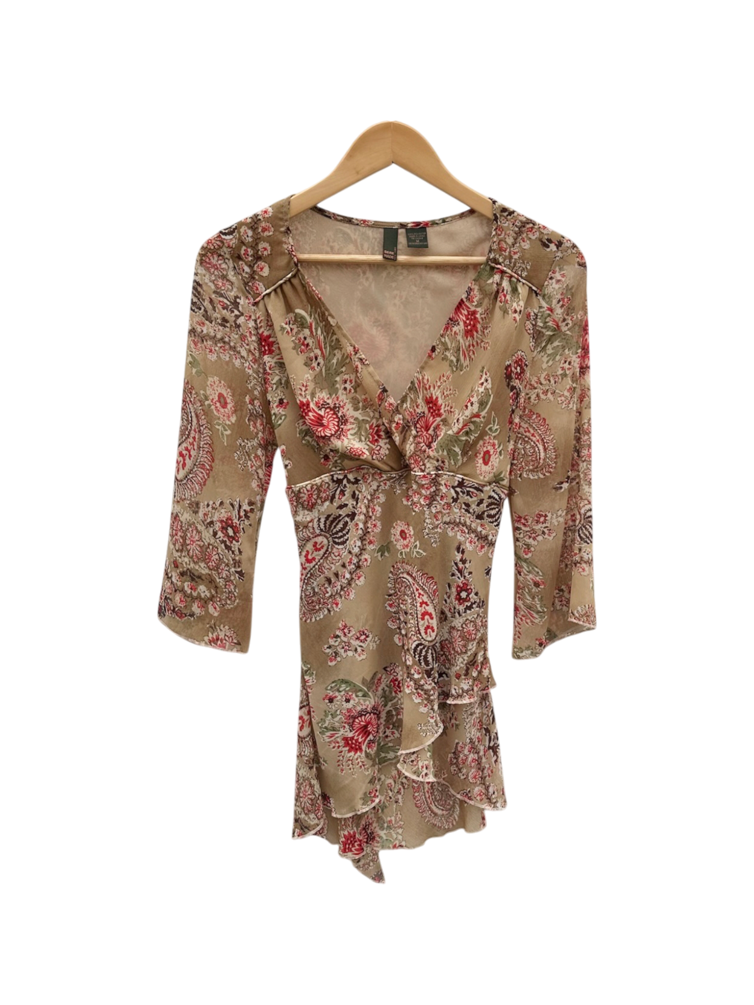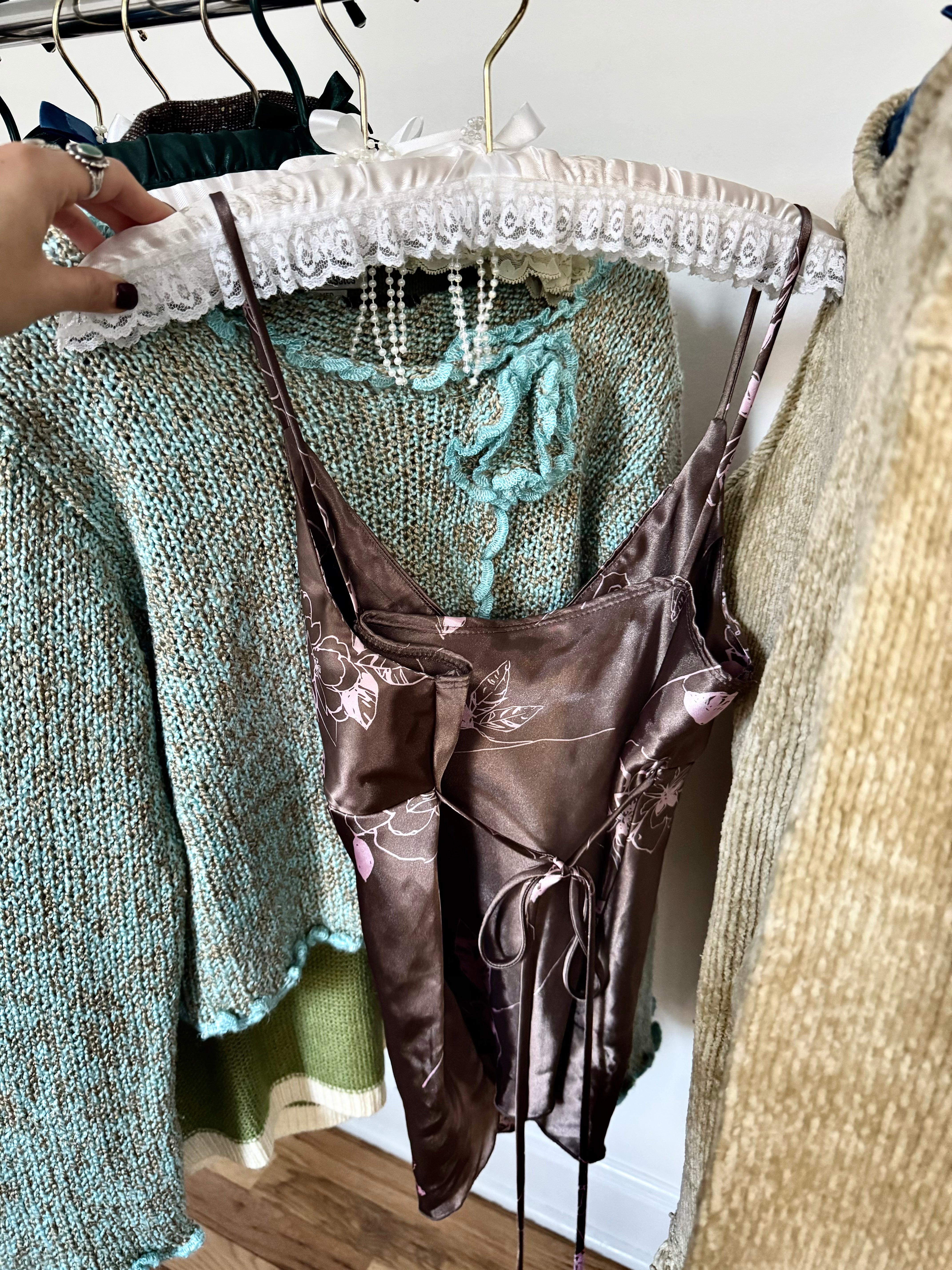 Vintage 2000s Floral Taupe Ruched Tie Cami (M)