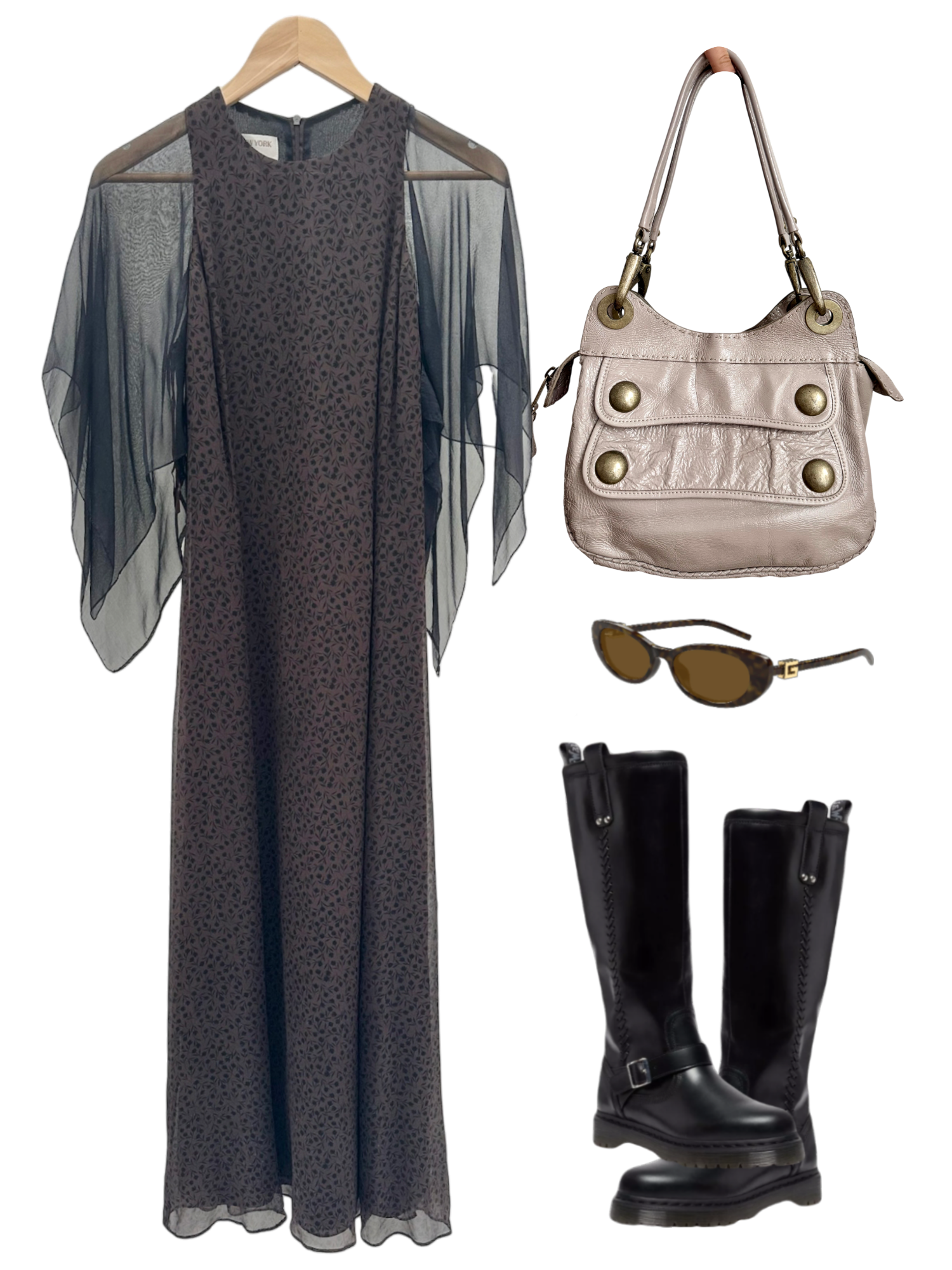 Vintage 90s Sheer-Wing Silk Midi Dress (S)
