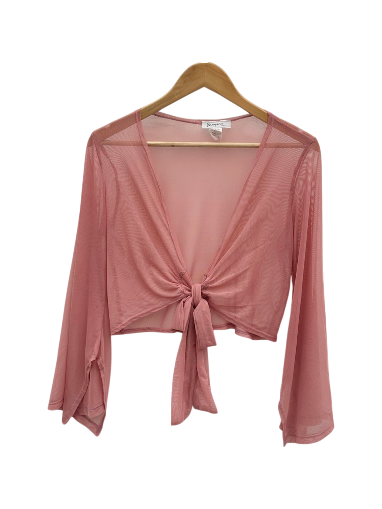 Vintage Y2K Sheer Rosy Mesh Tie Top (M)