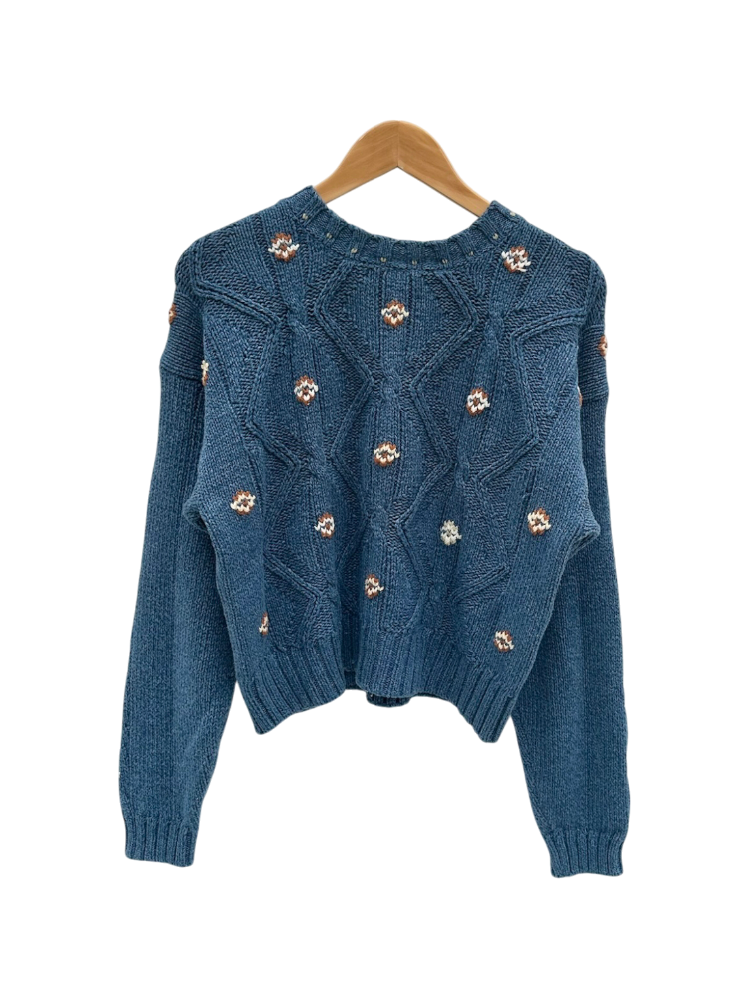 Vintage 90s Chunky Embroidered Cotton Knit Sweater (M)