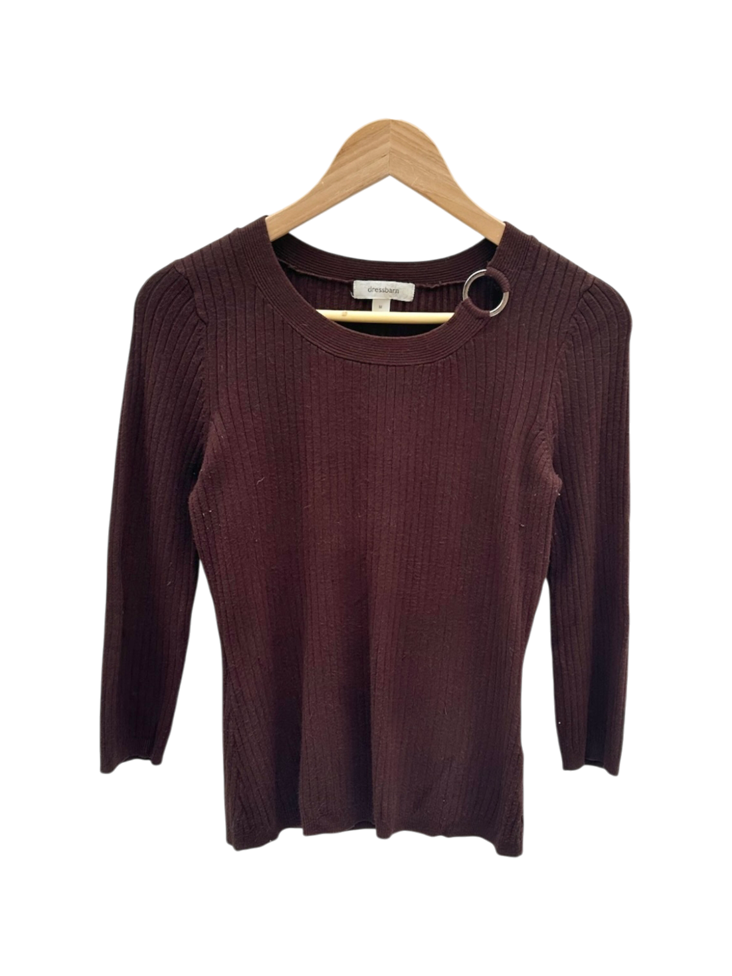 Vintage Y2K Chocolate Ribbed Top with Metal Ring (M)