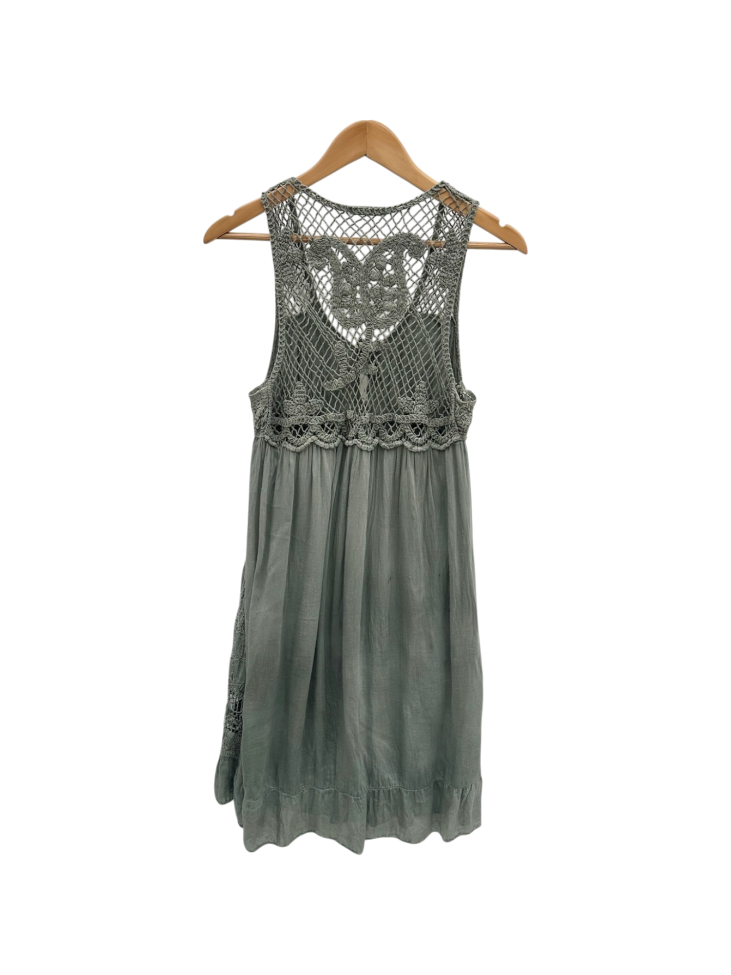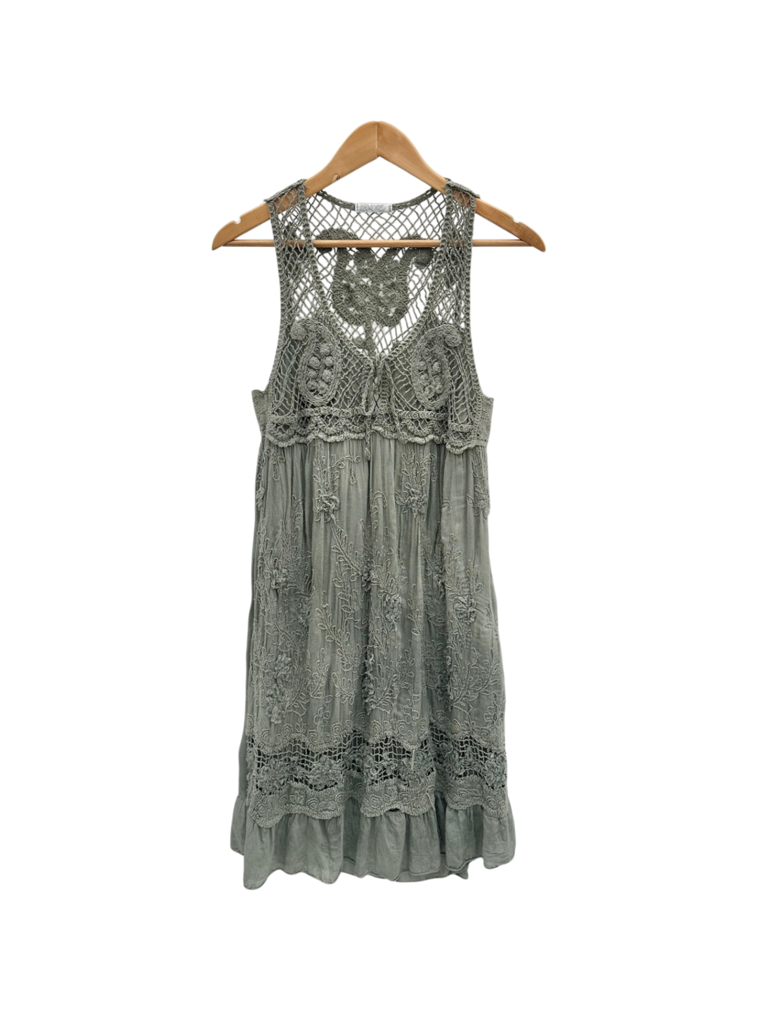 Vintage 90s Boho Moss Crochet Dress (S/M)