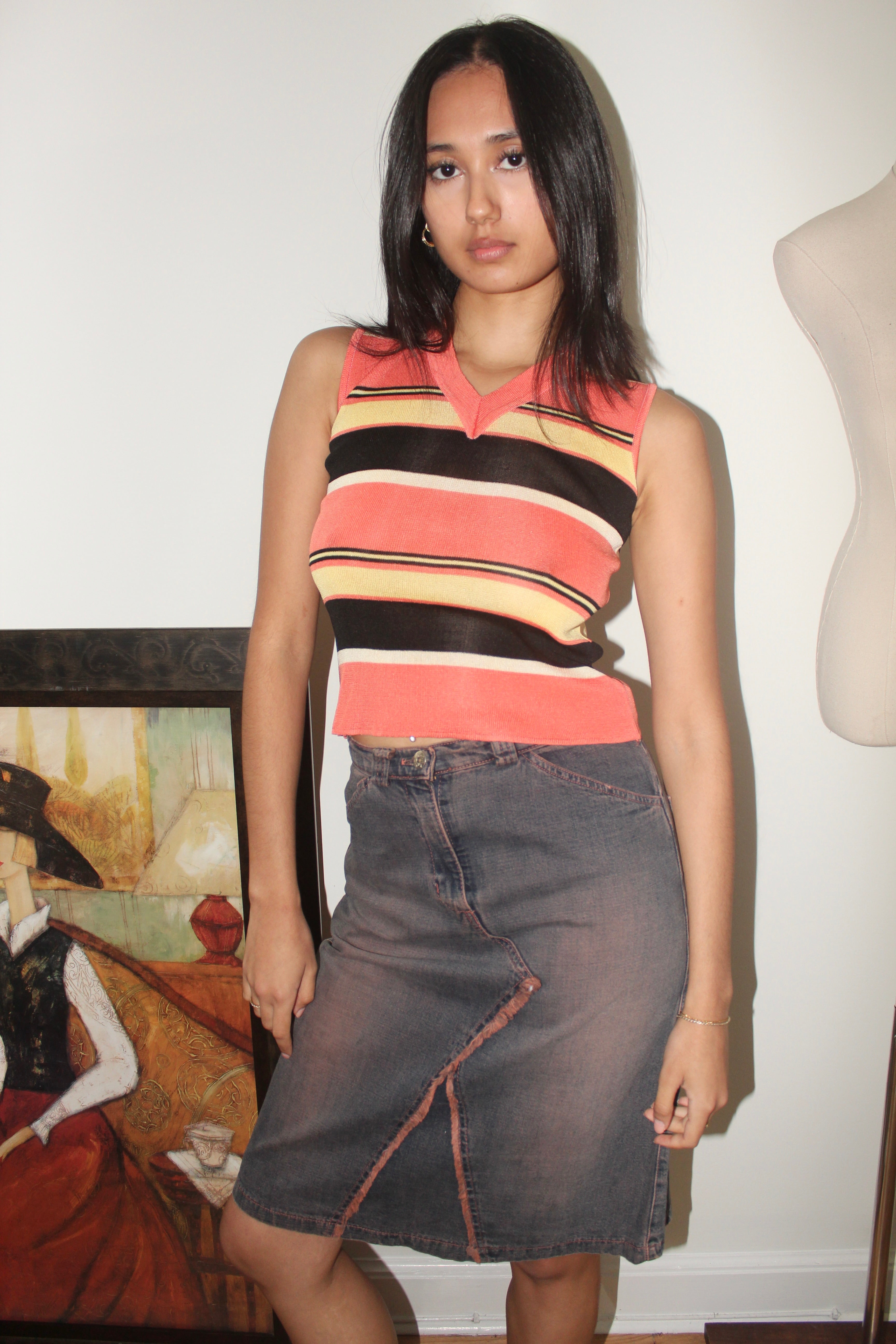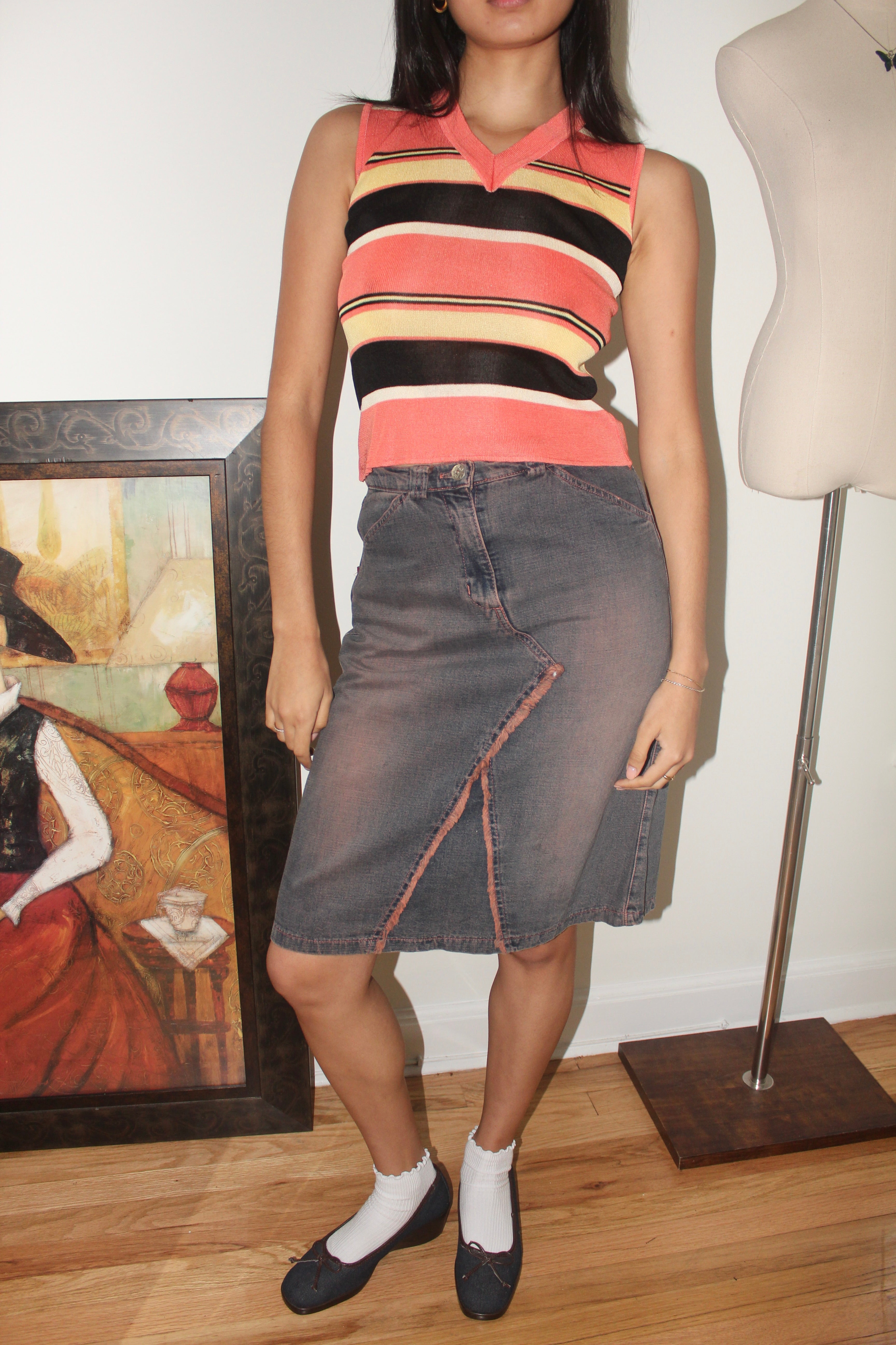 Vintage 90s Exposed Seam Denim Midi Skirt (S/M)