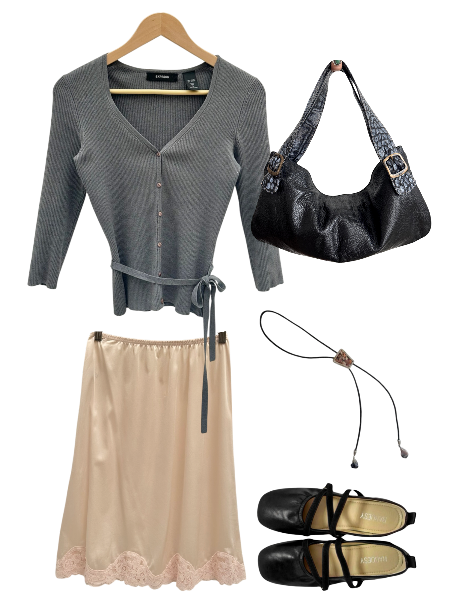 Vintage Y2K Grey Ribbed Wrap-Waist Cardigan (S)