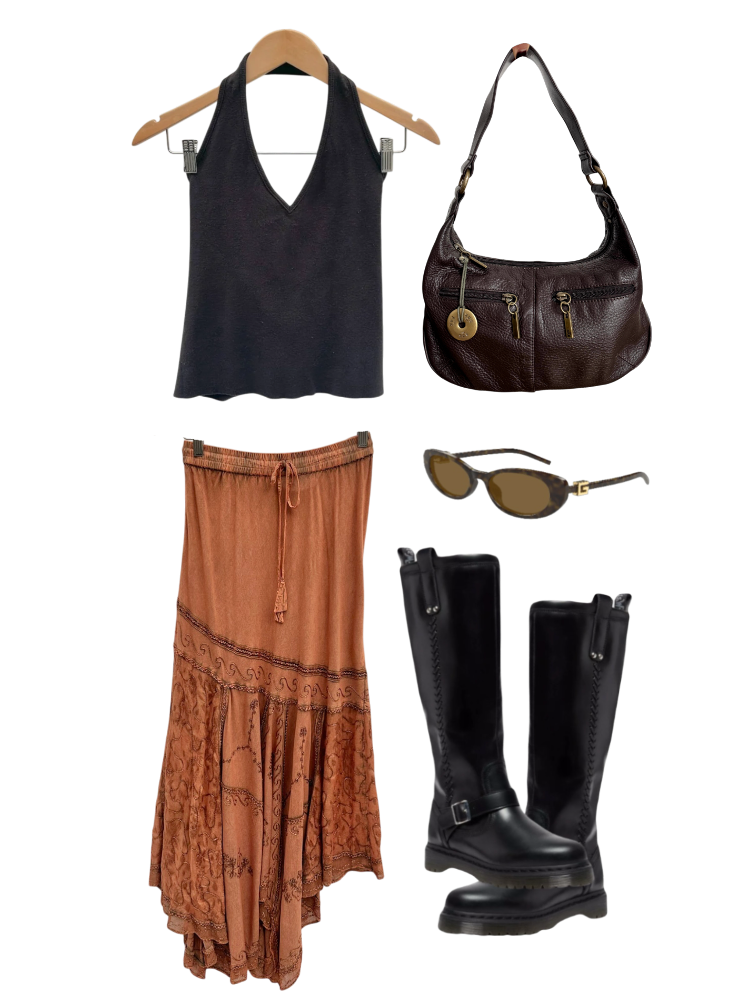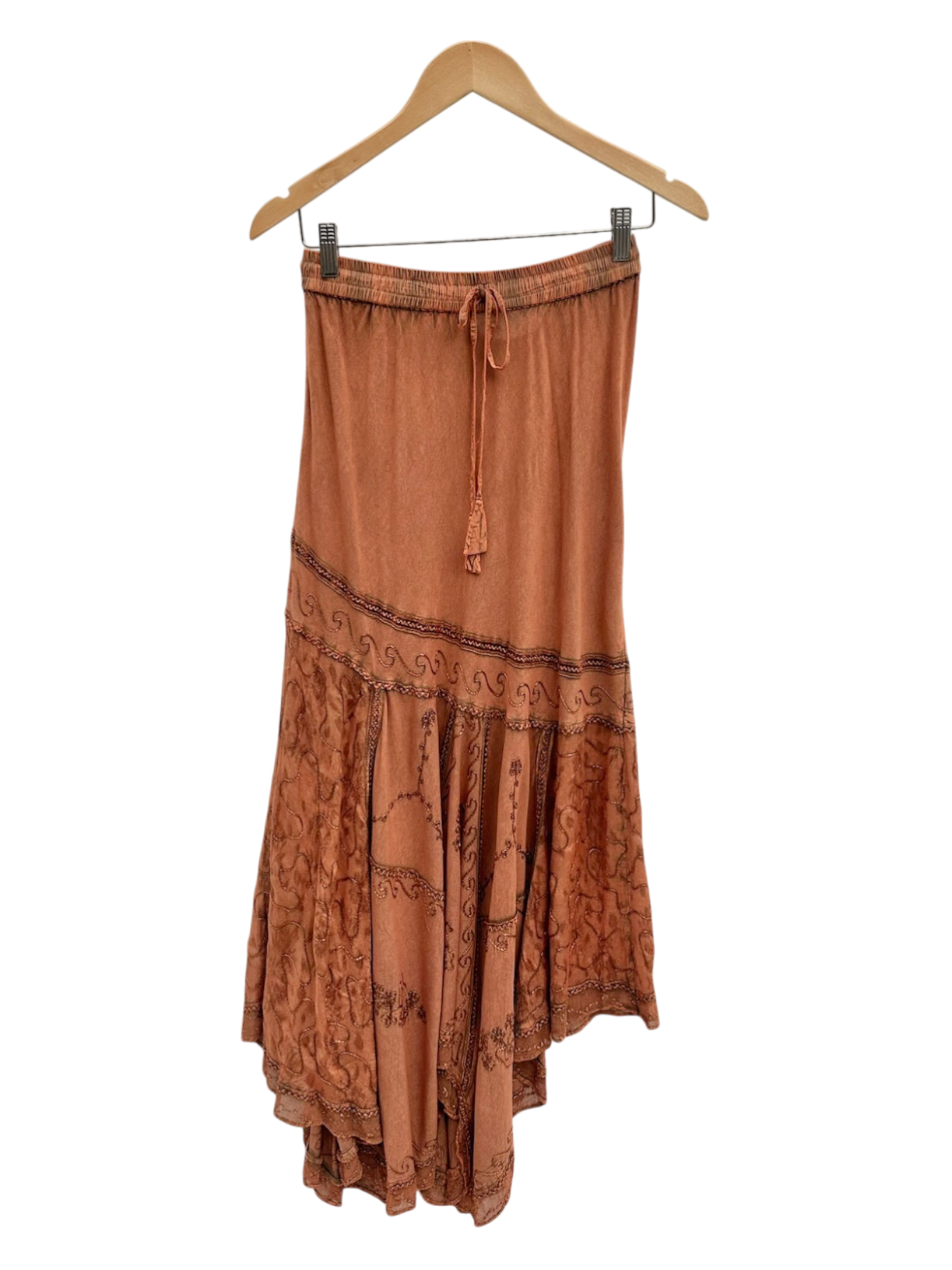Vintage Boho Embroidered Terracotta Drawstring Skirt (M)