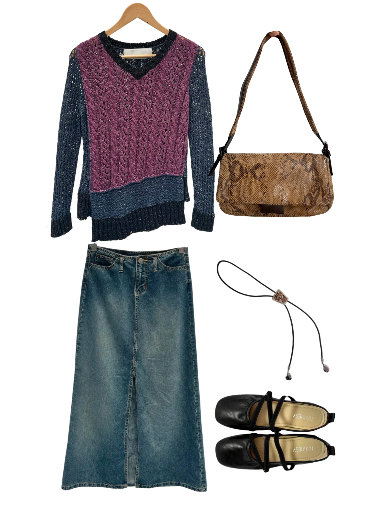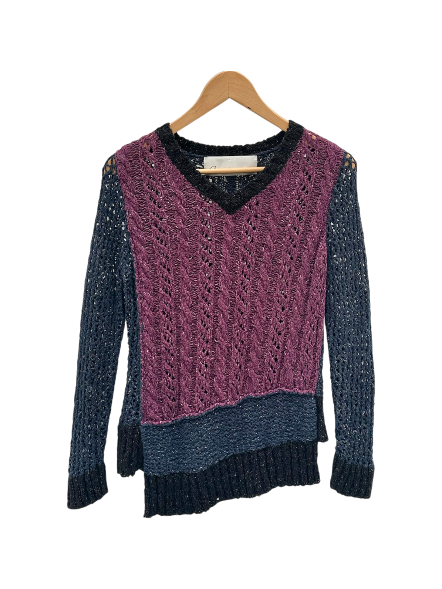 Vintage 2000s Patchwork Knit V-Neck Sweater (S/M)