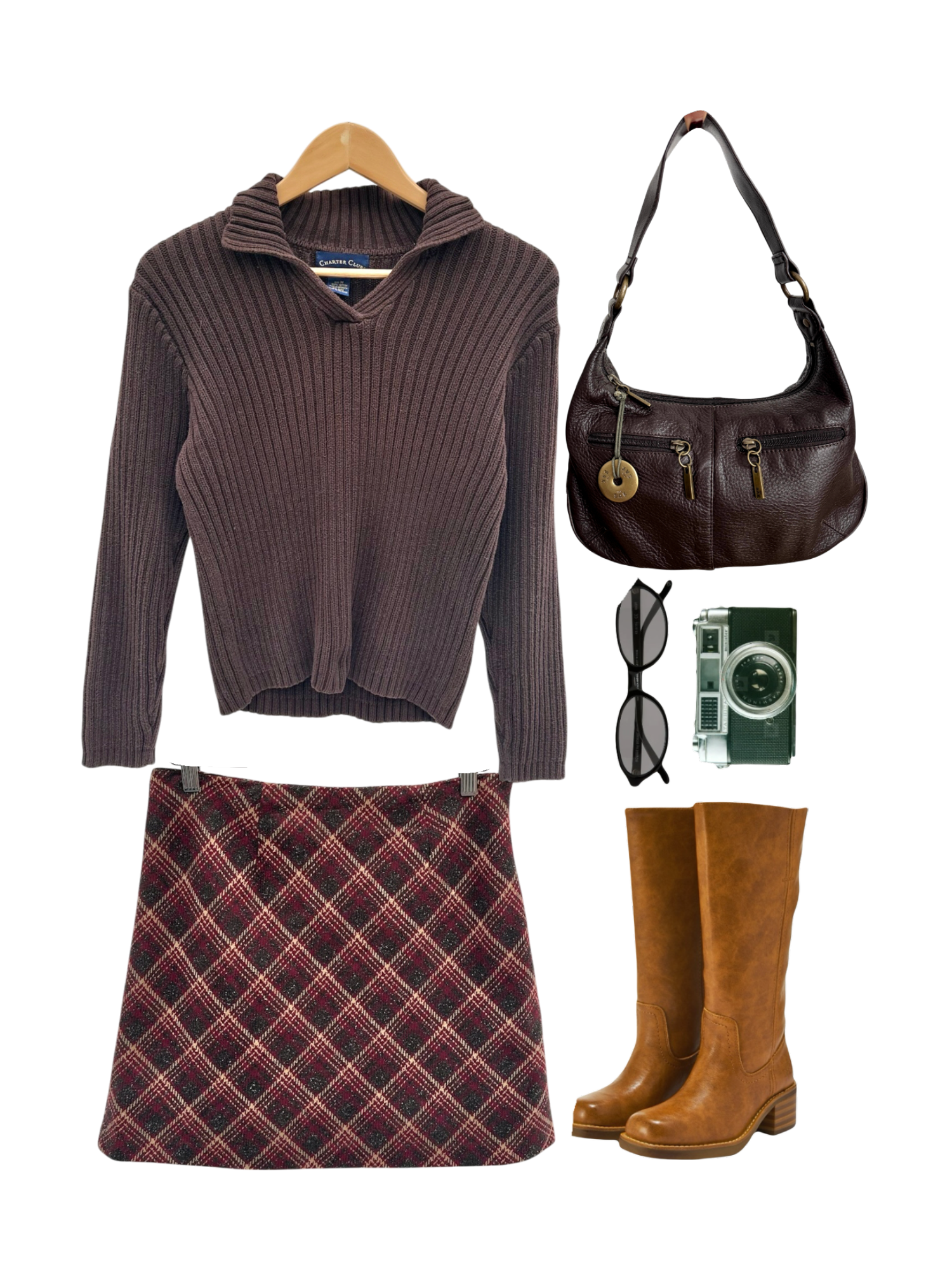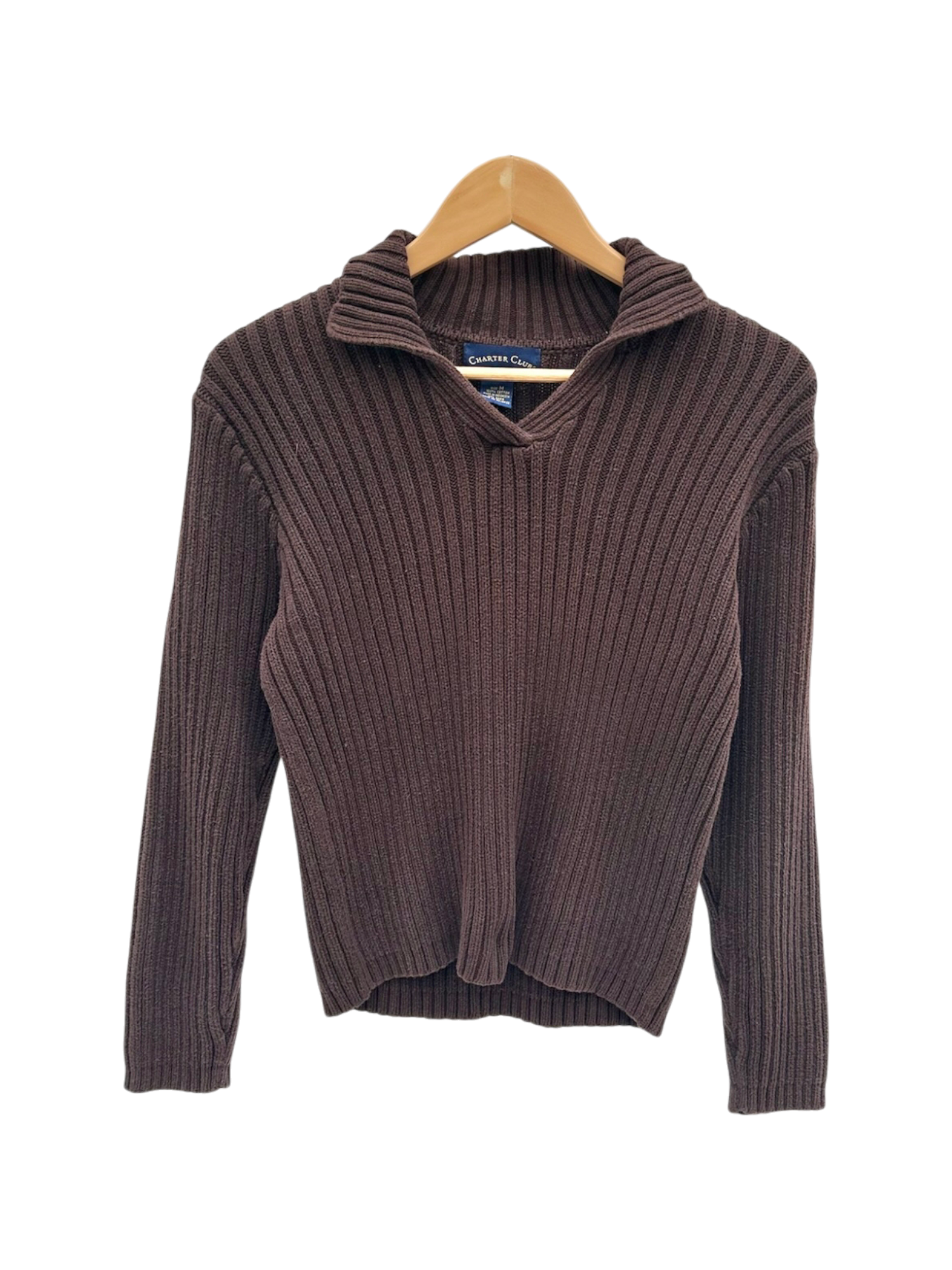 Vintage 90s Chocolate Cotton Ribbed Collar Sweater (M)