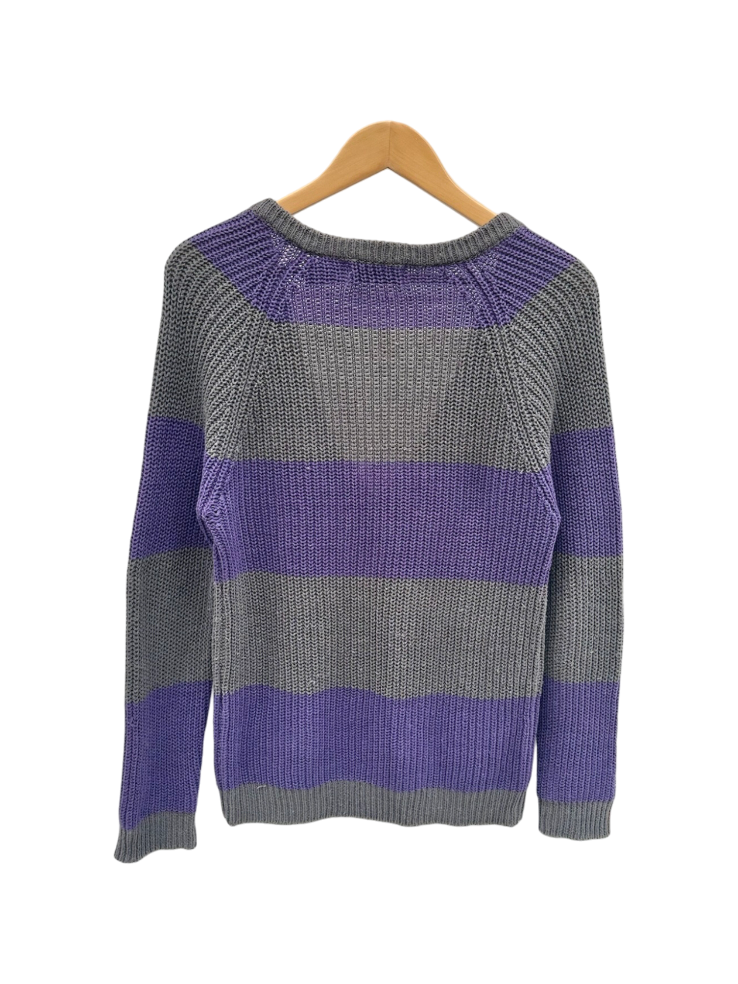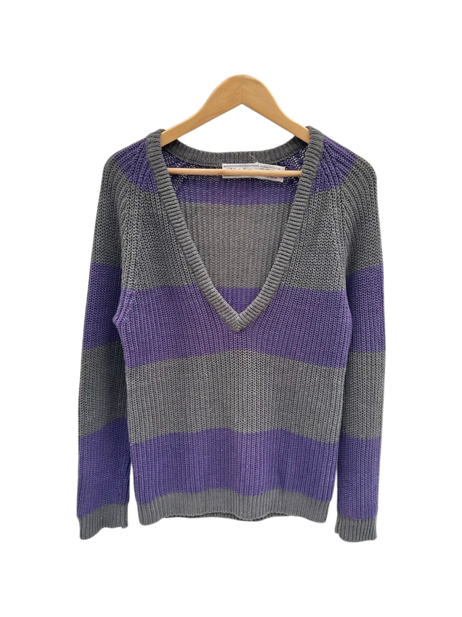 Vintage Purple & Grey Striped Deep V Sweater (M)
