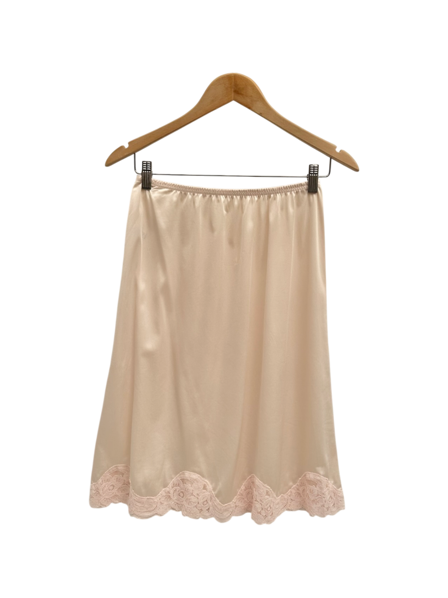 Vintage 80s Blush Satin Lace Trim Slip Skirt (S)