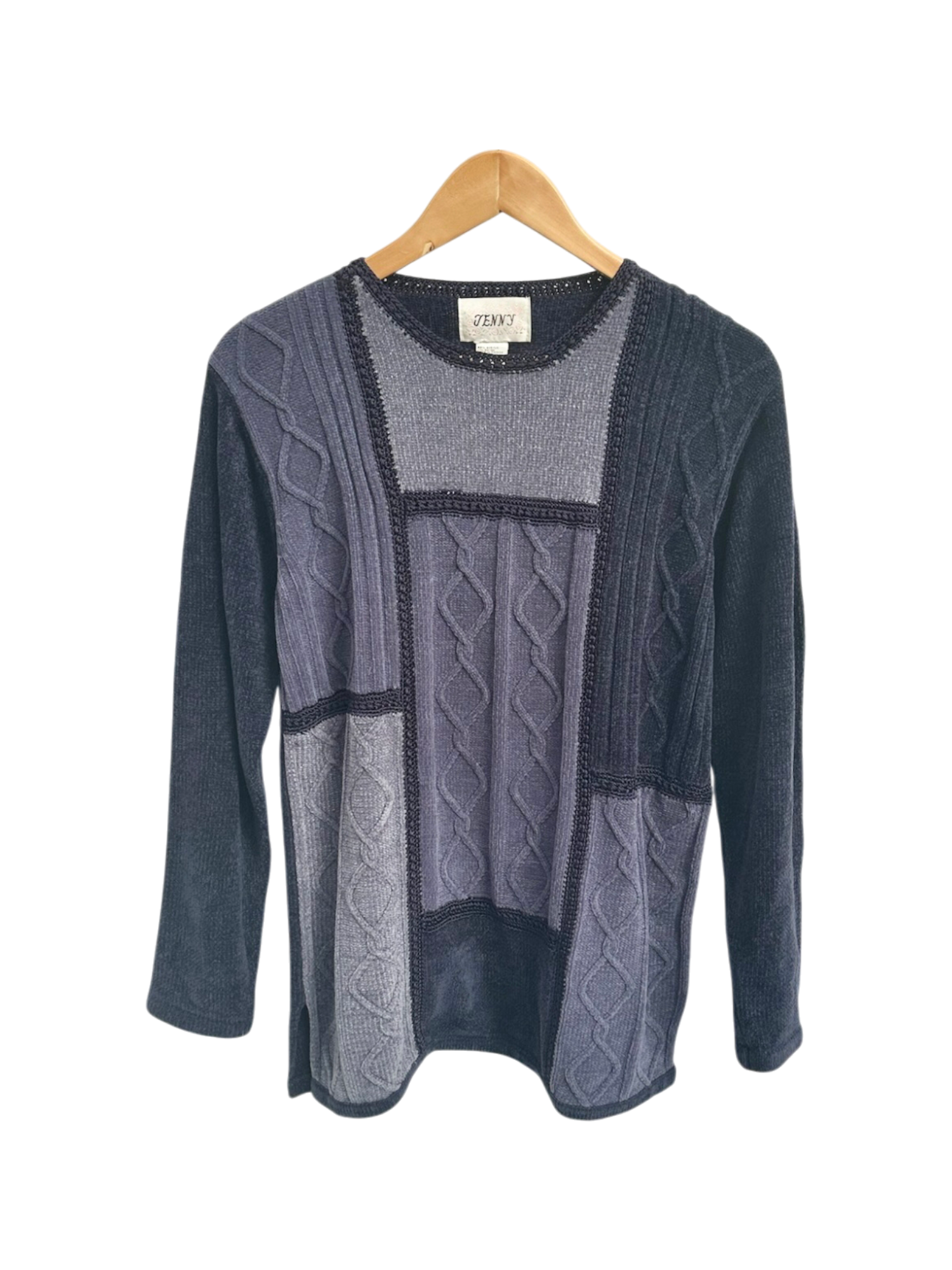 Vintage 90s Indigo Indie Patchwork Cable Knit (M)