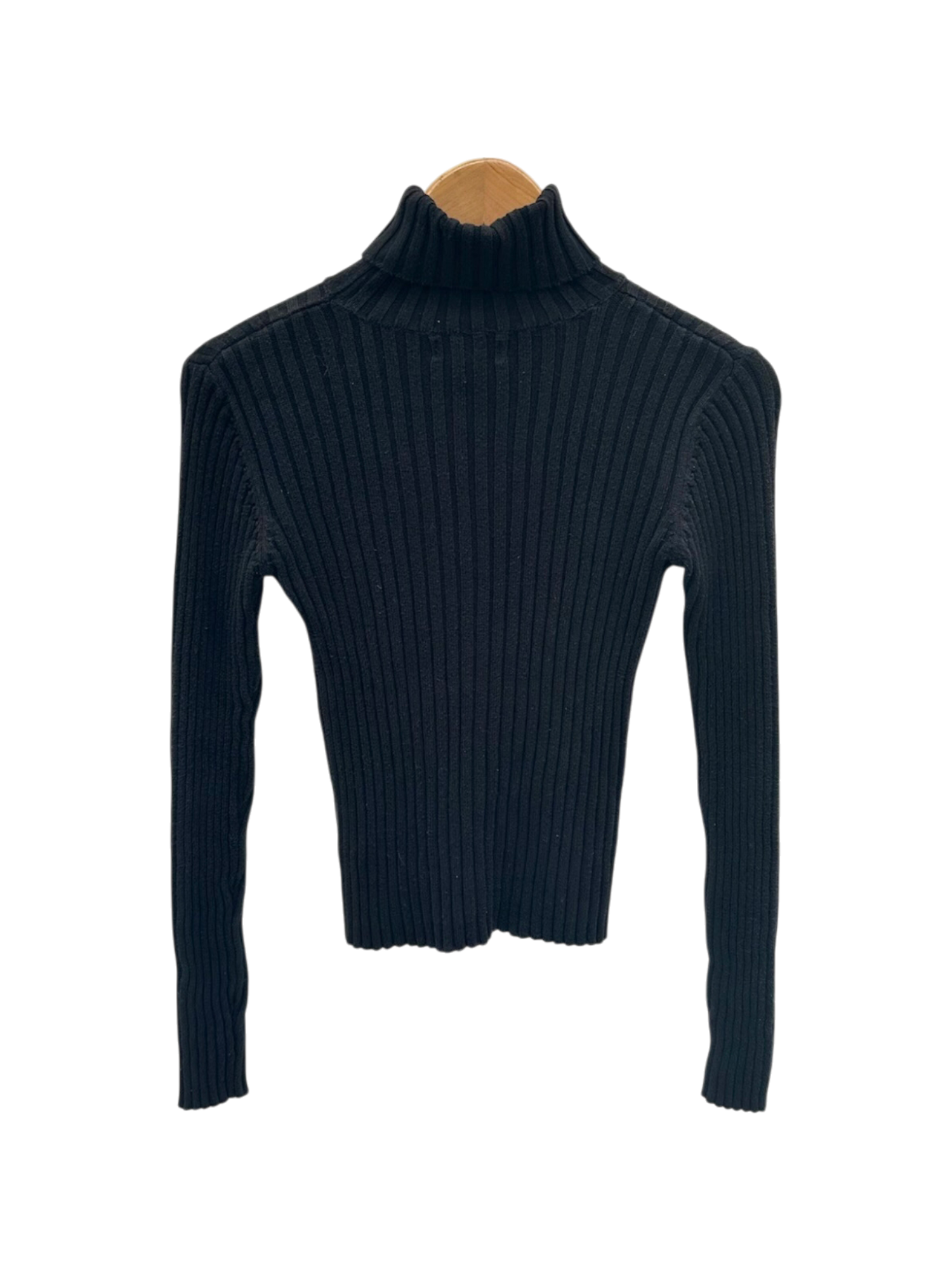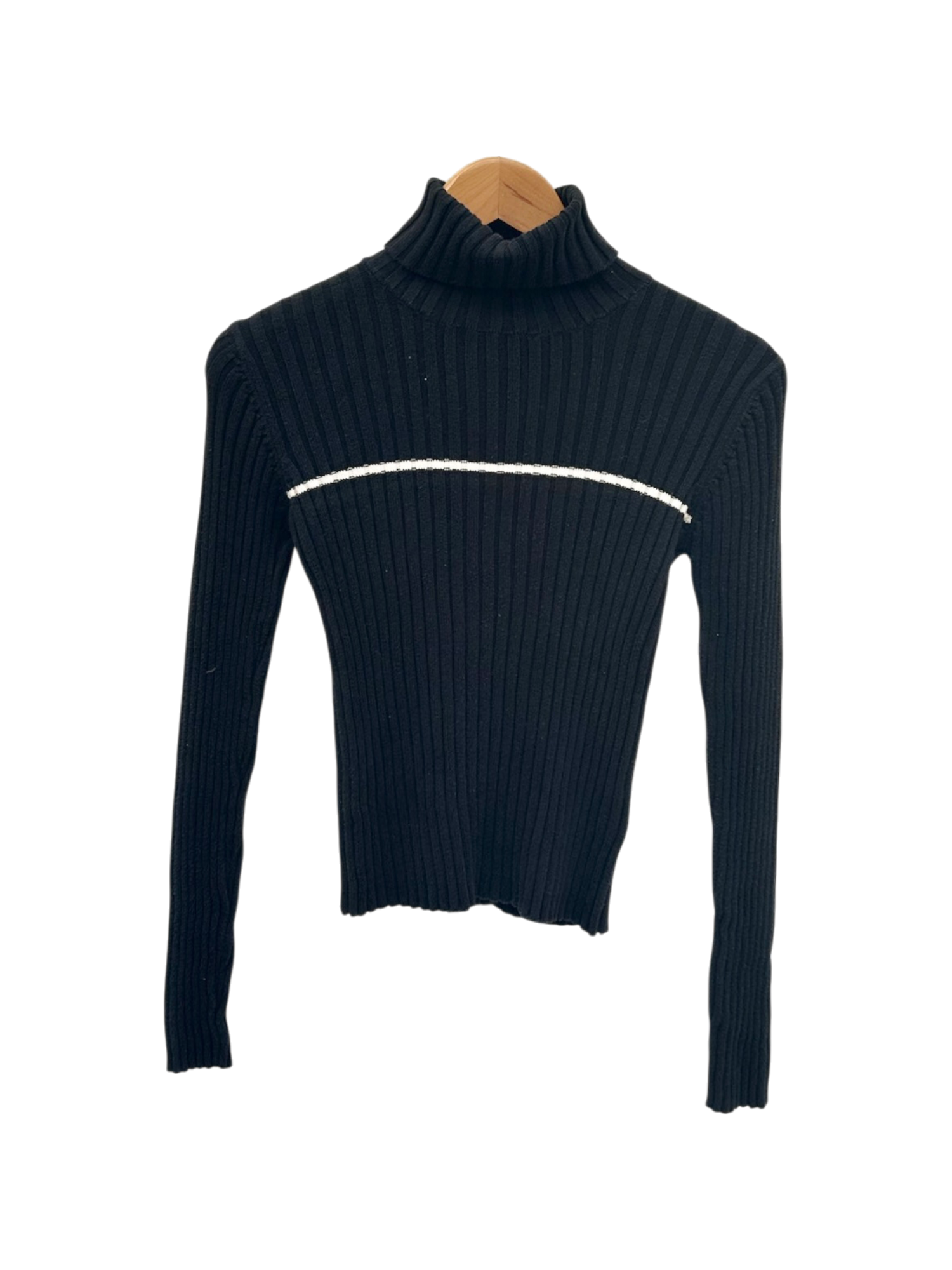 Vintage 90s Black Ribbed Turtleneck With Contrast Stripe (S)