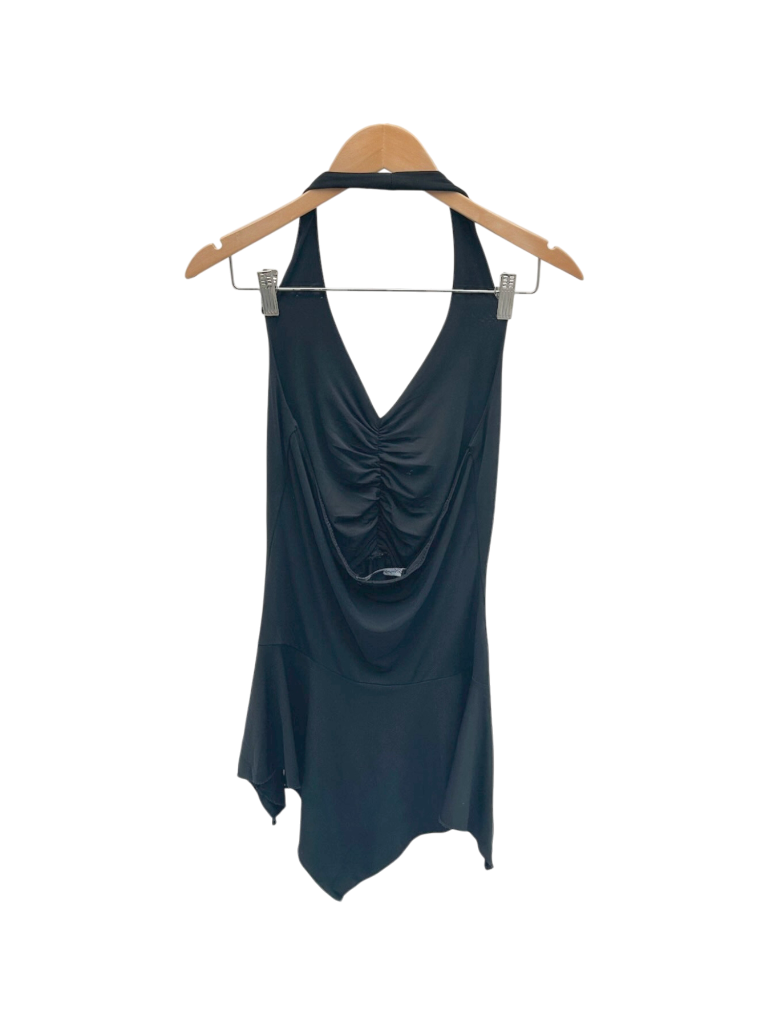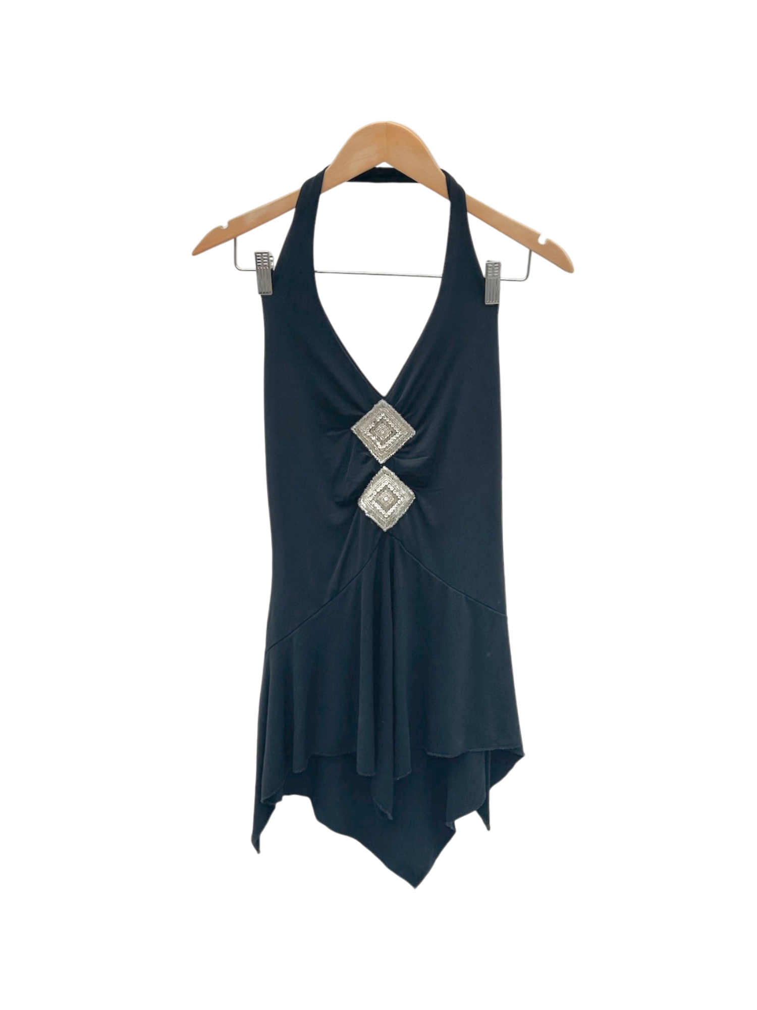 Vintage Y2K Black Embellished Handkerchief Halter Top (M)