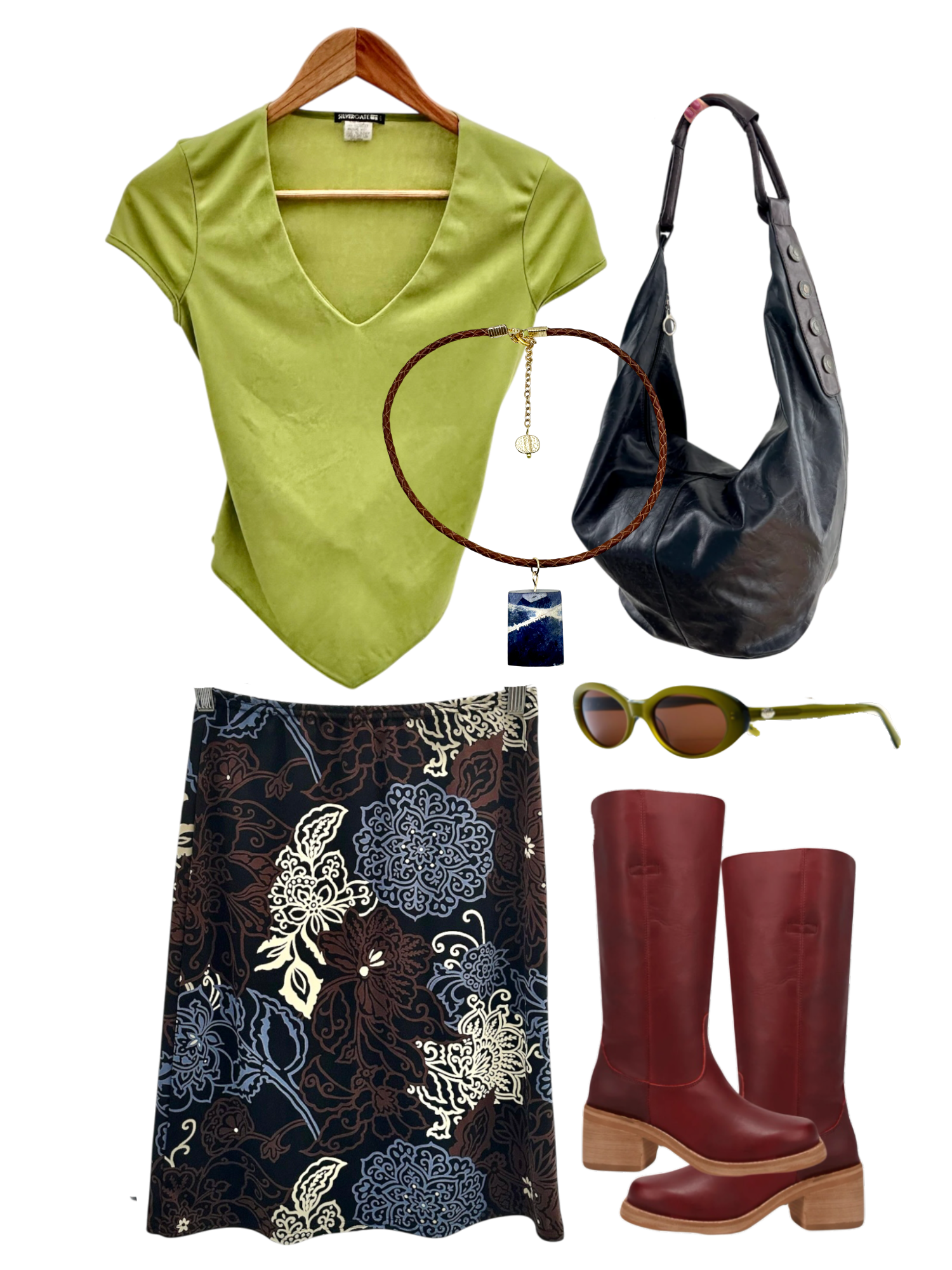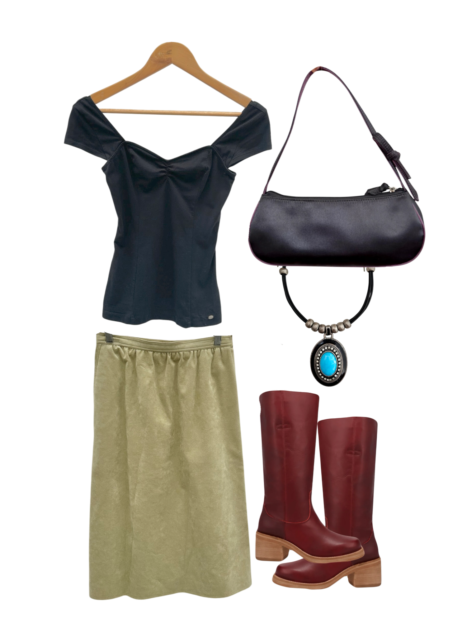 Vintage 90s Avocado Suede Midi Skirt (S)