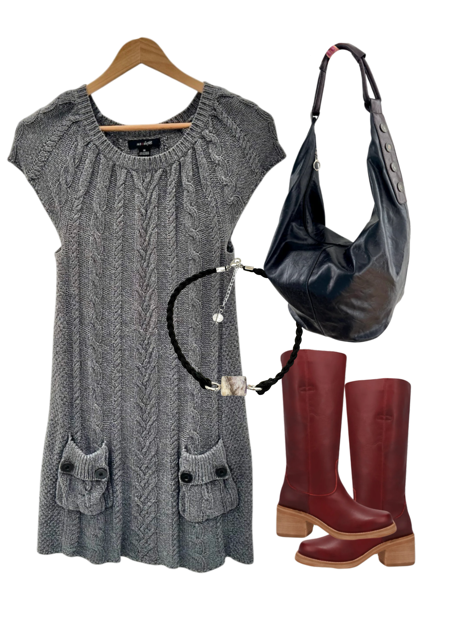 Vintage 90s Grey Cable Knit Keepsake Dress (S)