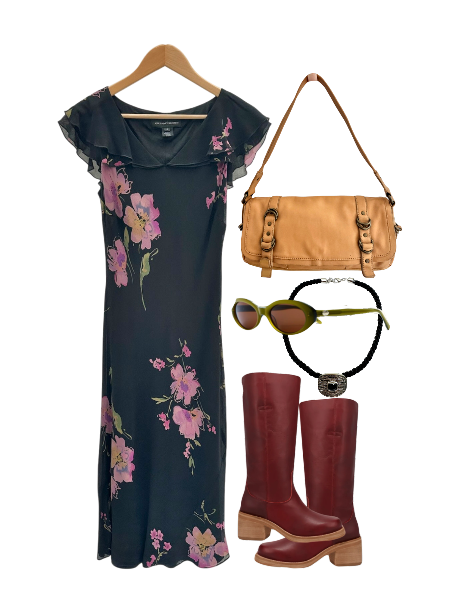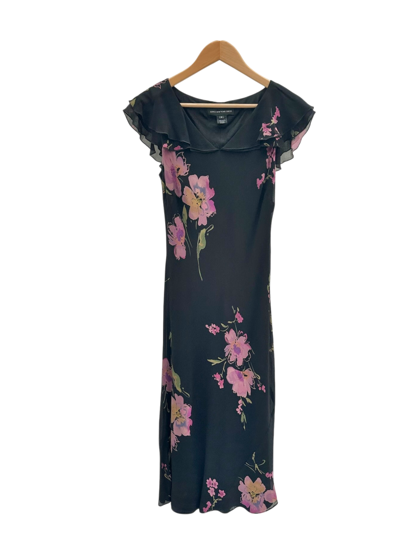 Vintage Midnight Blossom Slip Silk Dress (S)