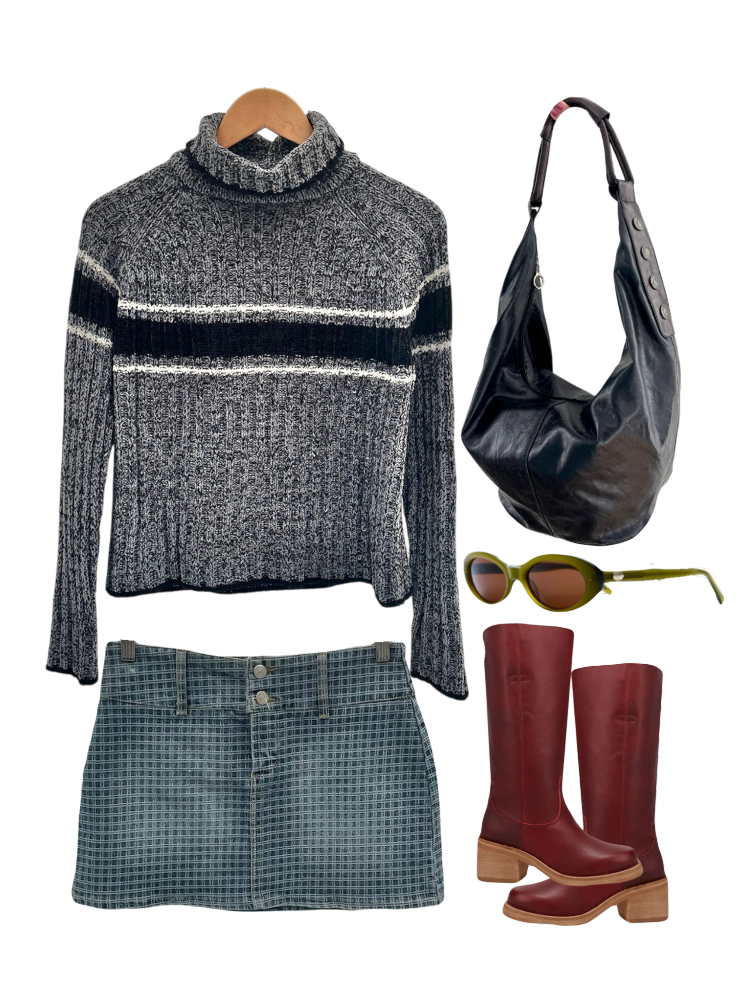 Vintage 90s Charcoal Stripe Turtleneck Knit (M/L)