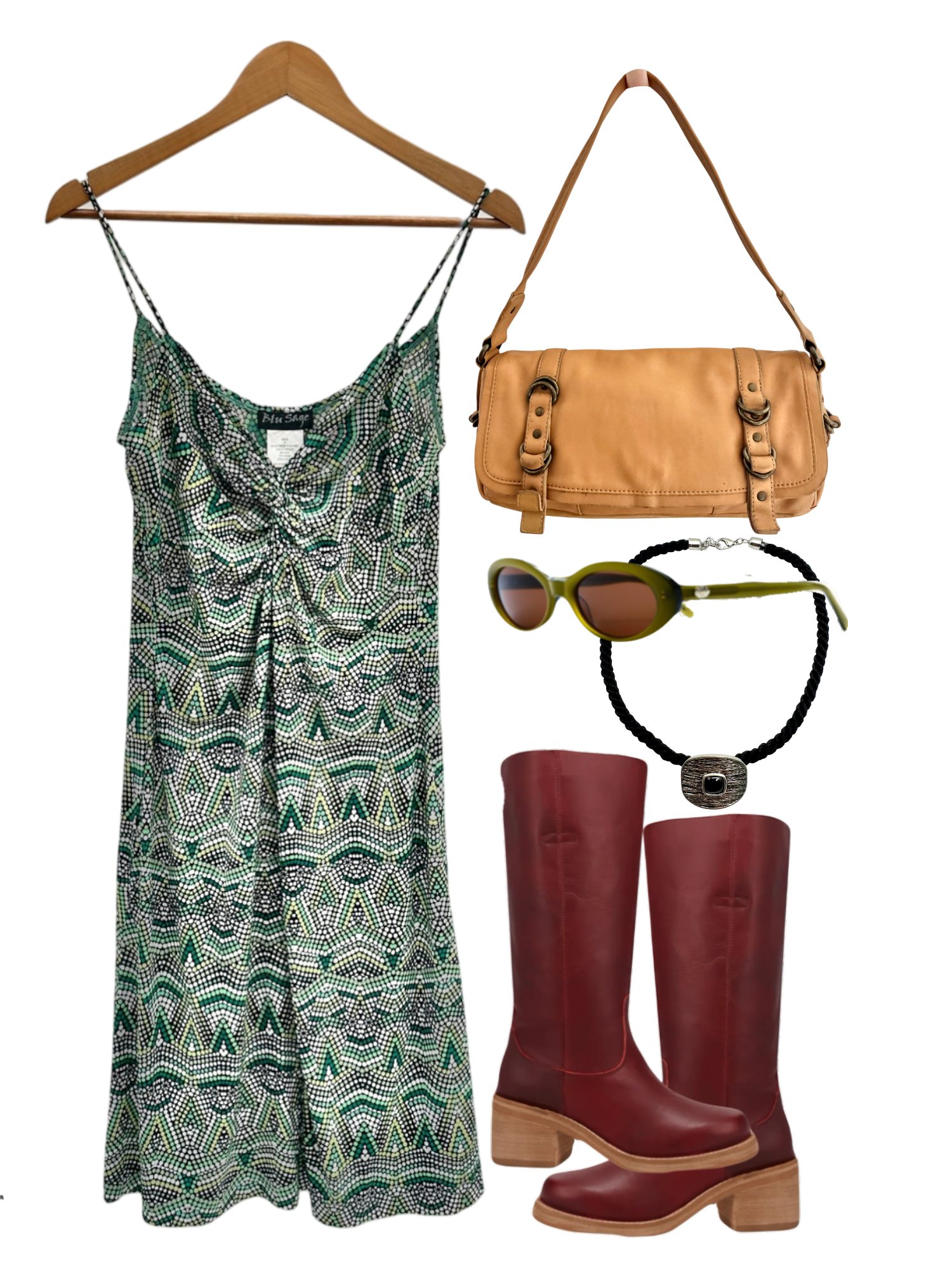 Vintage 90s Green Mosaic Drift Slip Dress (M)