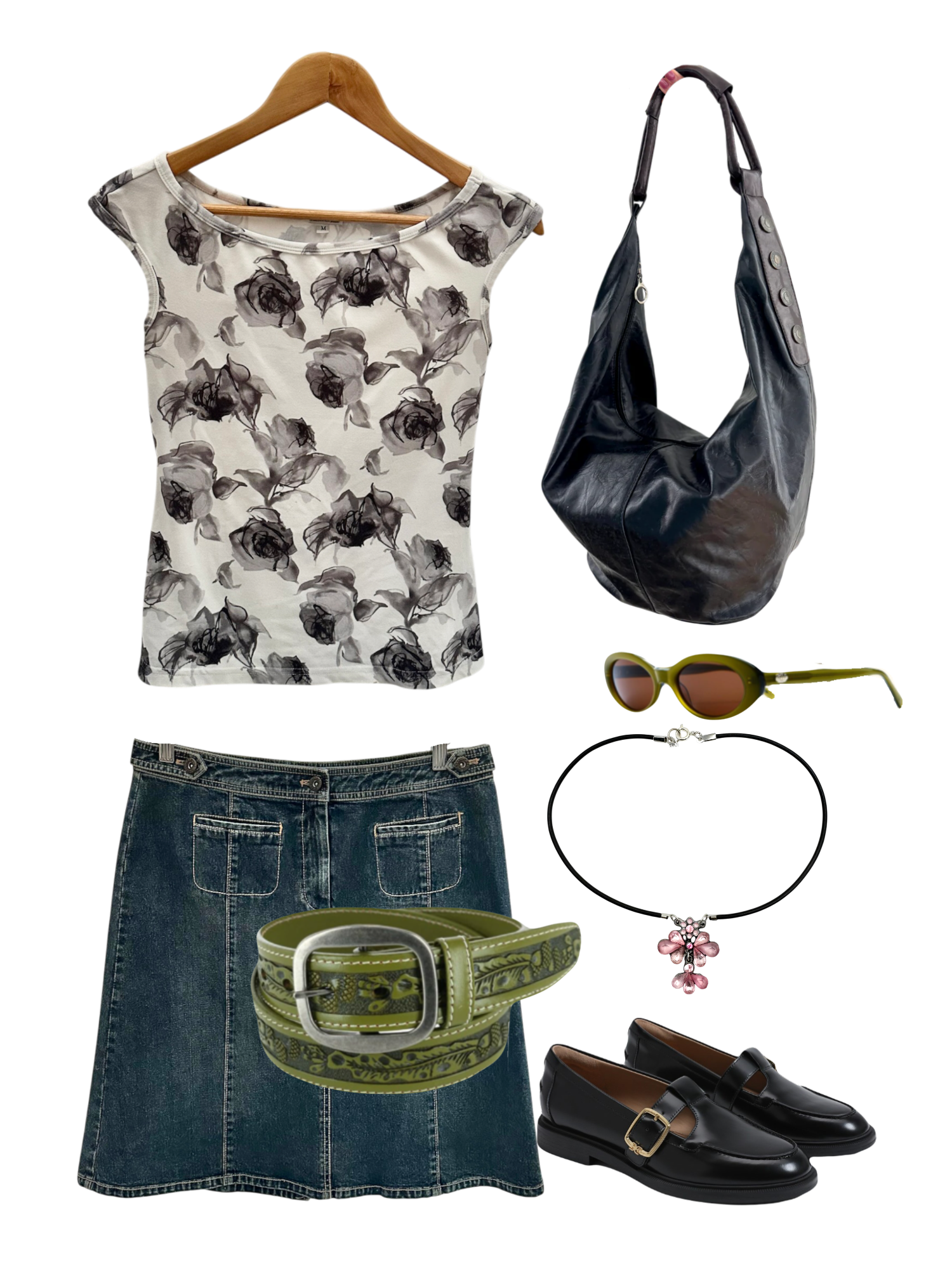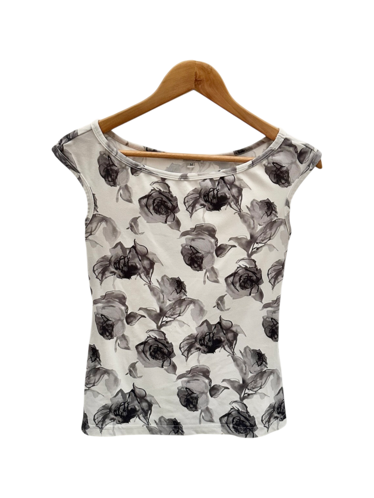 Vintage 90s Grey Rose Mesh Top (M)