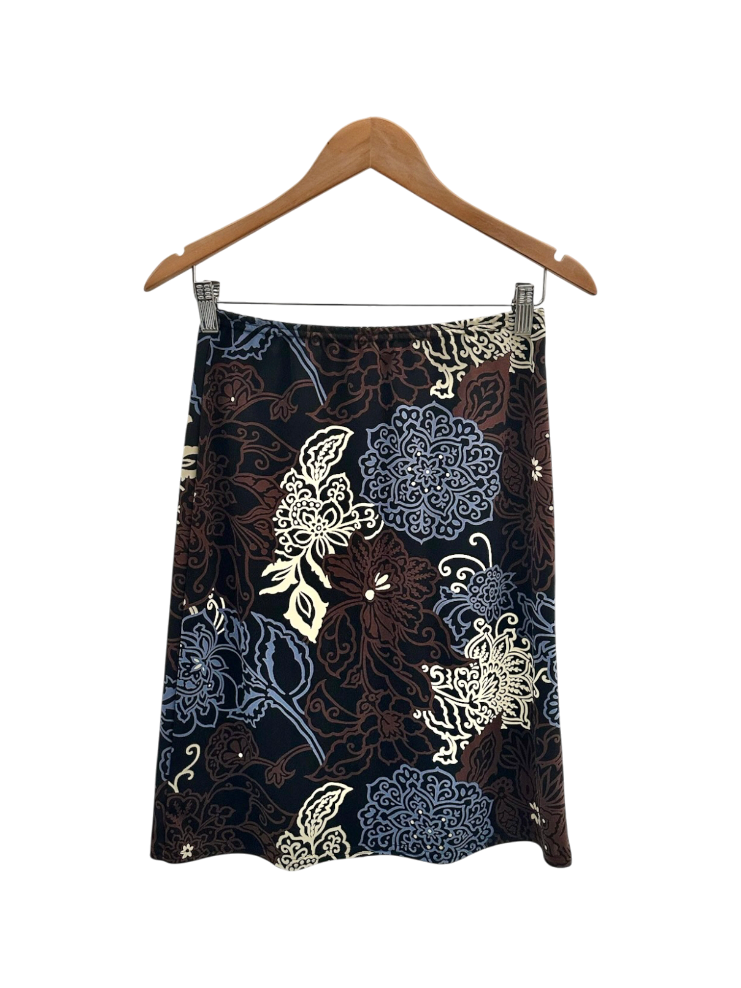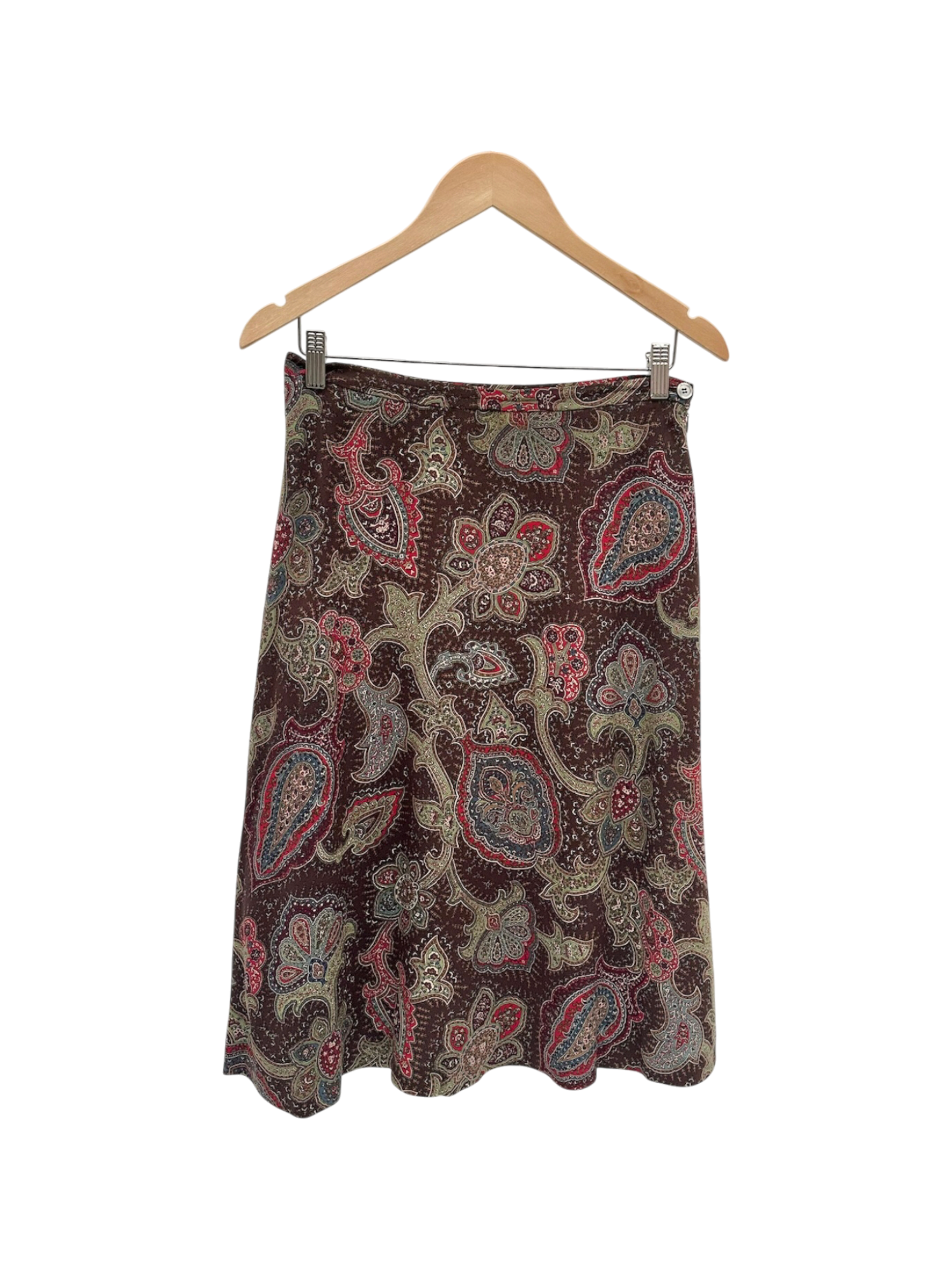 Vintage Y2K Paisley Floral Silk Midi Skirt (M)