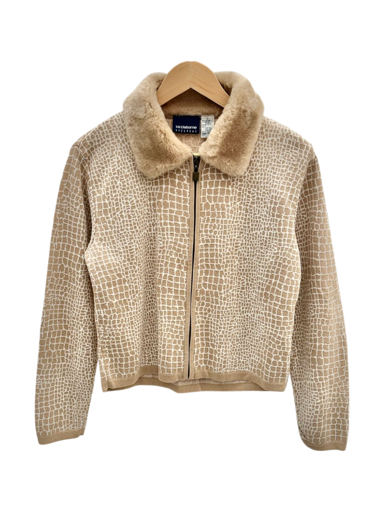 Vintage 90s Soft Camel Fur-Collar Knit (S/M)