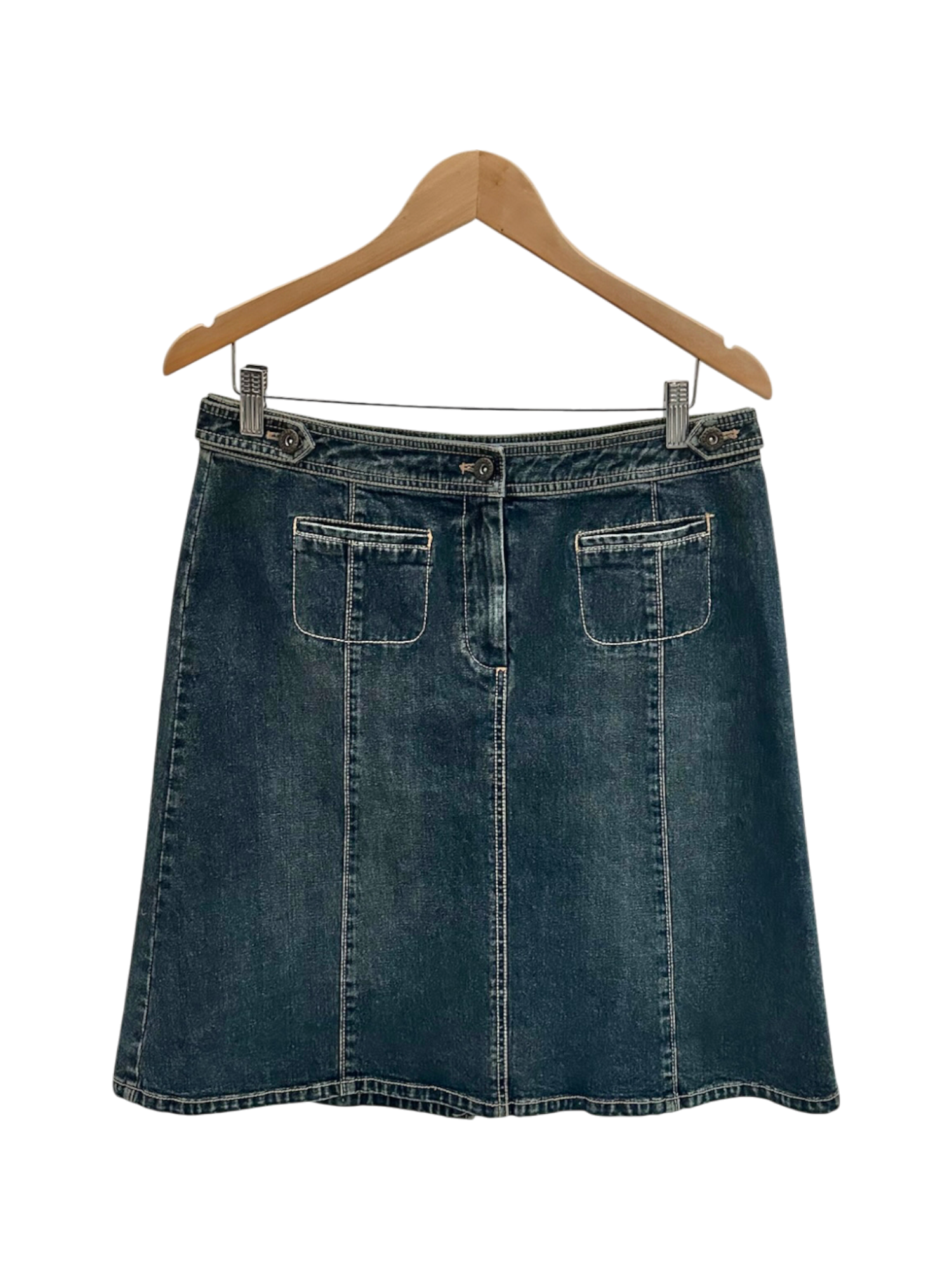 Vintage 90s Pocket Downtown Blue Jean Midi Skirt (M)