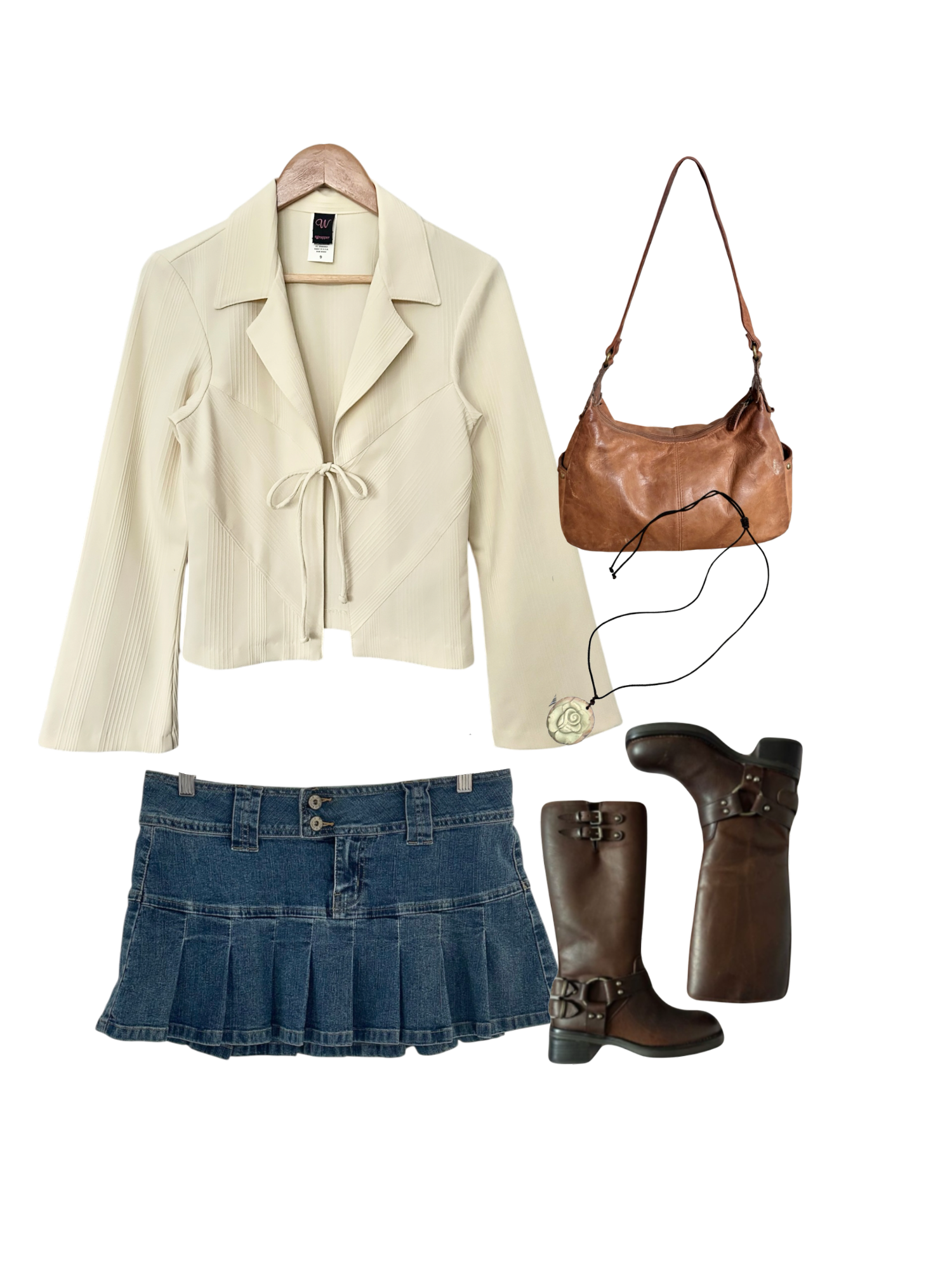 Vintage 90s Cream Textured Tie Blazer Top (S/M)