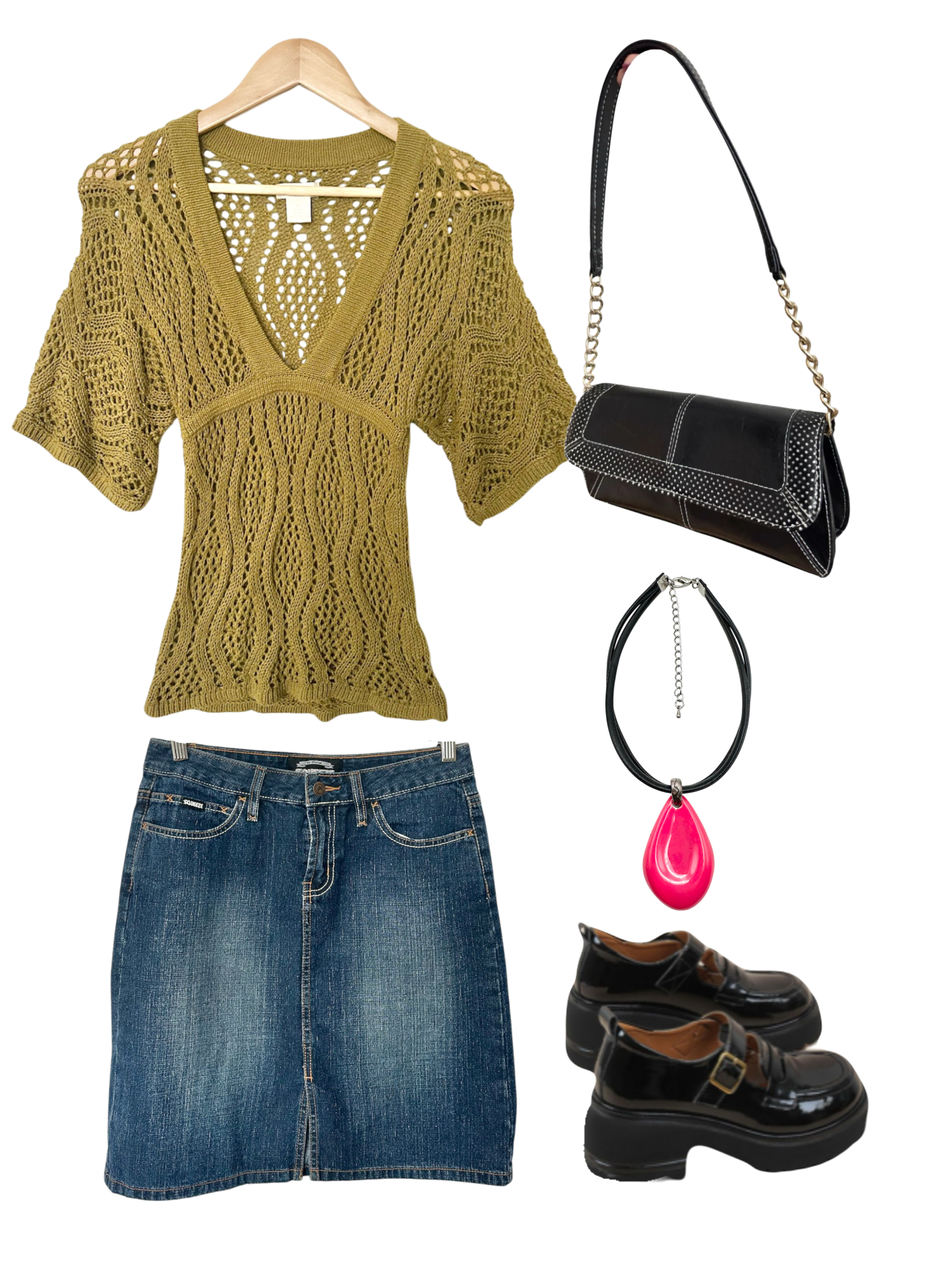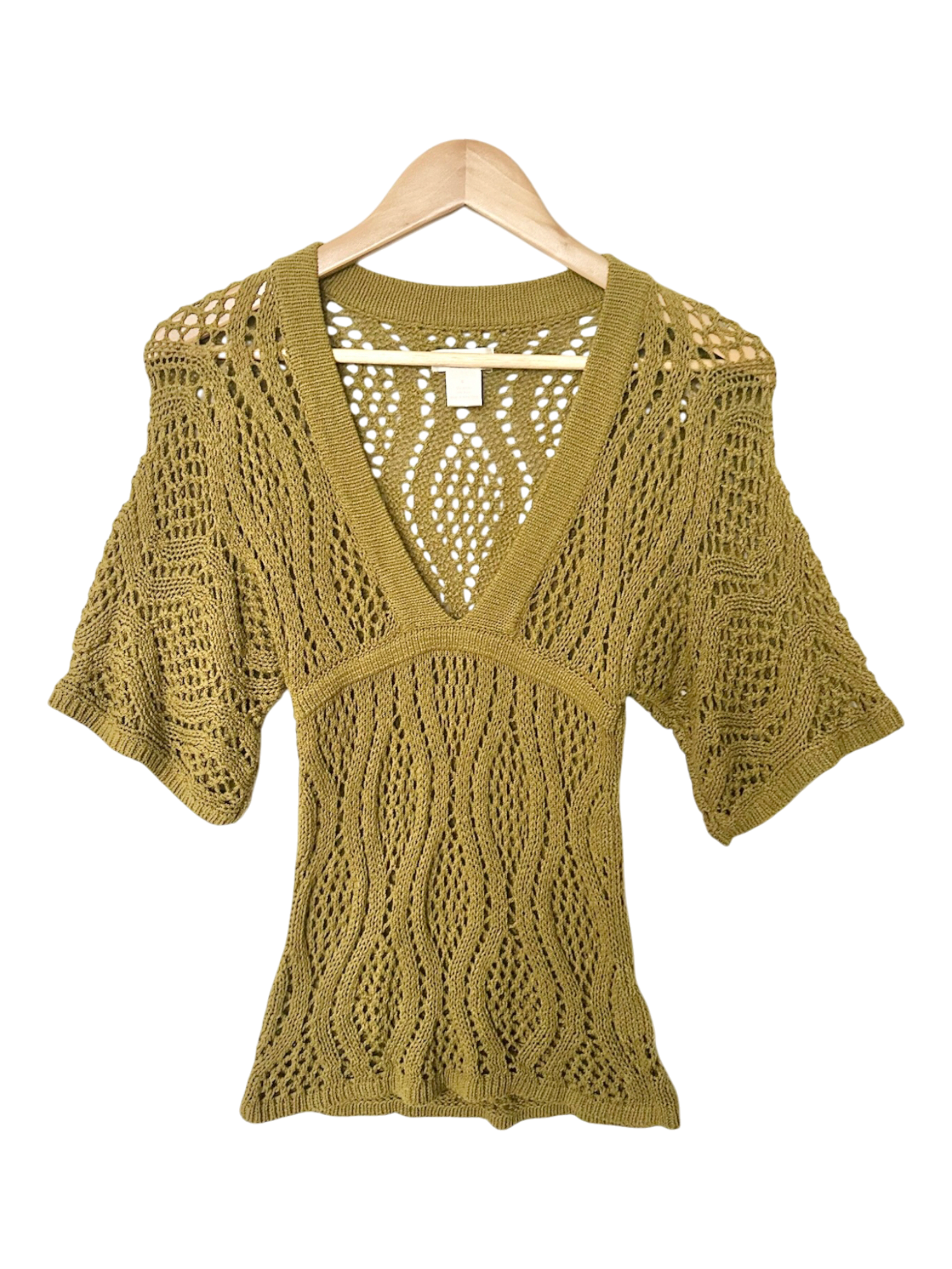 Vintage Olive Boho Open-Knit V-Neck Top (S)