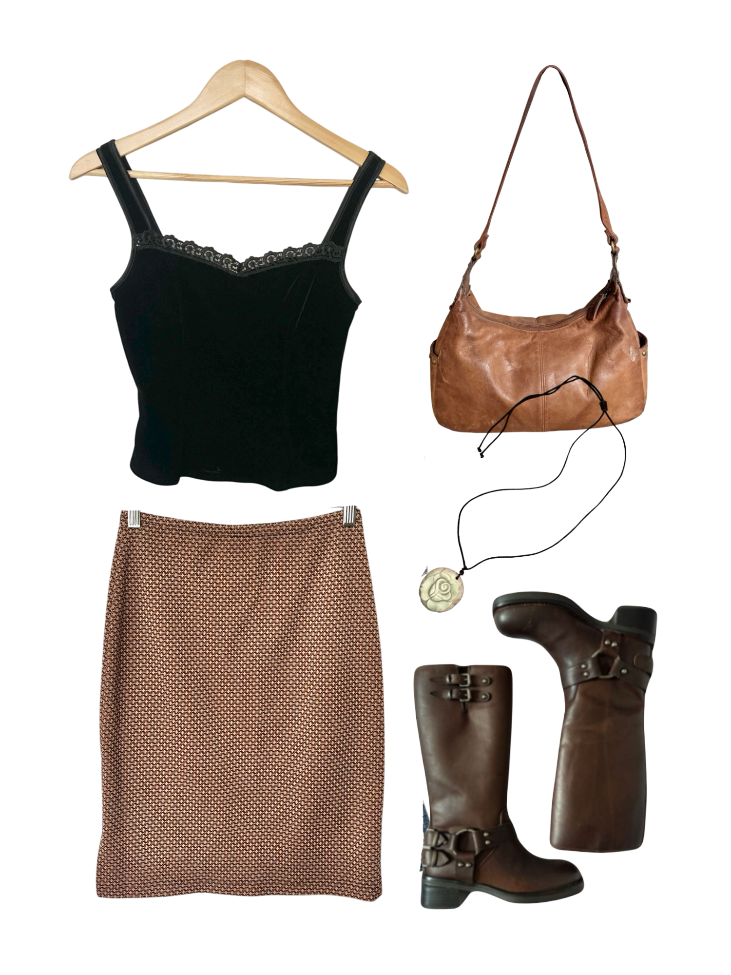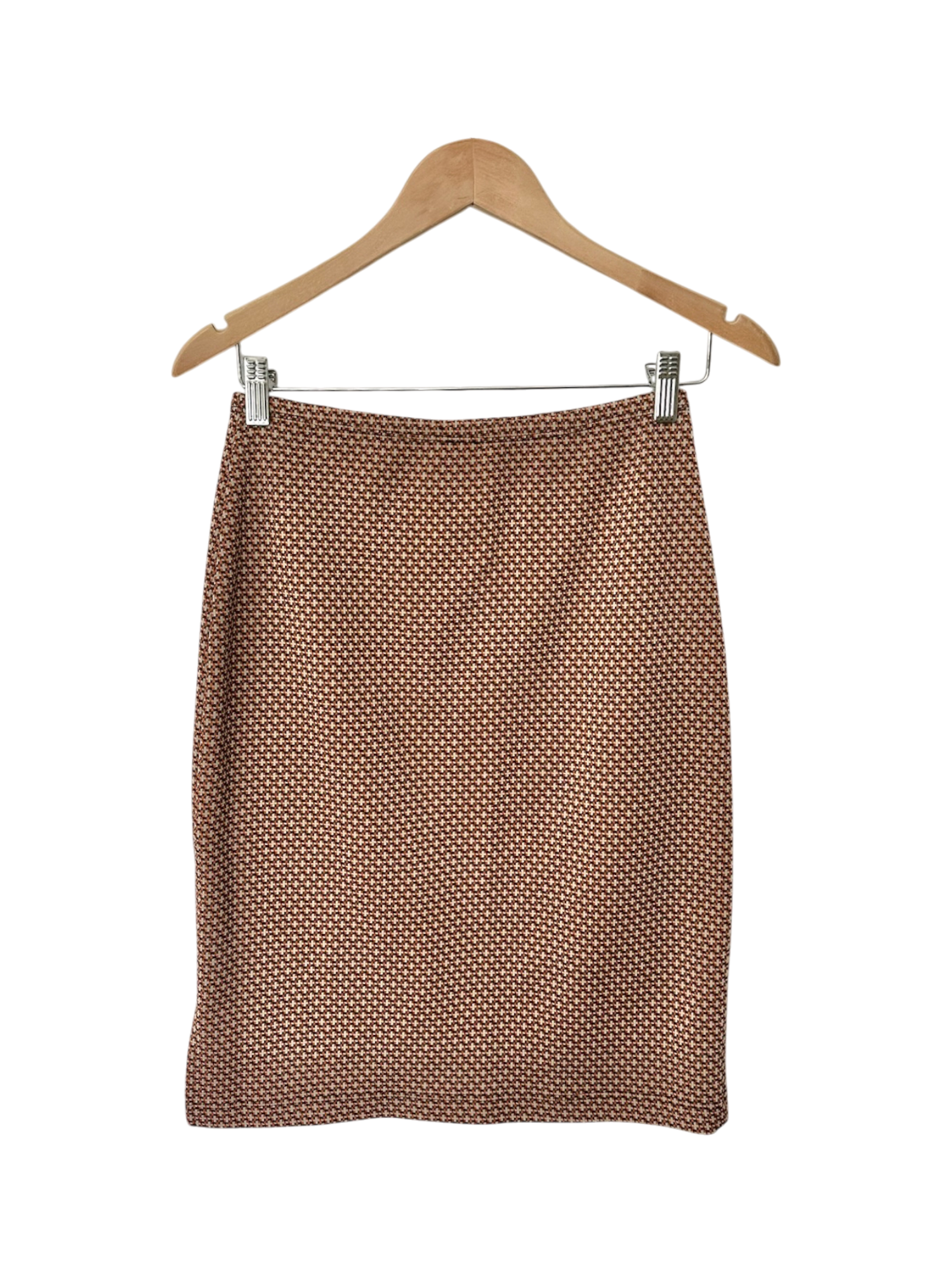 Vintage 80s Brown Micro-Print Midi Skirt (S/M)