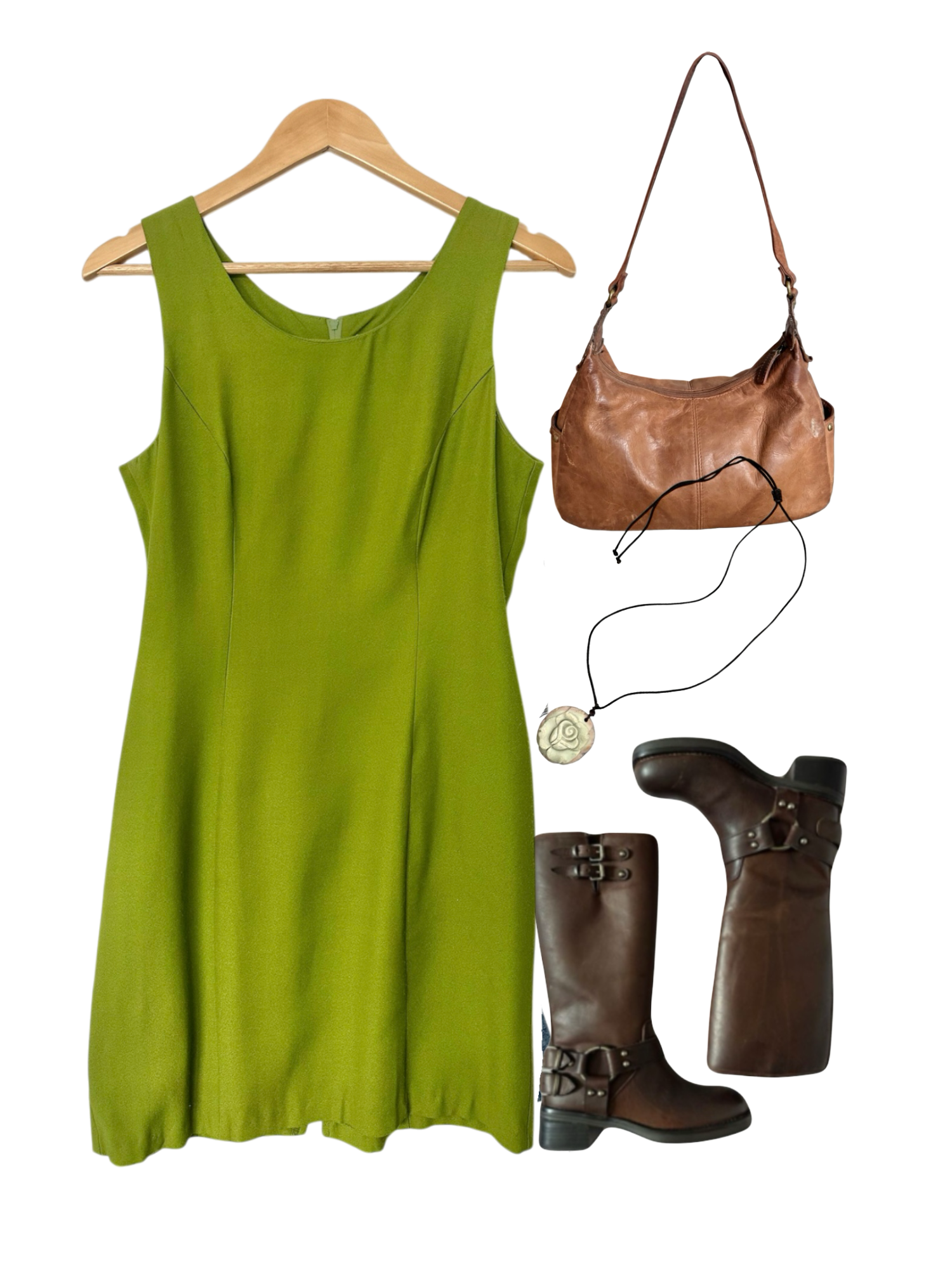 Vintage 90s Chartreuse Shift Midi Dress (M)