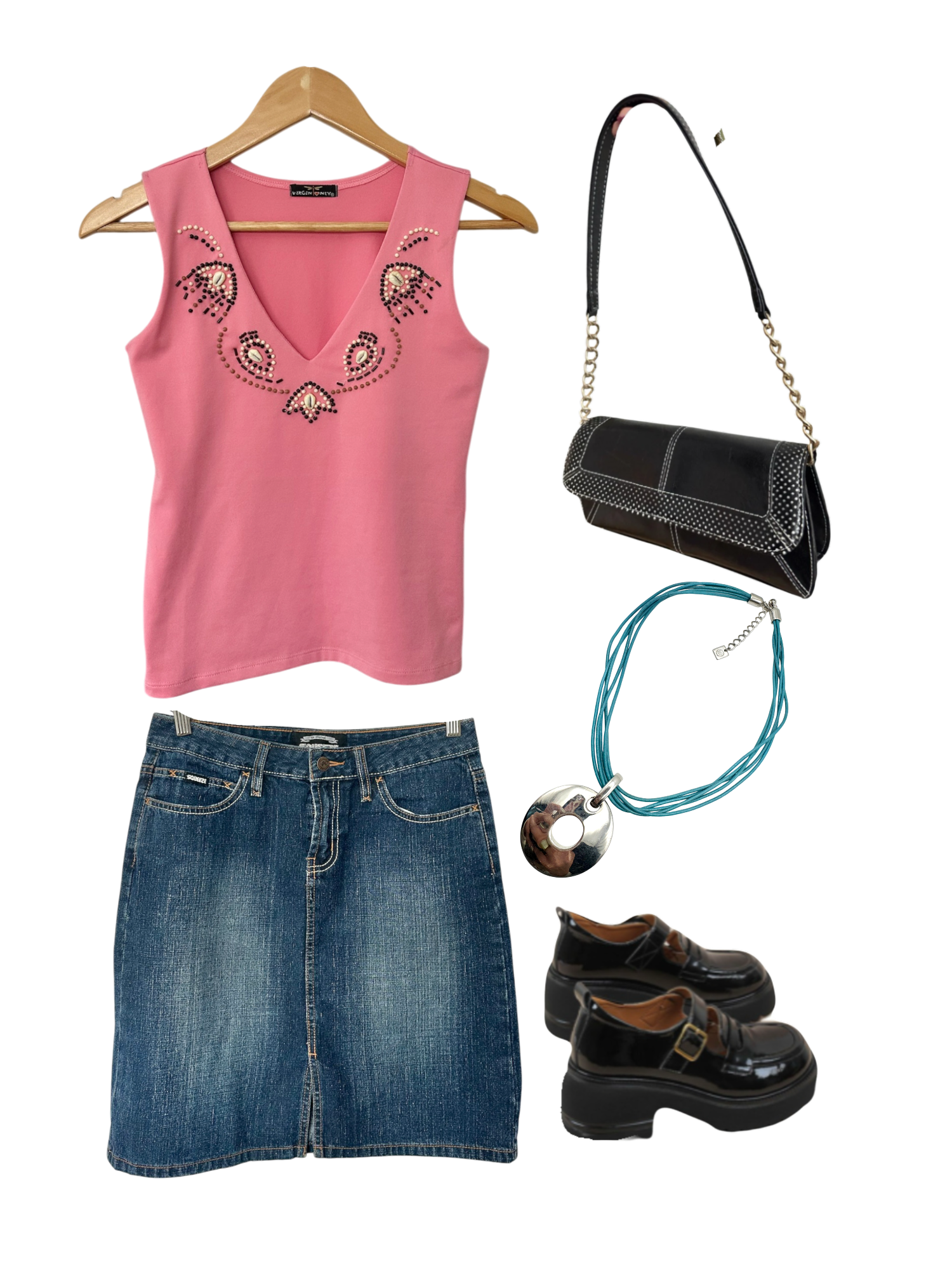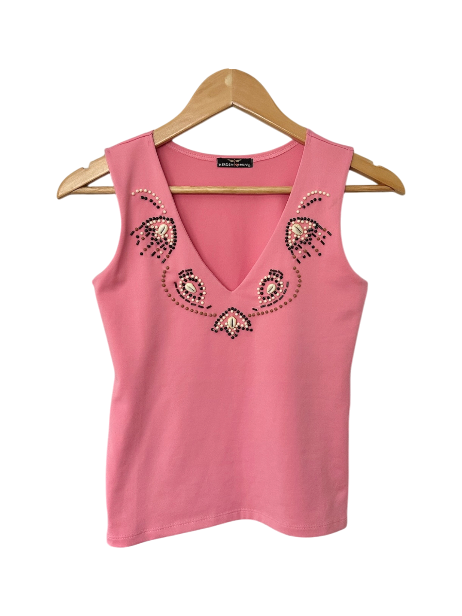 Vintage 90s Dainty Beaded V Neck Top (S)