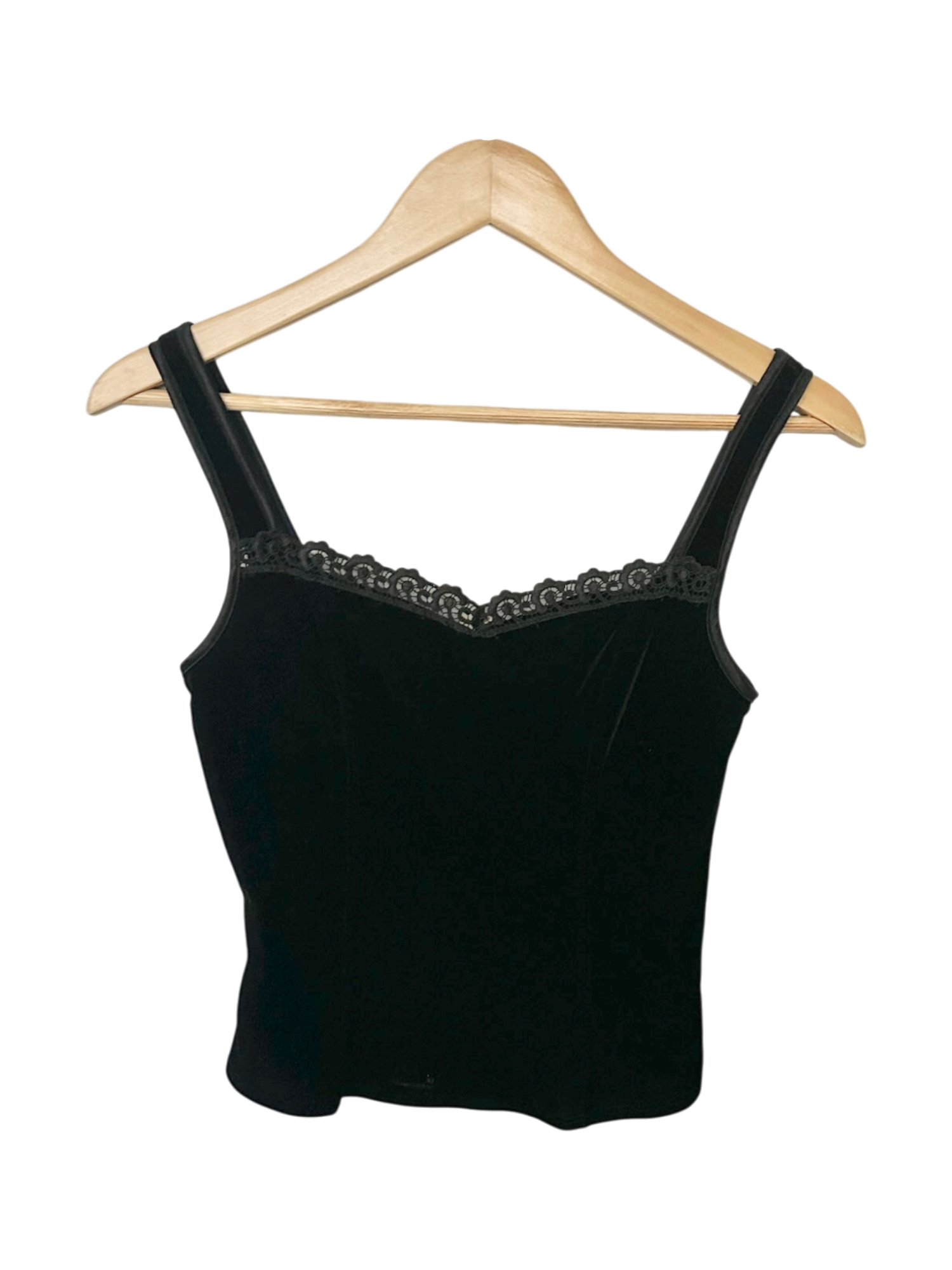 Vintage 90s Velvet Black Lace-Trim Camisole (S)