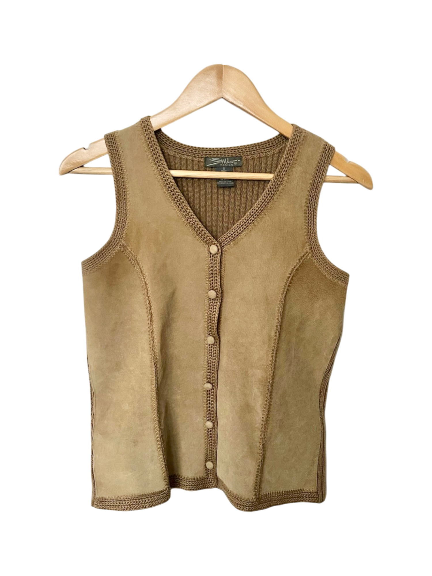 Vintage 90s Retro Suede Button-Front Vest (S/M)