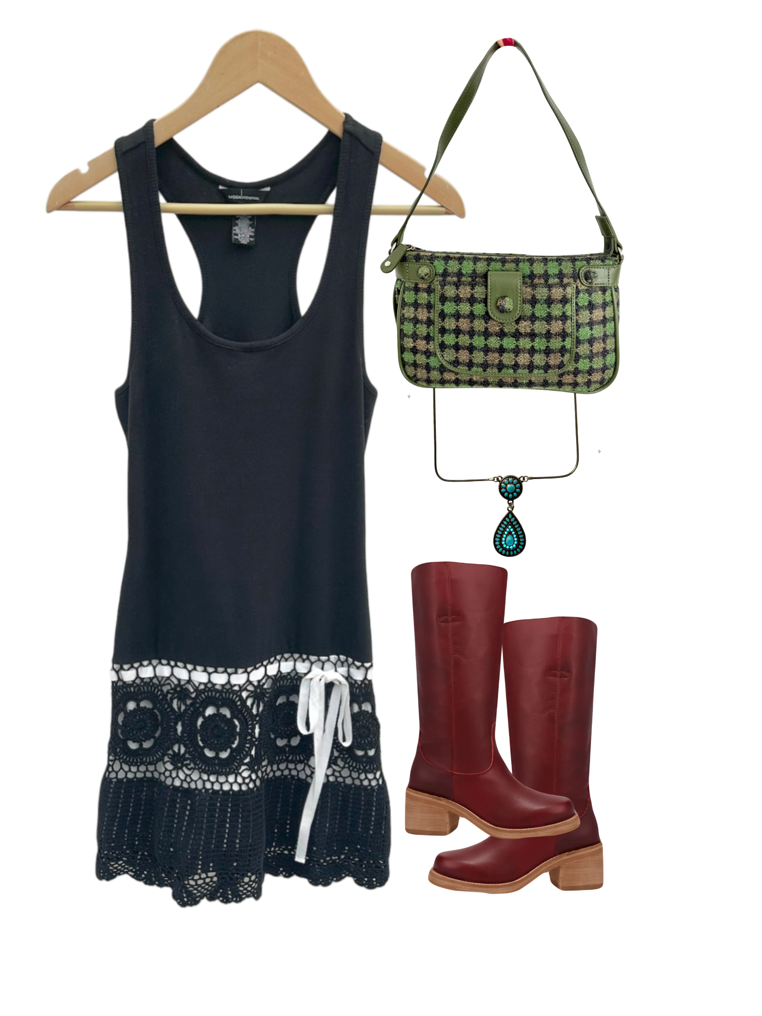 Vintage 90s Drop Waist Crochet Midi Dress (S)