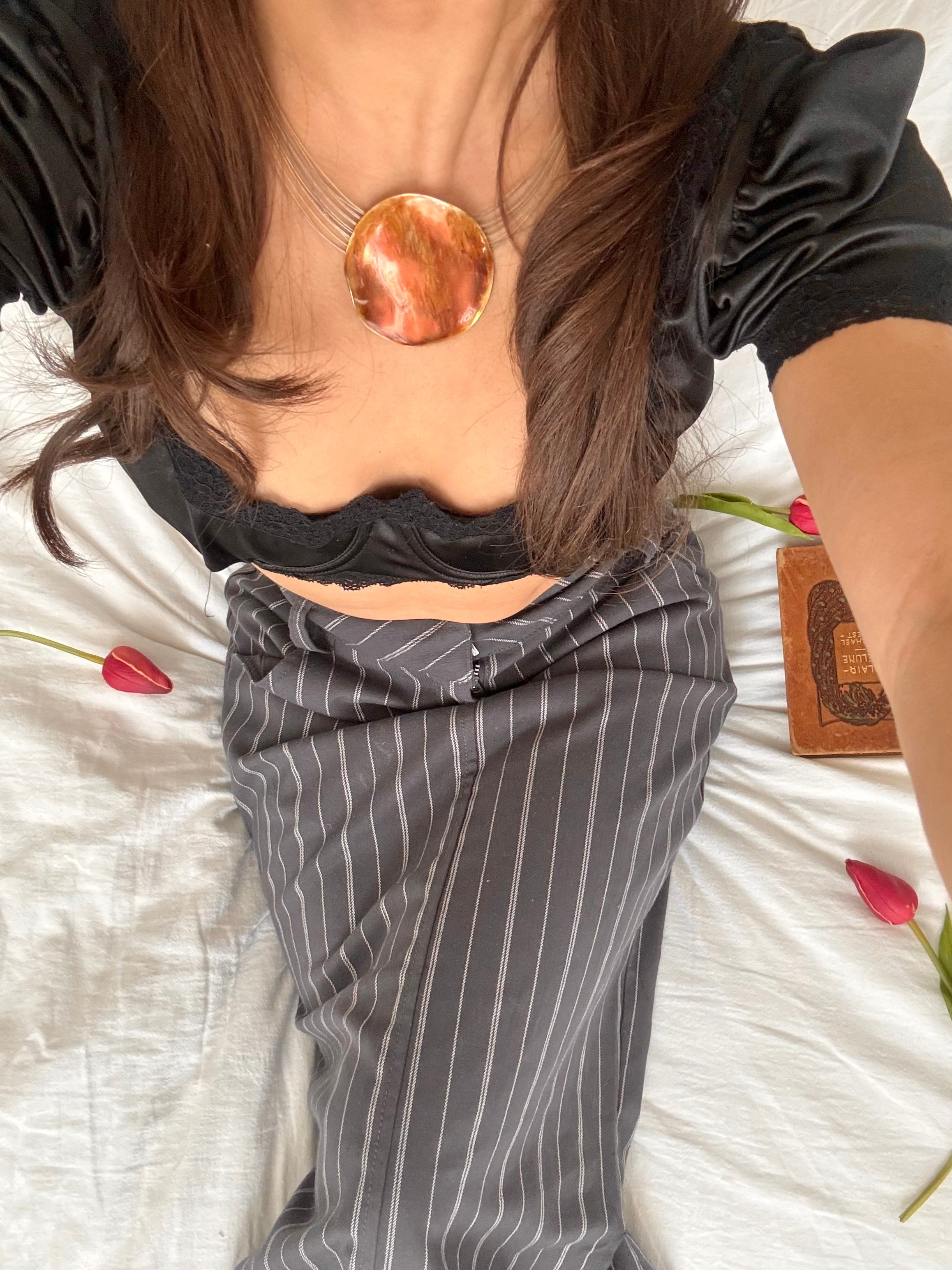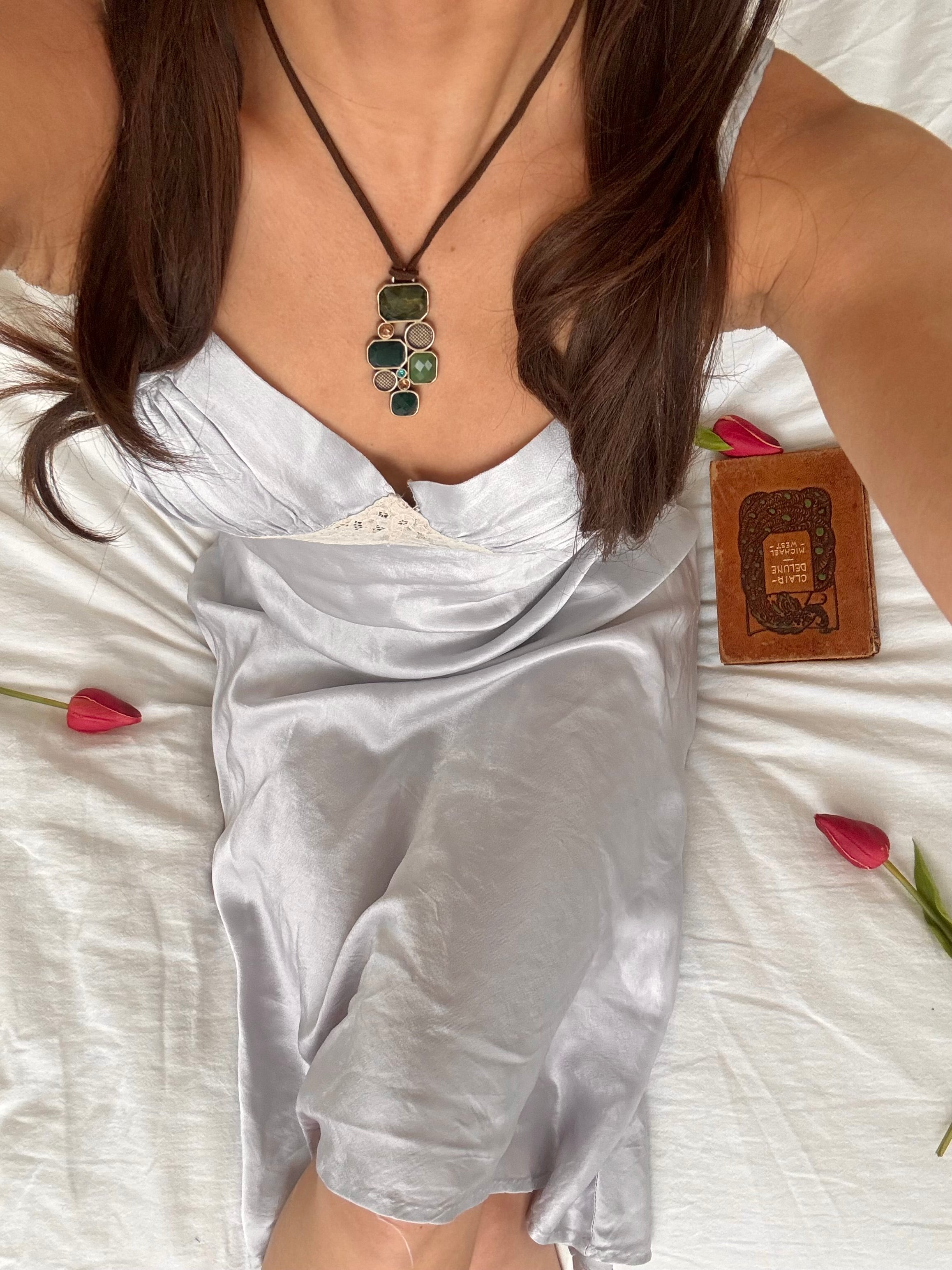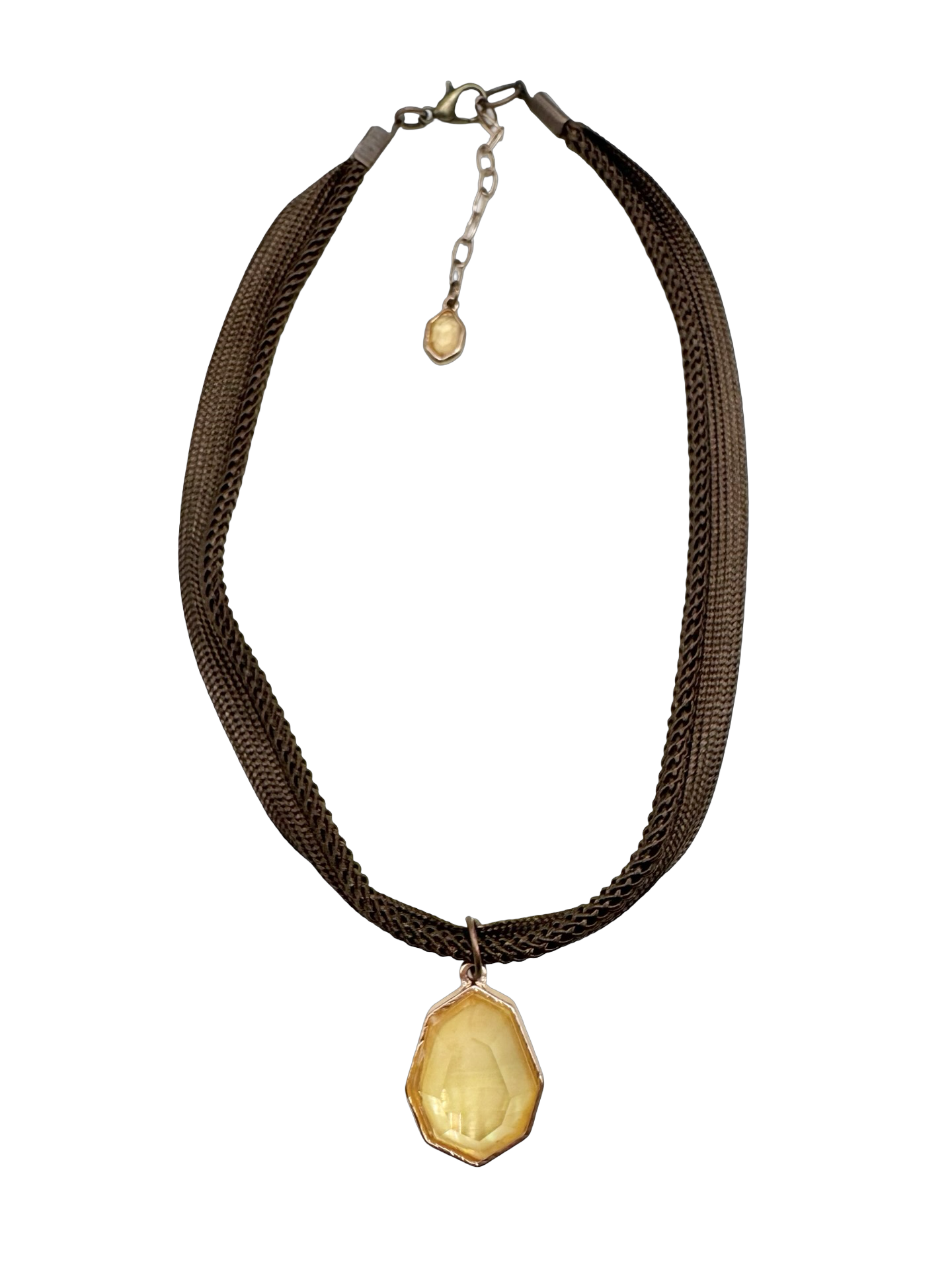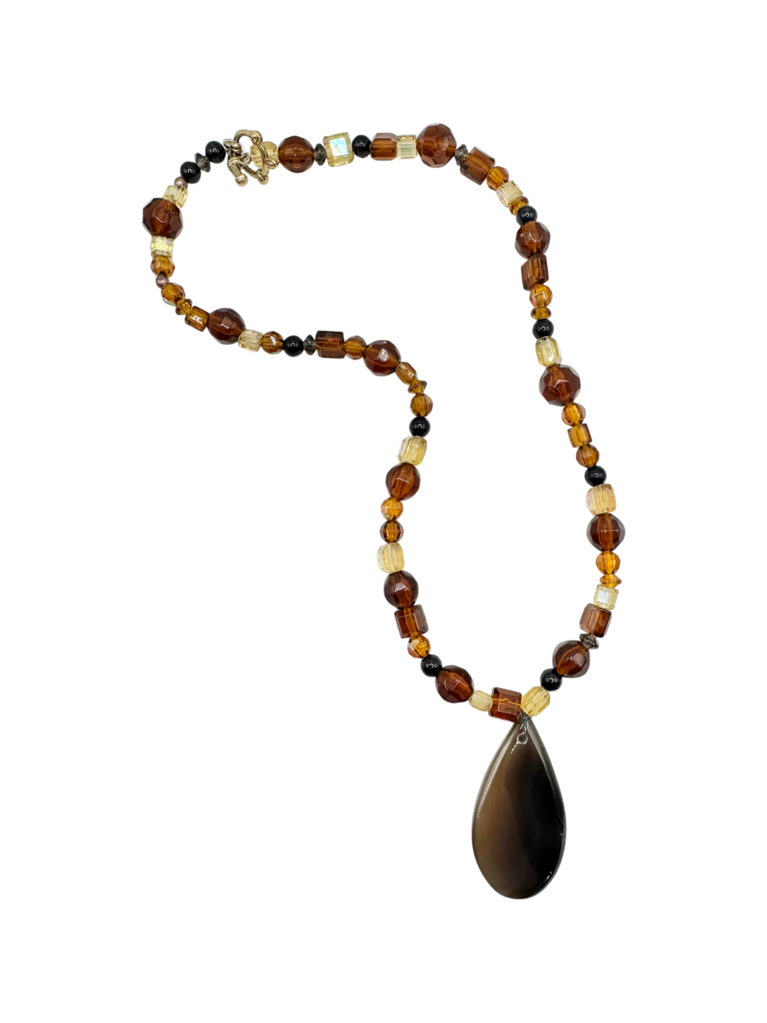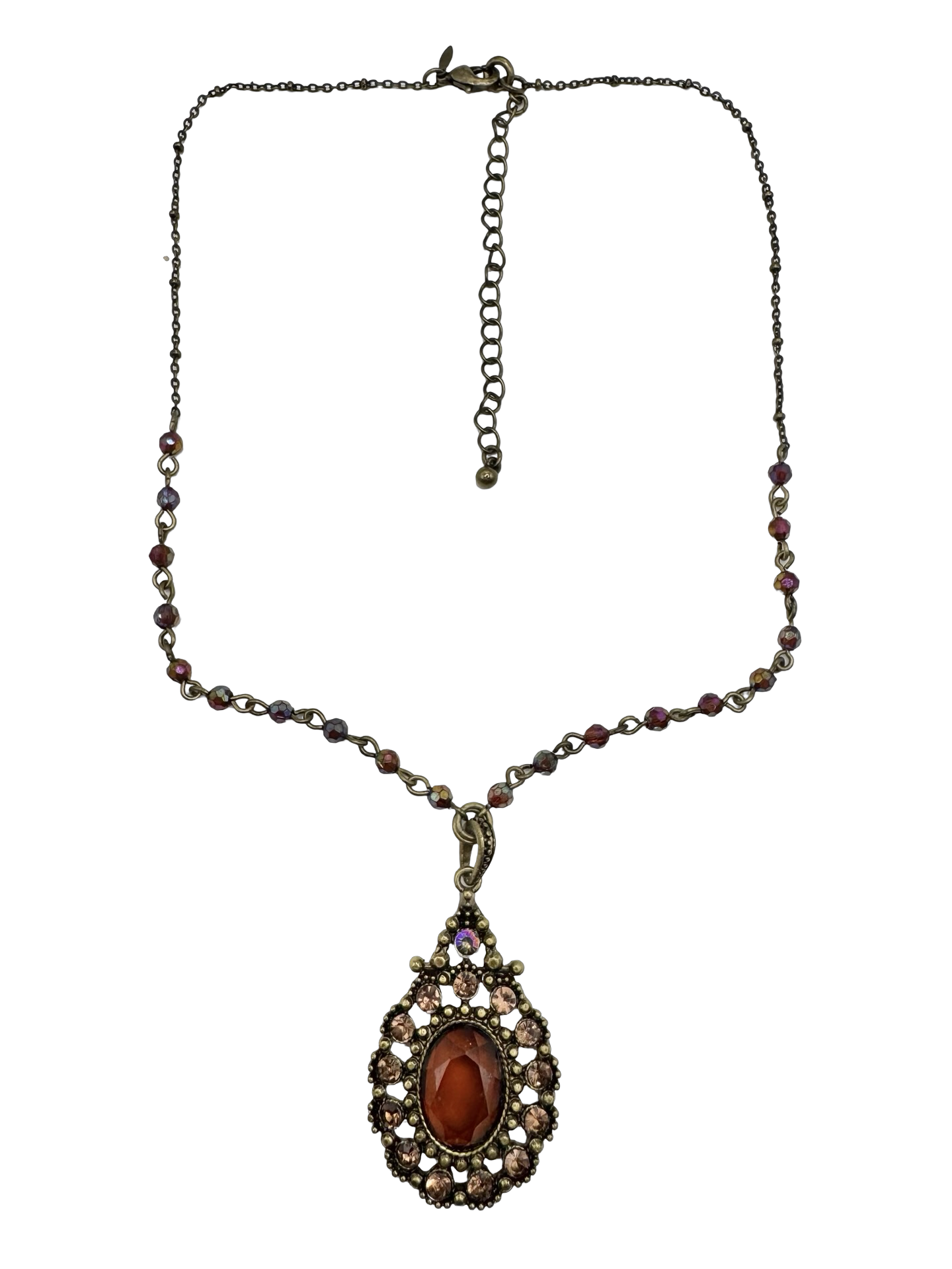 Vintage Amber Stone & Floral Art Nouveau Necklace